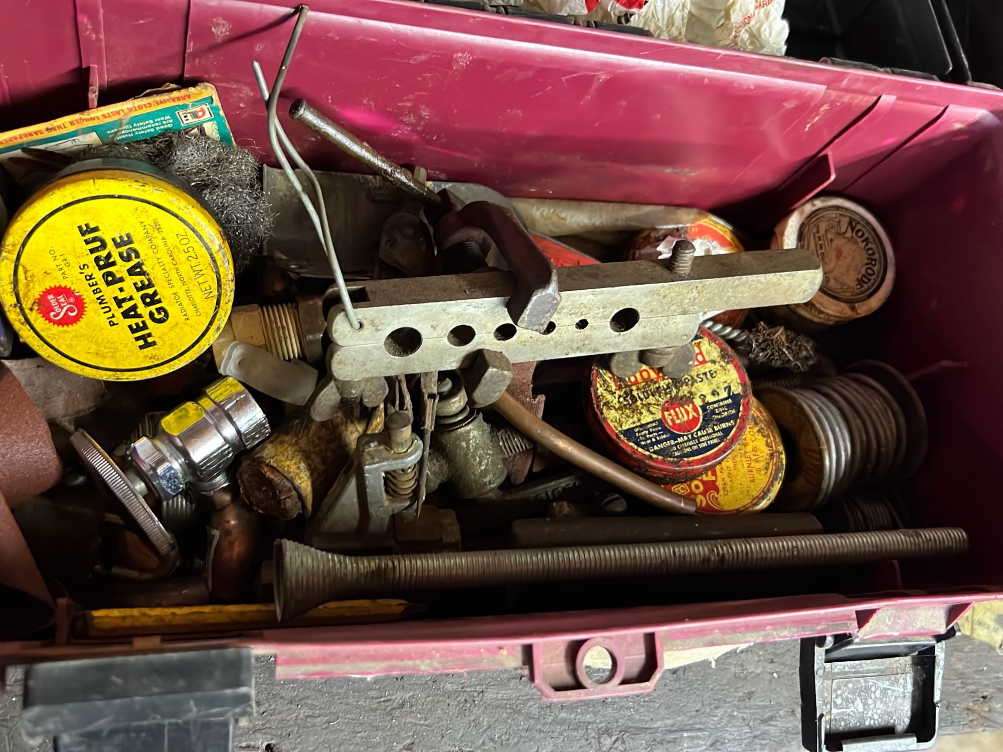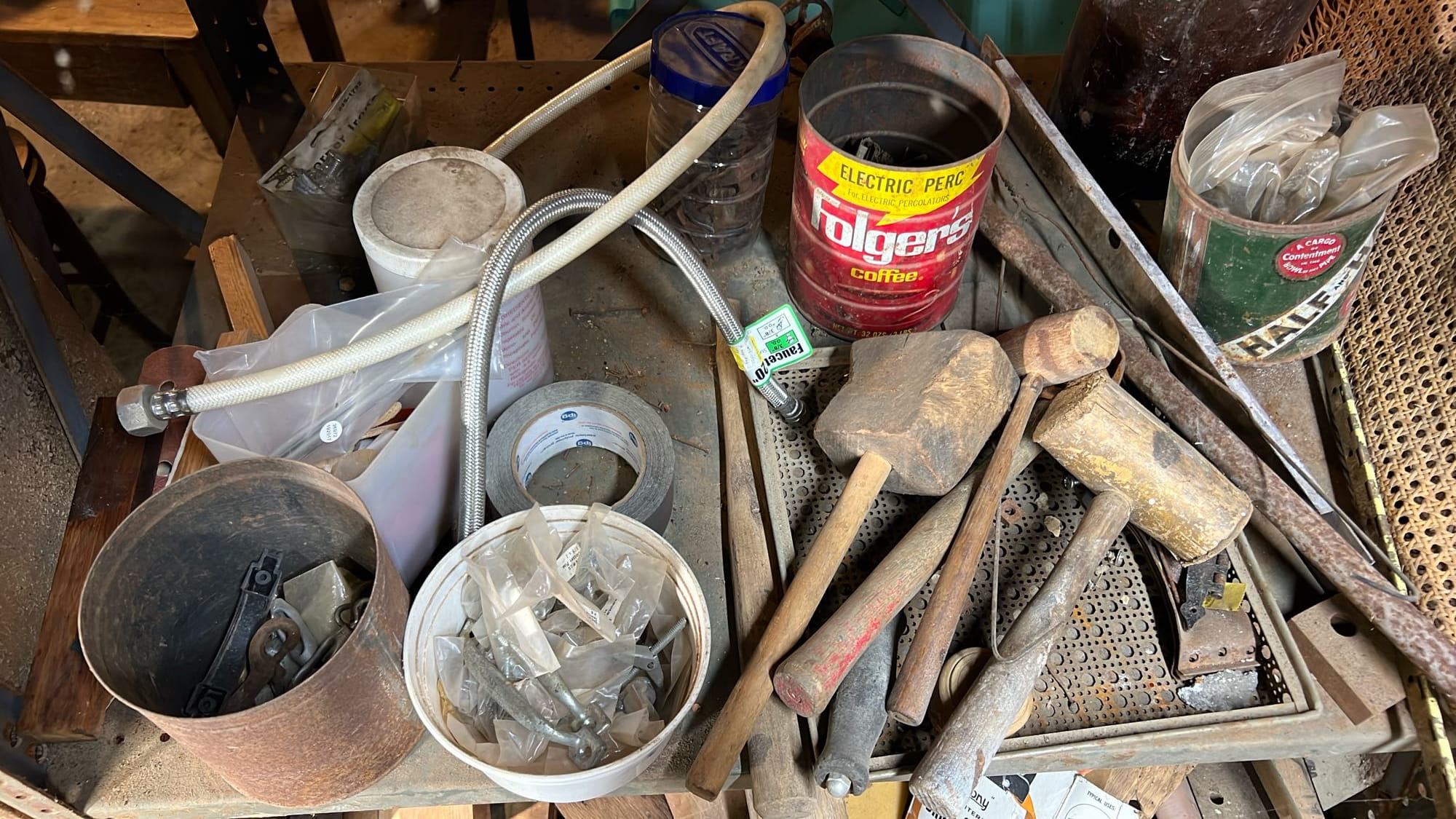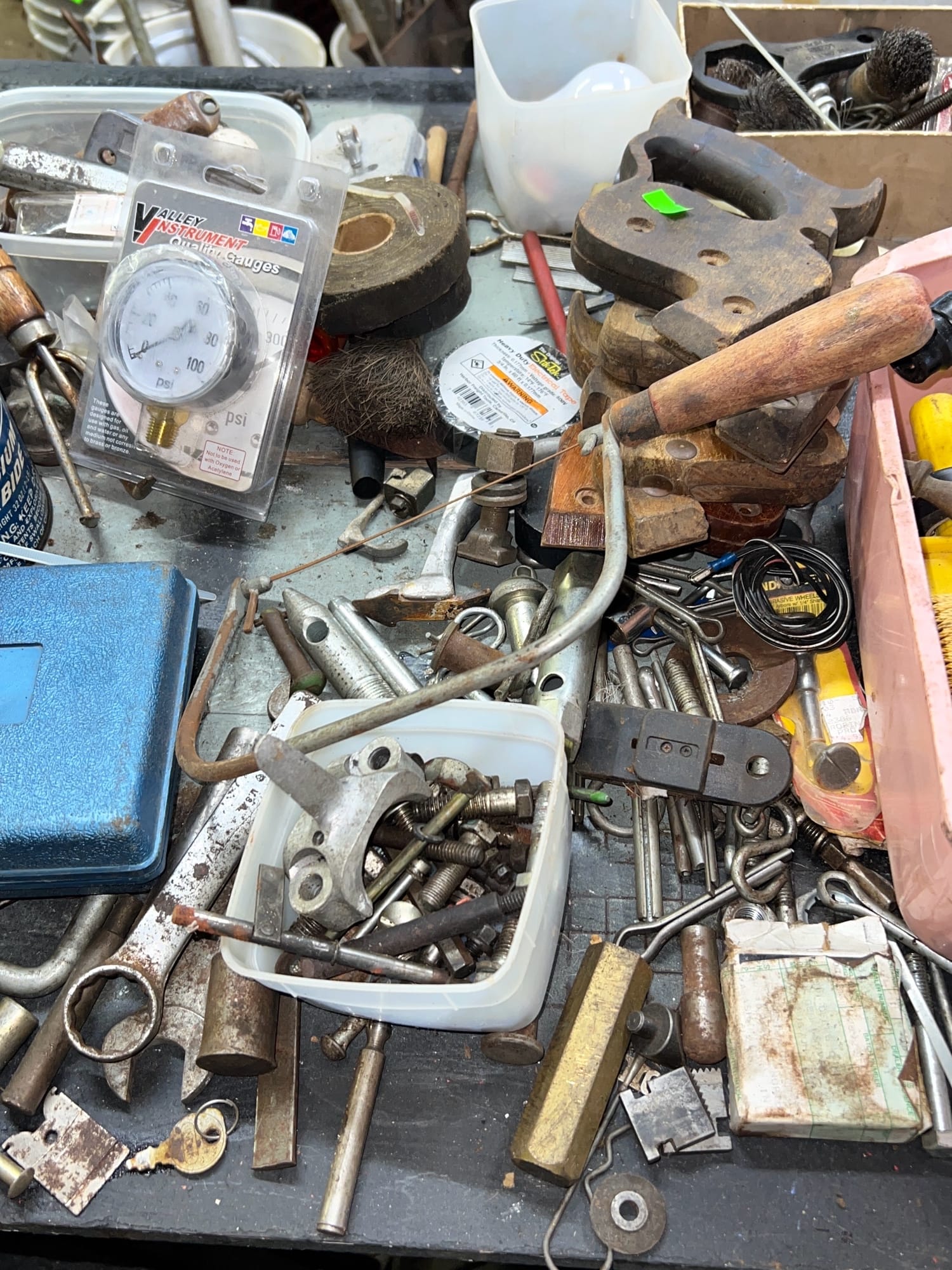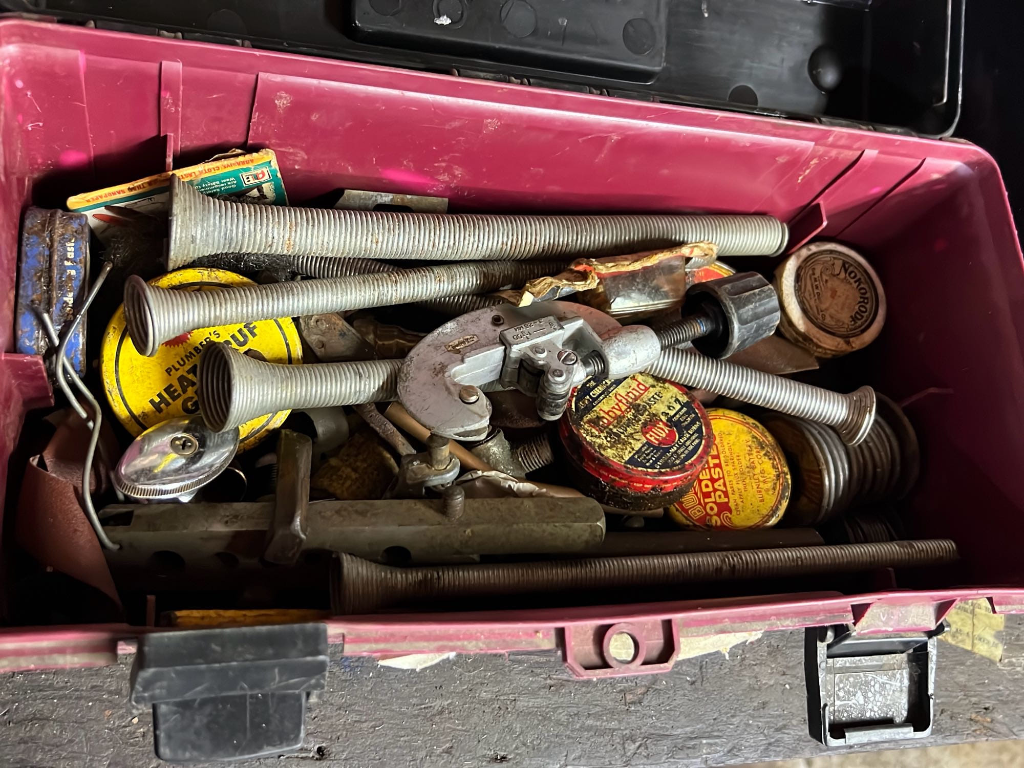 1114 Horseshoe Nail assortment • Chain • Files • Caulk Gun • Tote 17.5” • misc