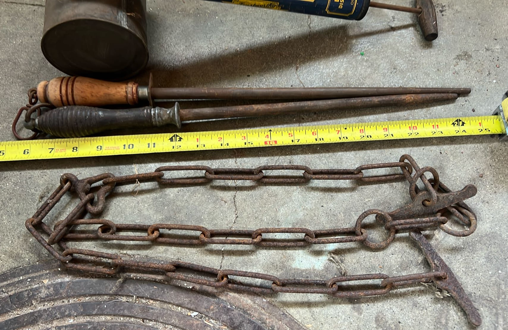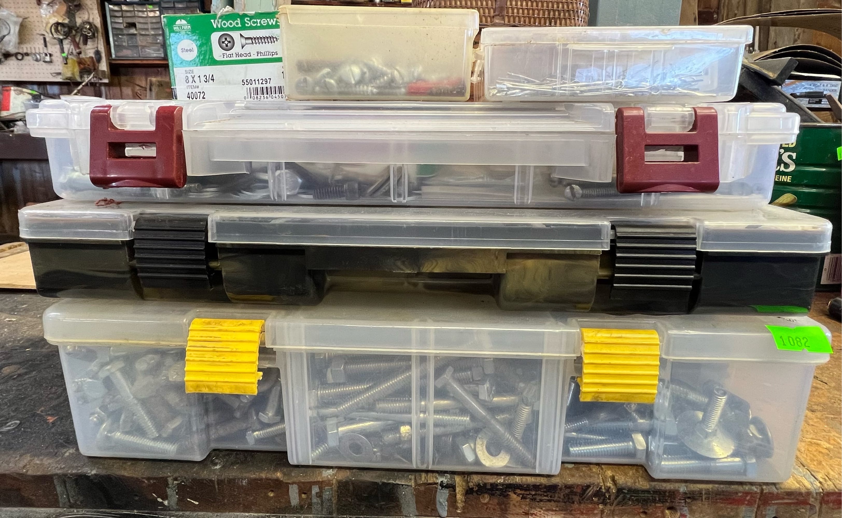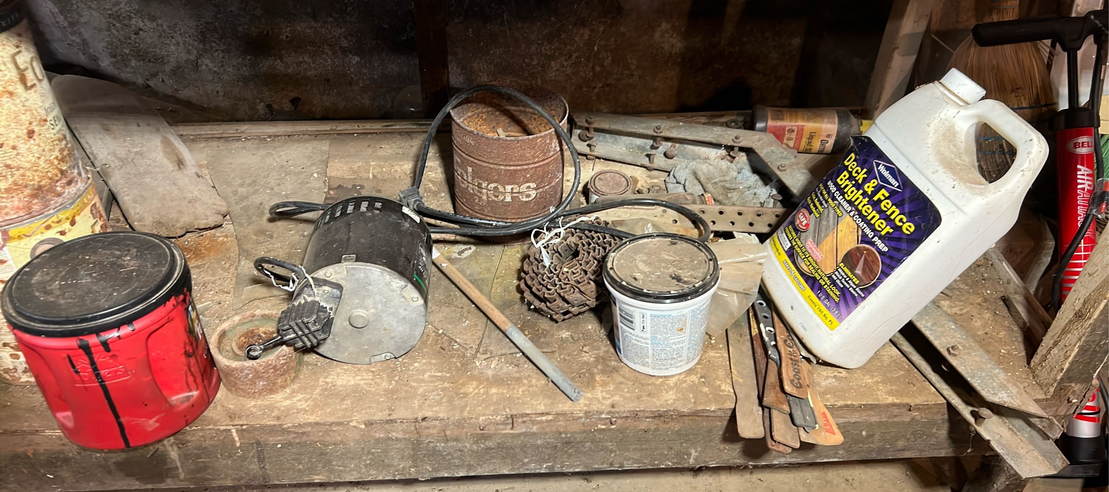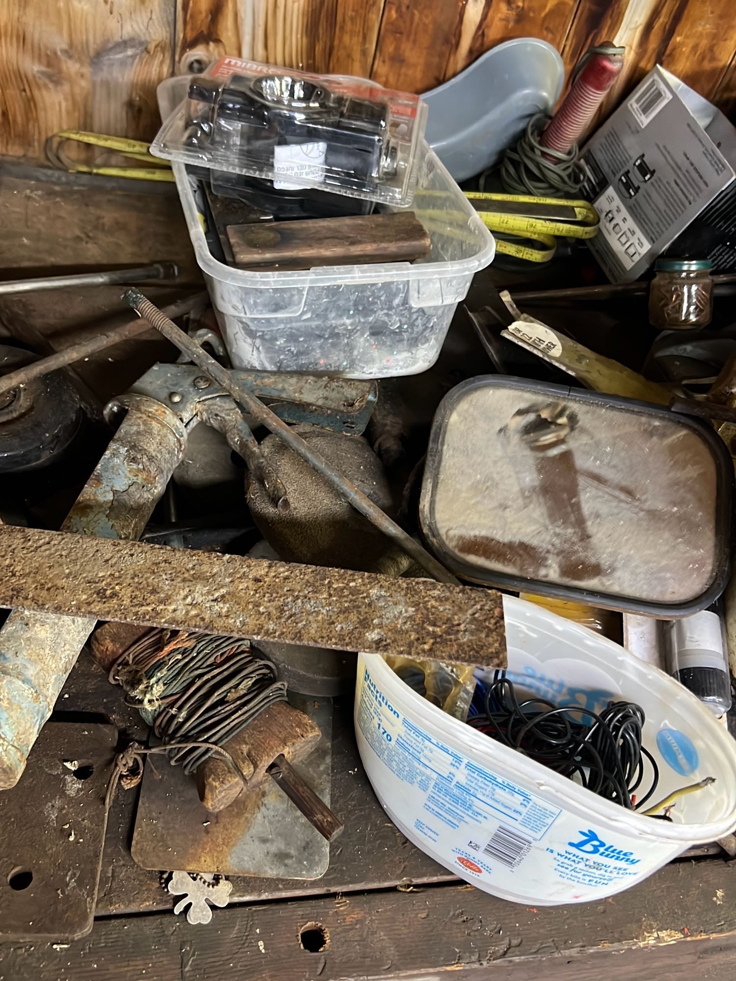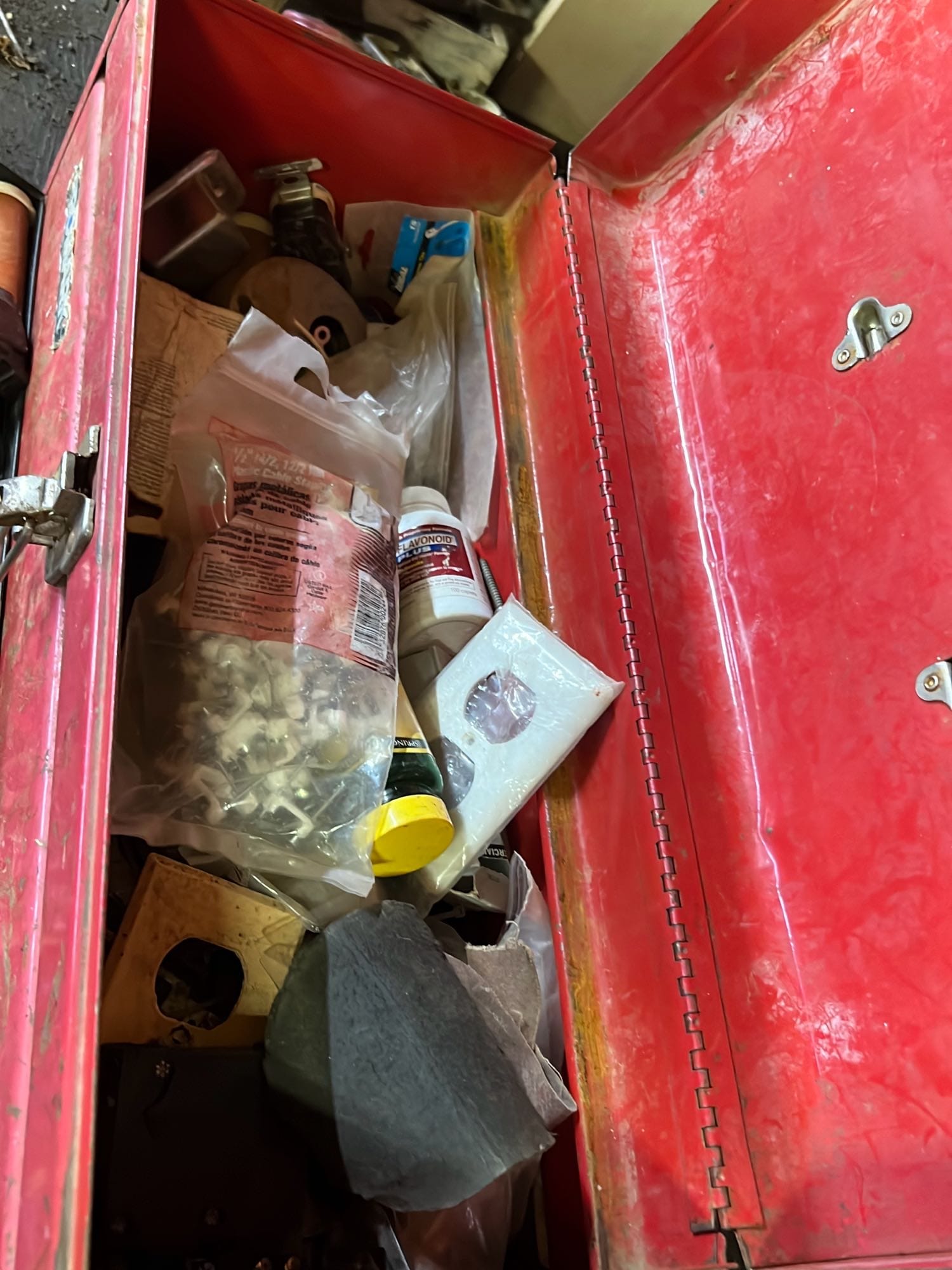 1114 Horseshoe Nail assortment • Chain • Files • Caulk Gun • Tote 17.5” • misc