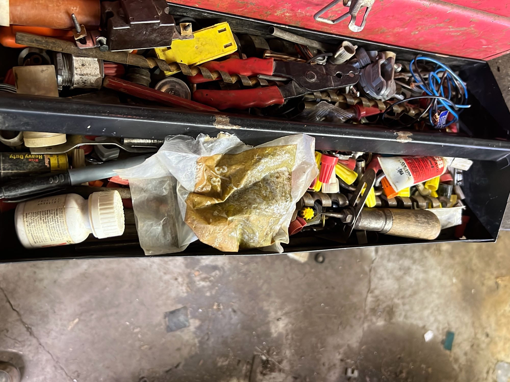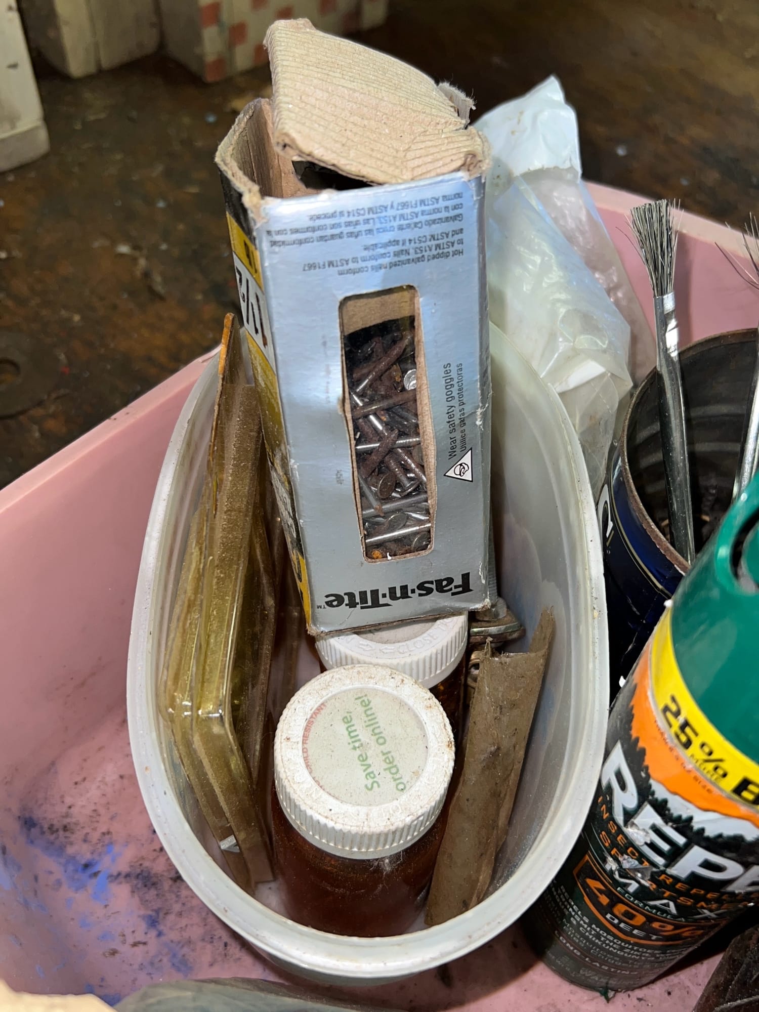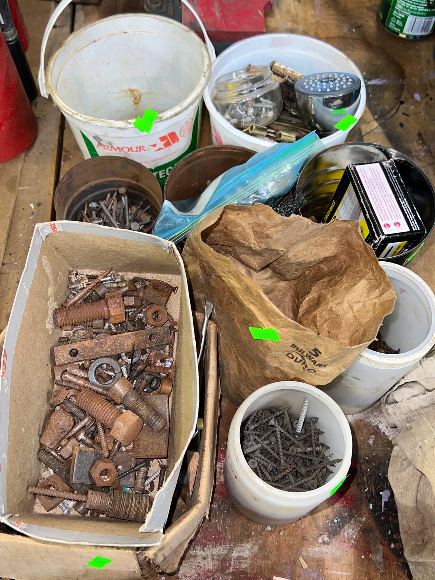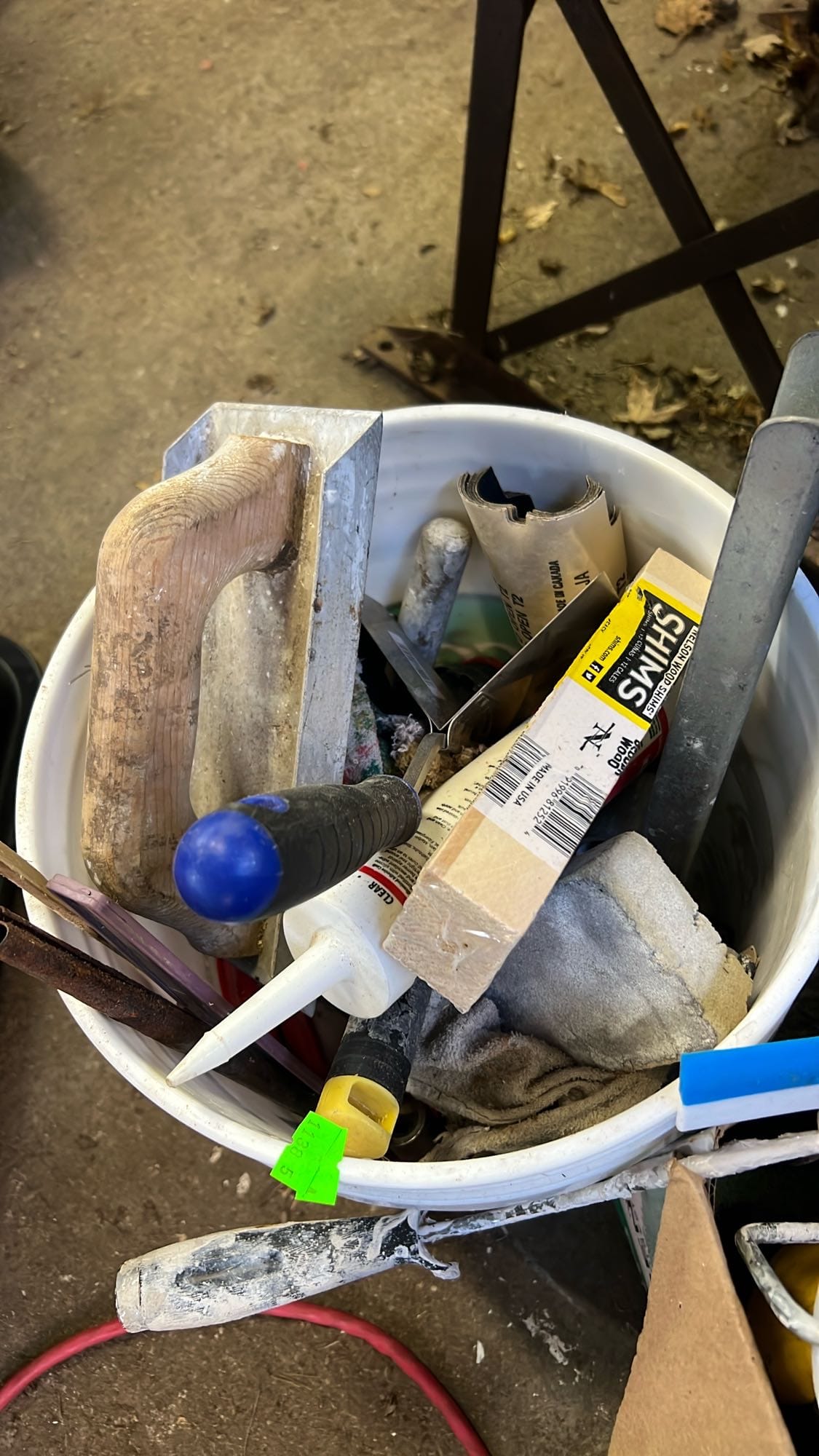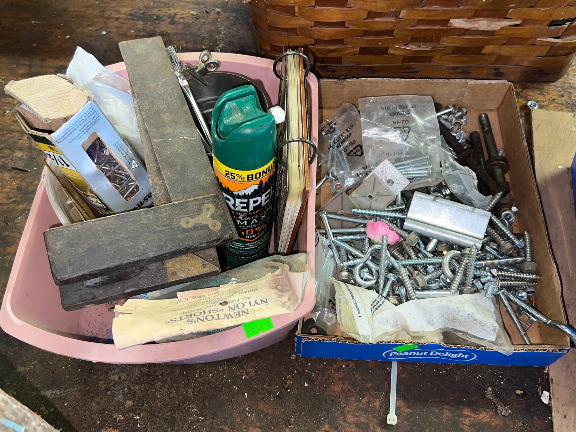 1114 Horseshoe Nail assortment • Chain • Files • Caulk Gun • Tote 17.5” • misc
