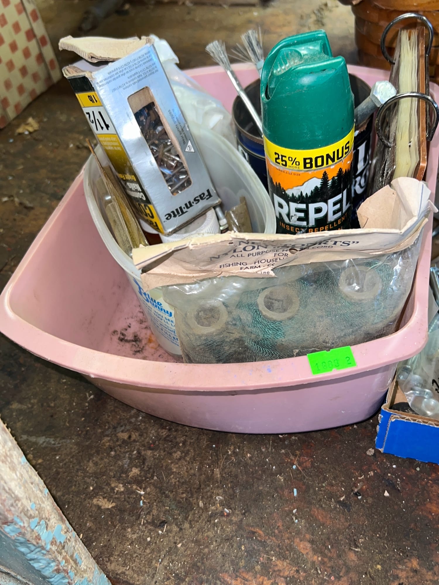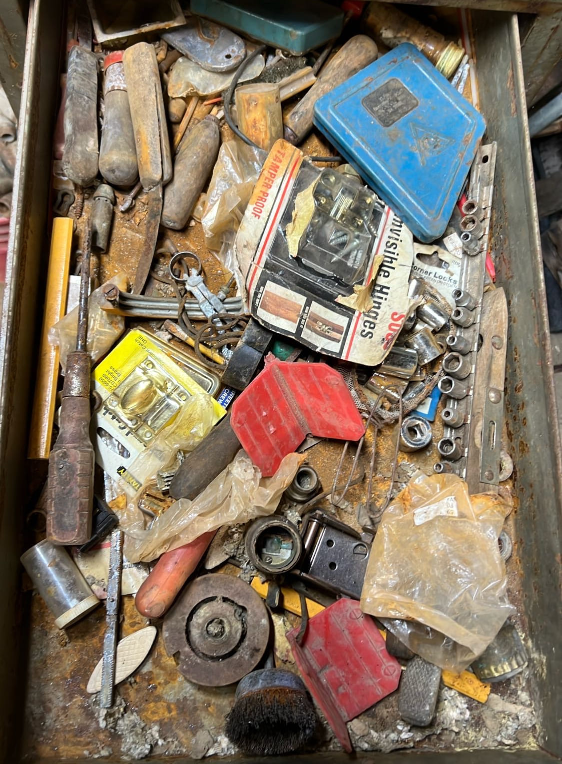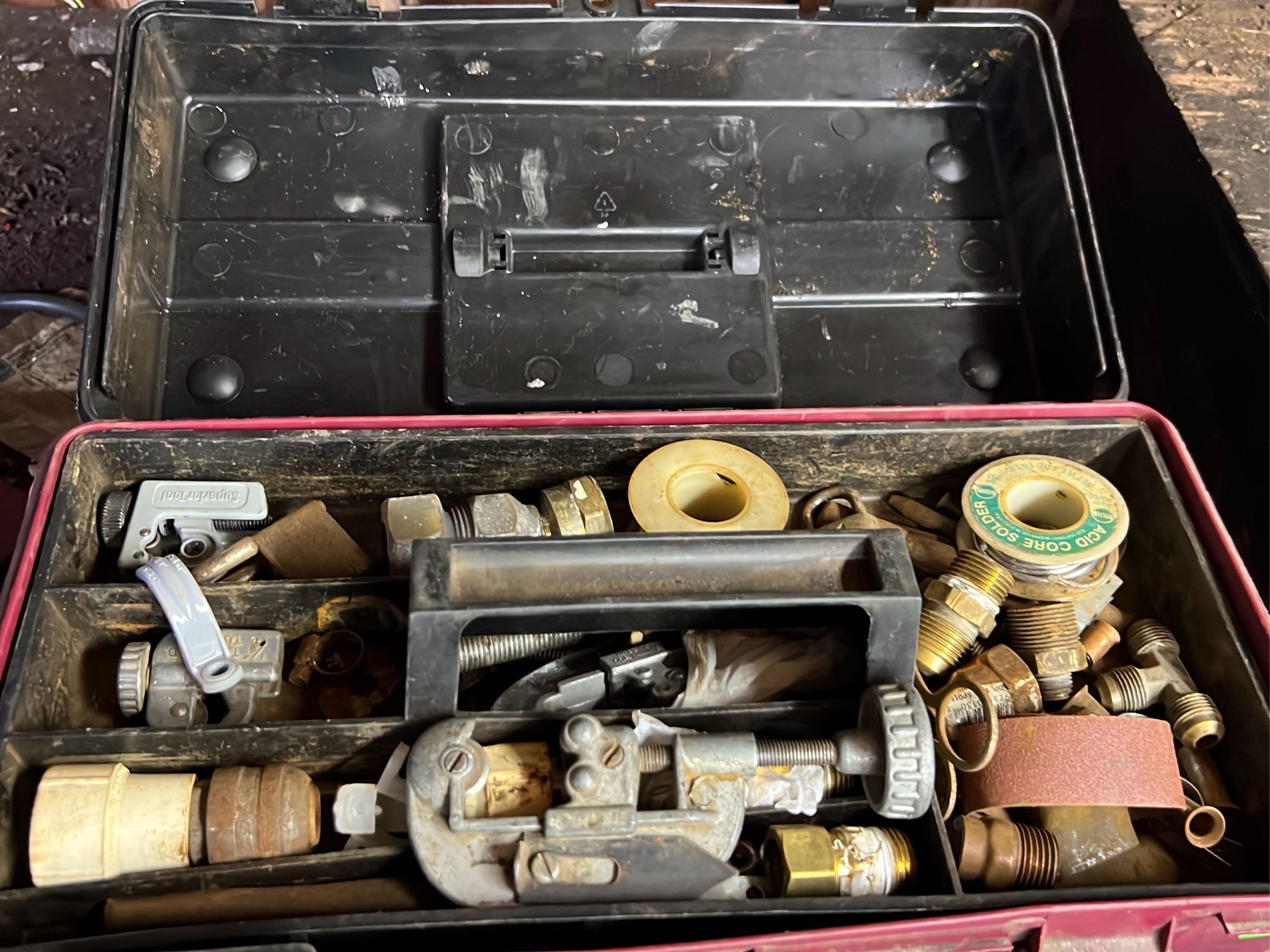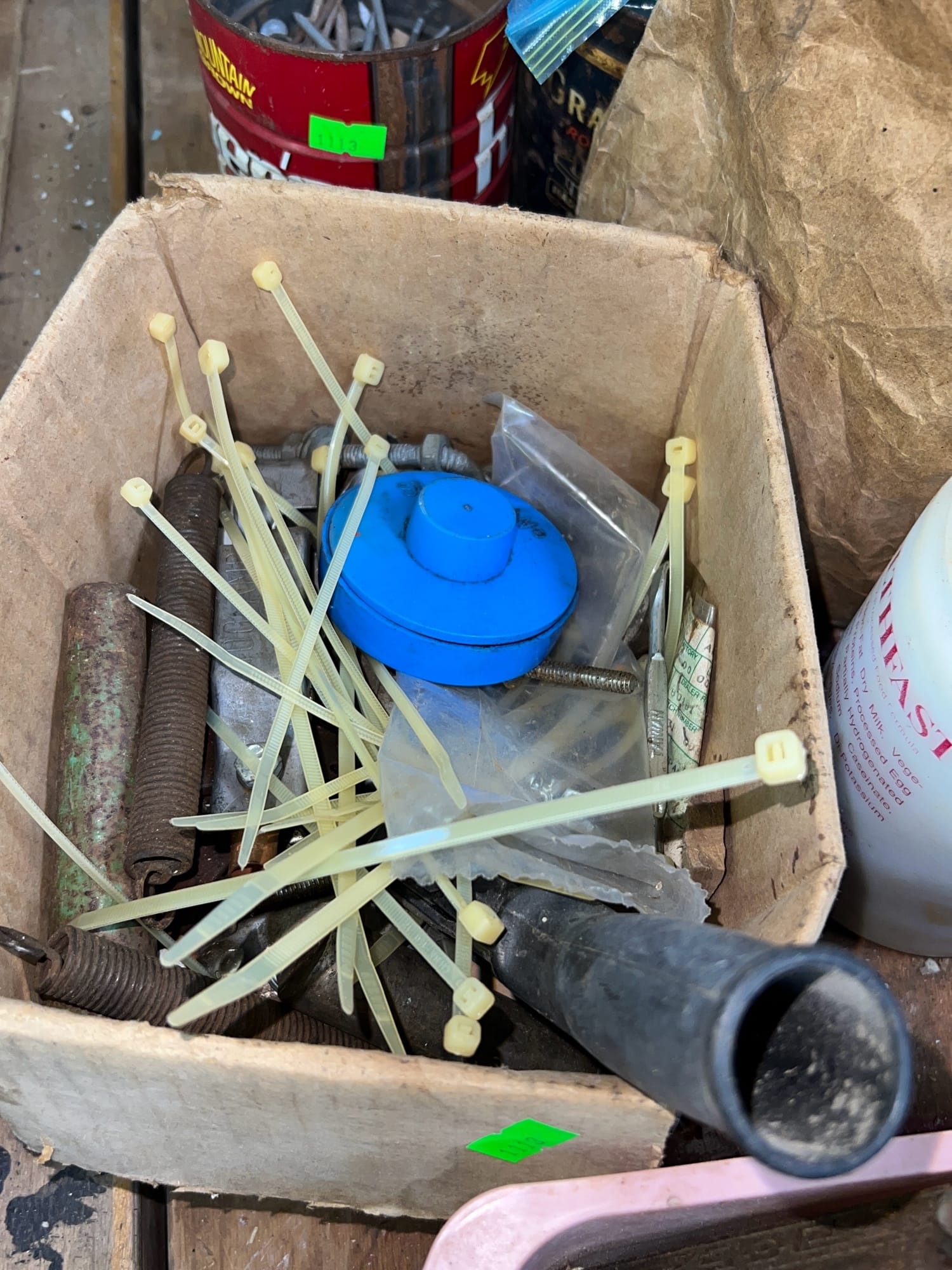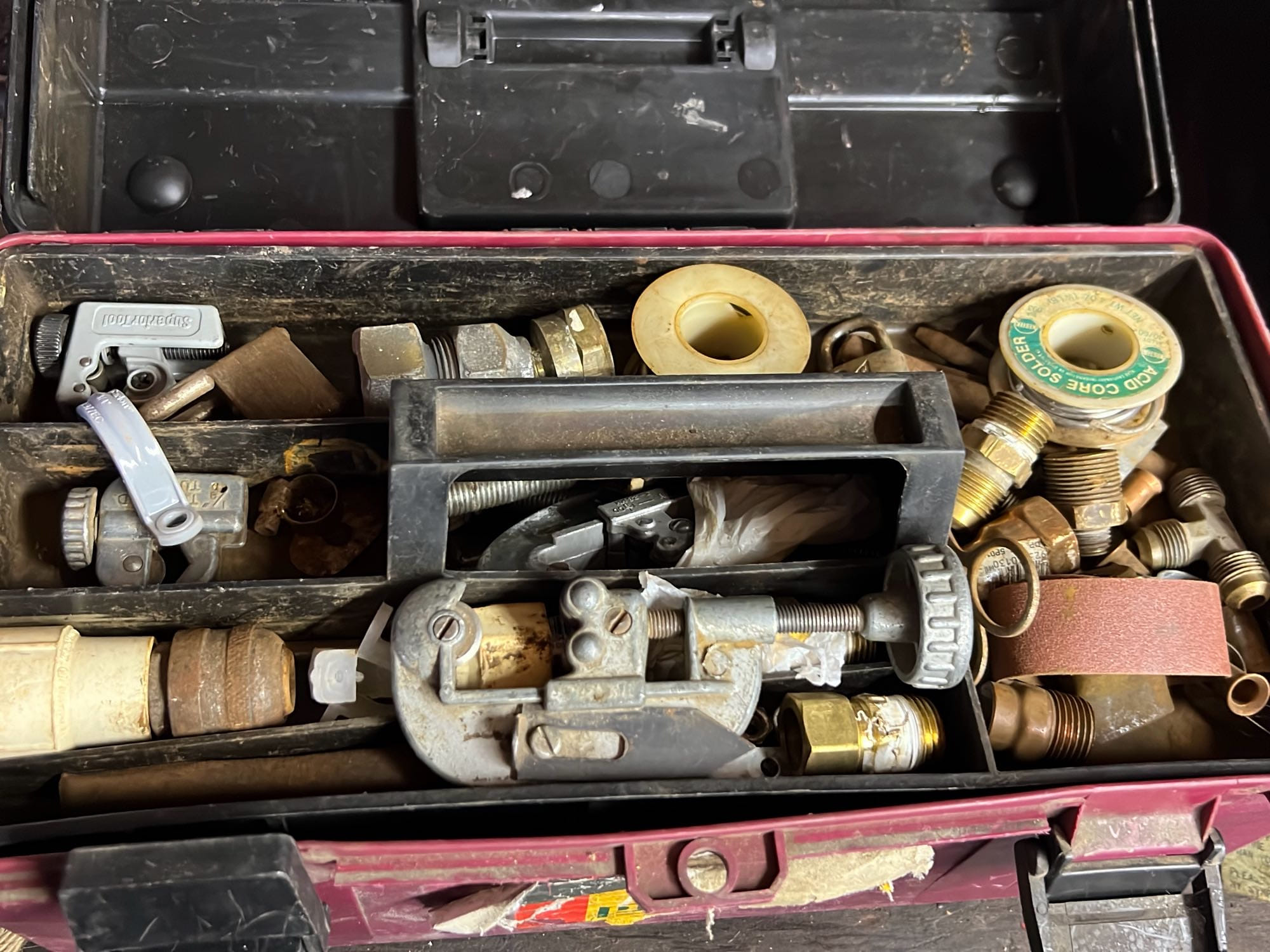 1114 Horseshoe Nail assortment • Chain • Files • Caulk Gun • Tote 17.5” • misc
