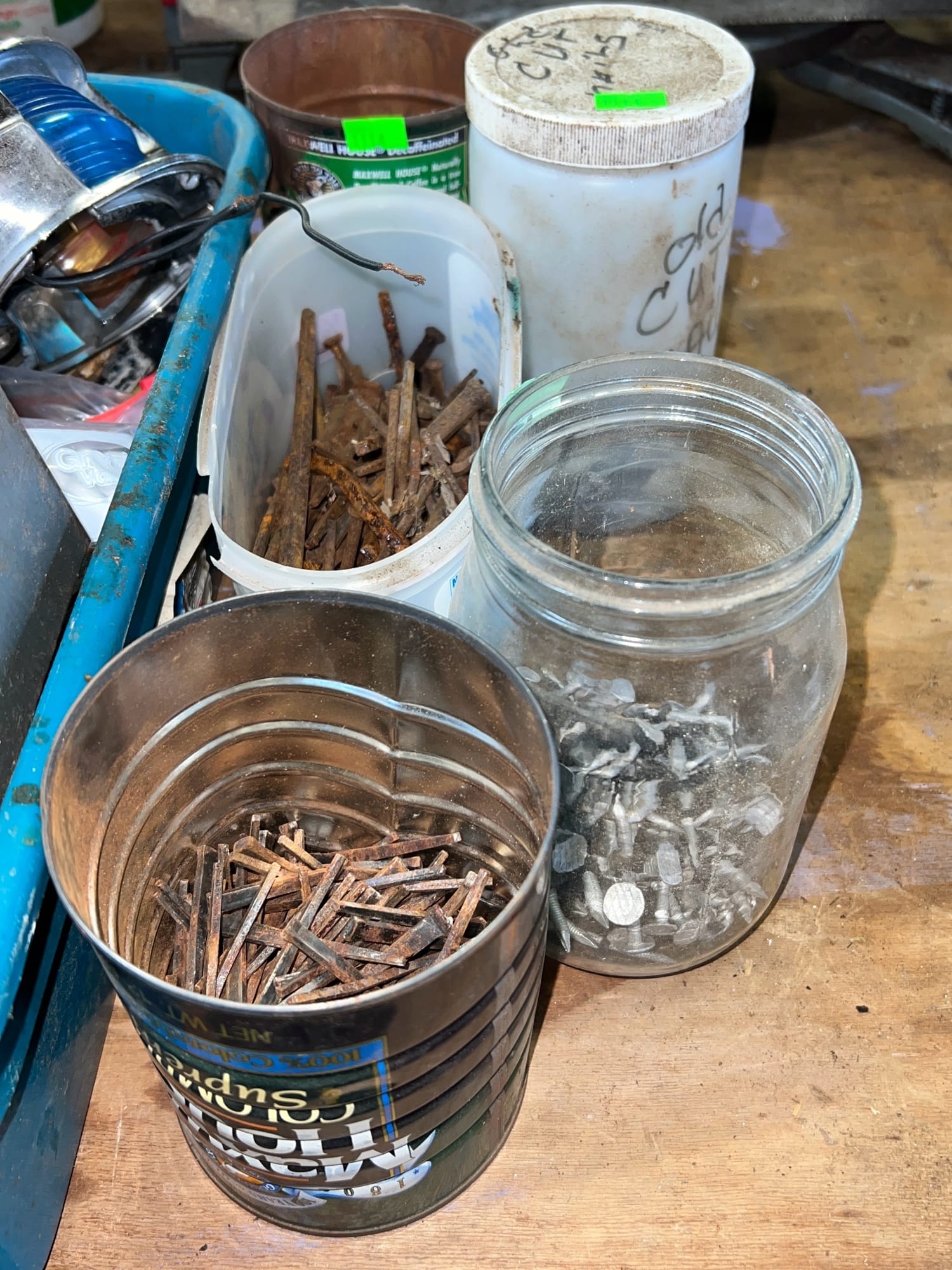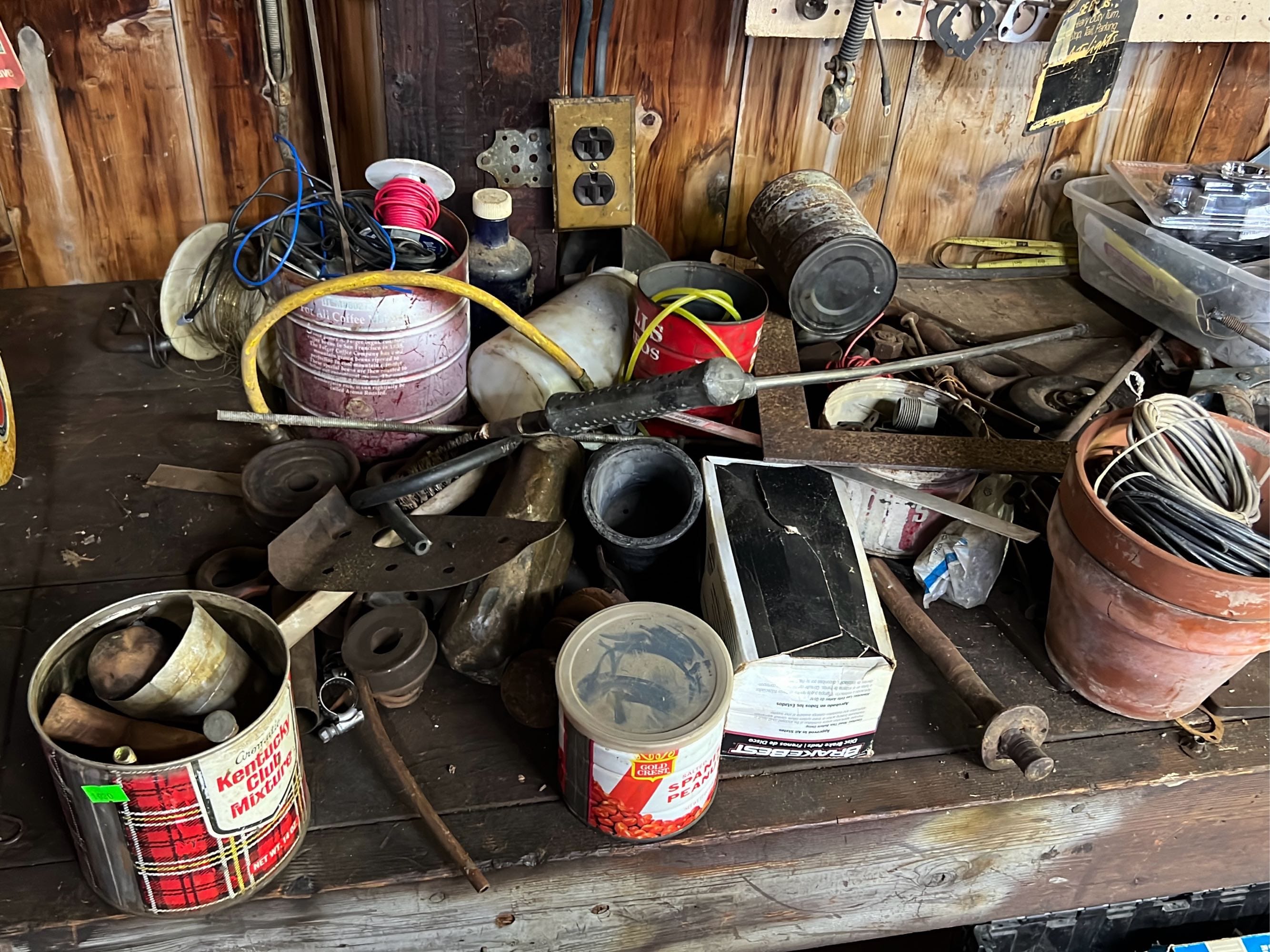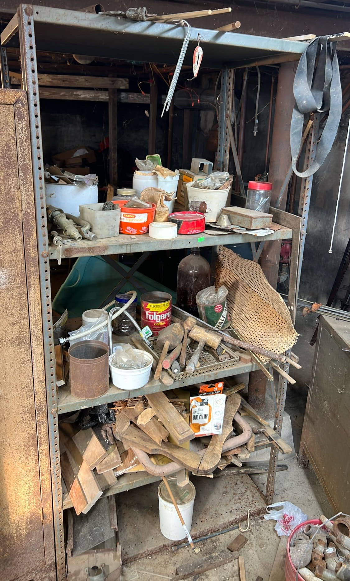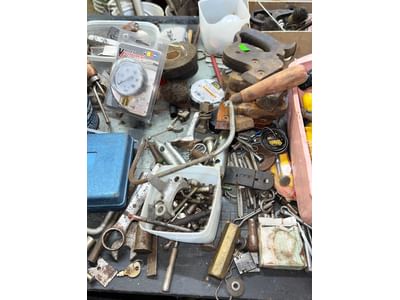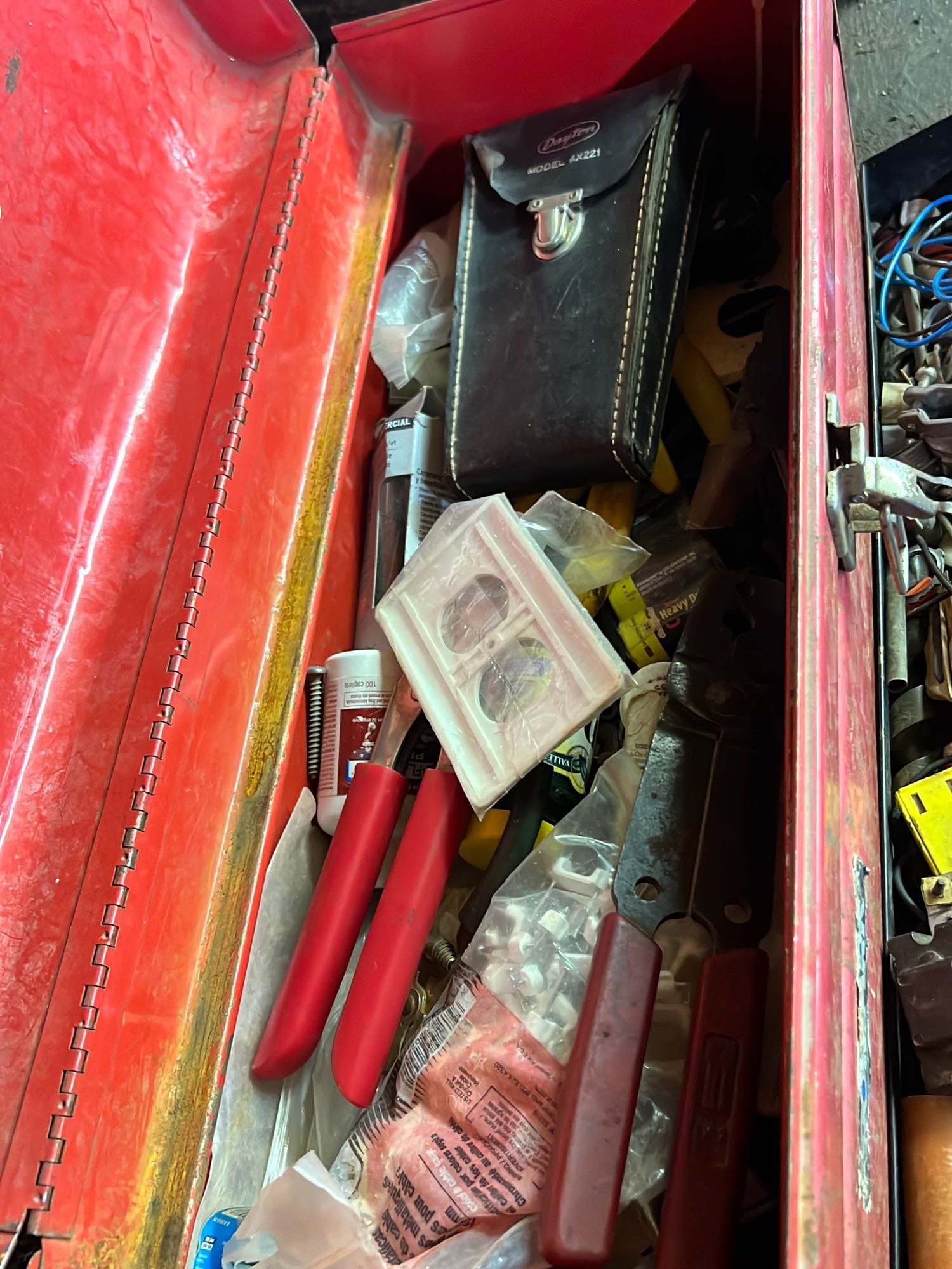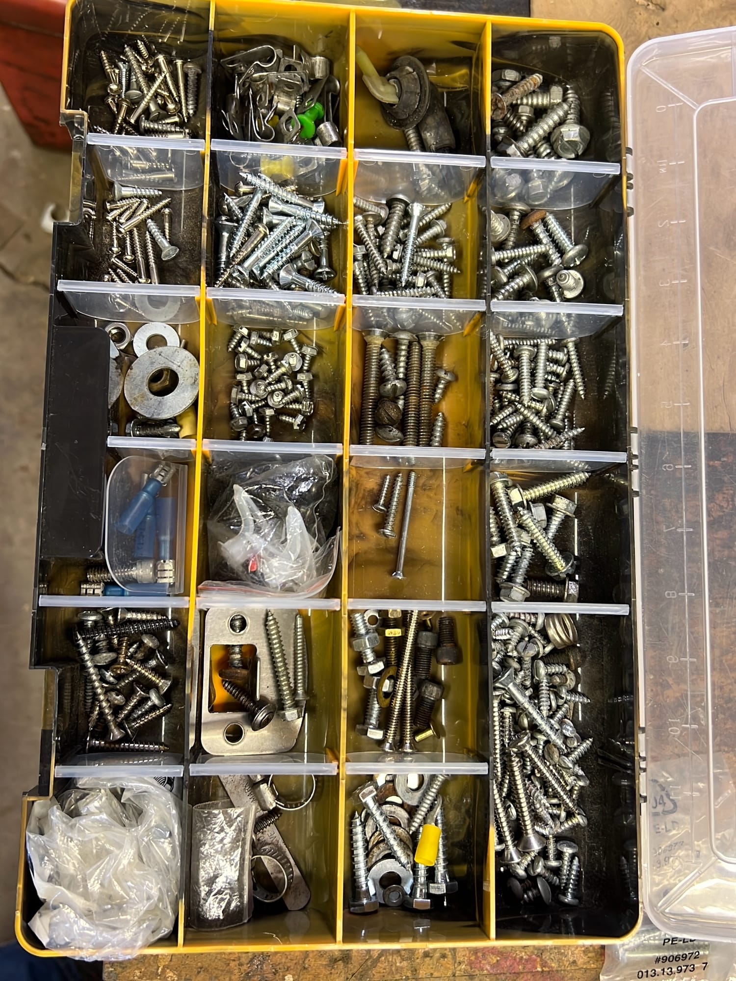 1114 Horseshoe Nail assortment • Chain • Files • Caulk Gun • Tote 17.5” • misc