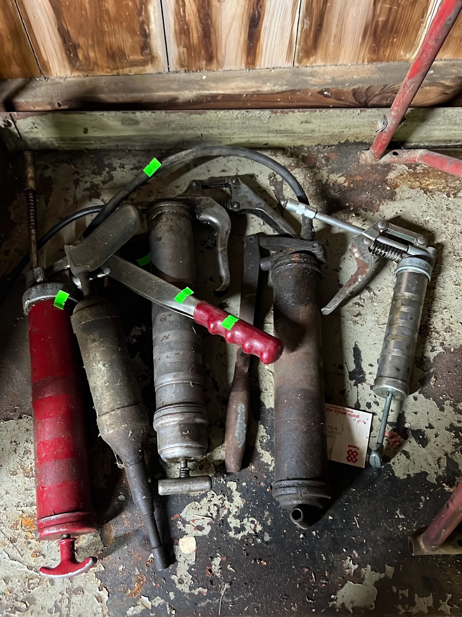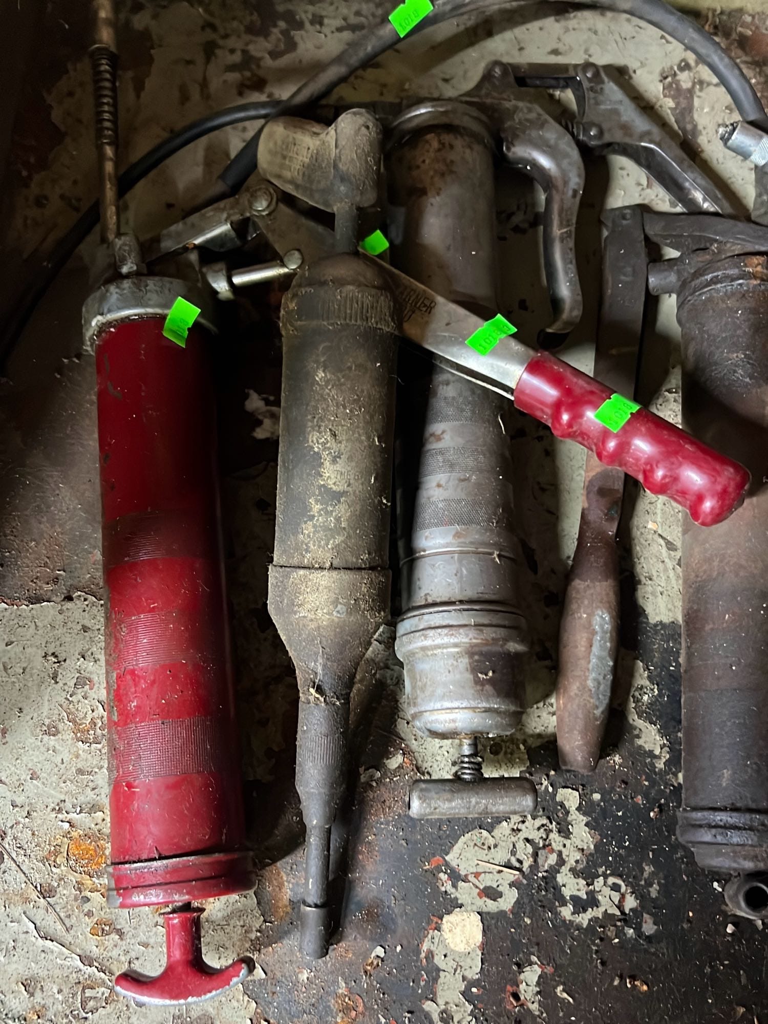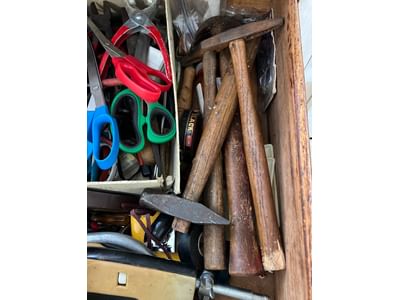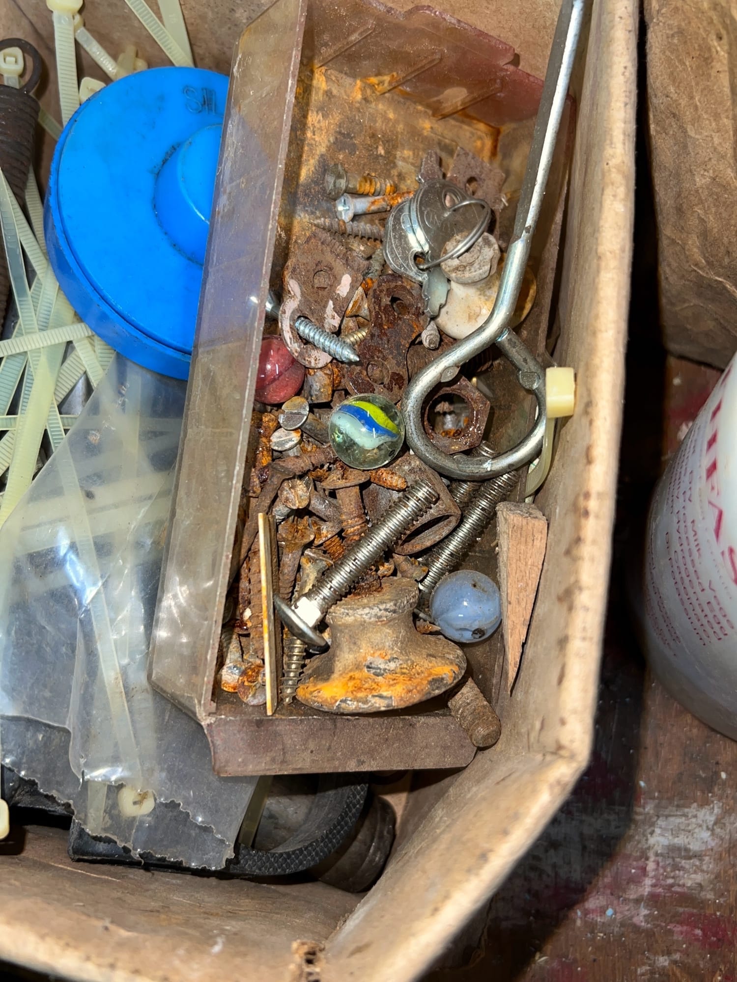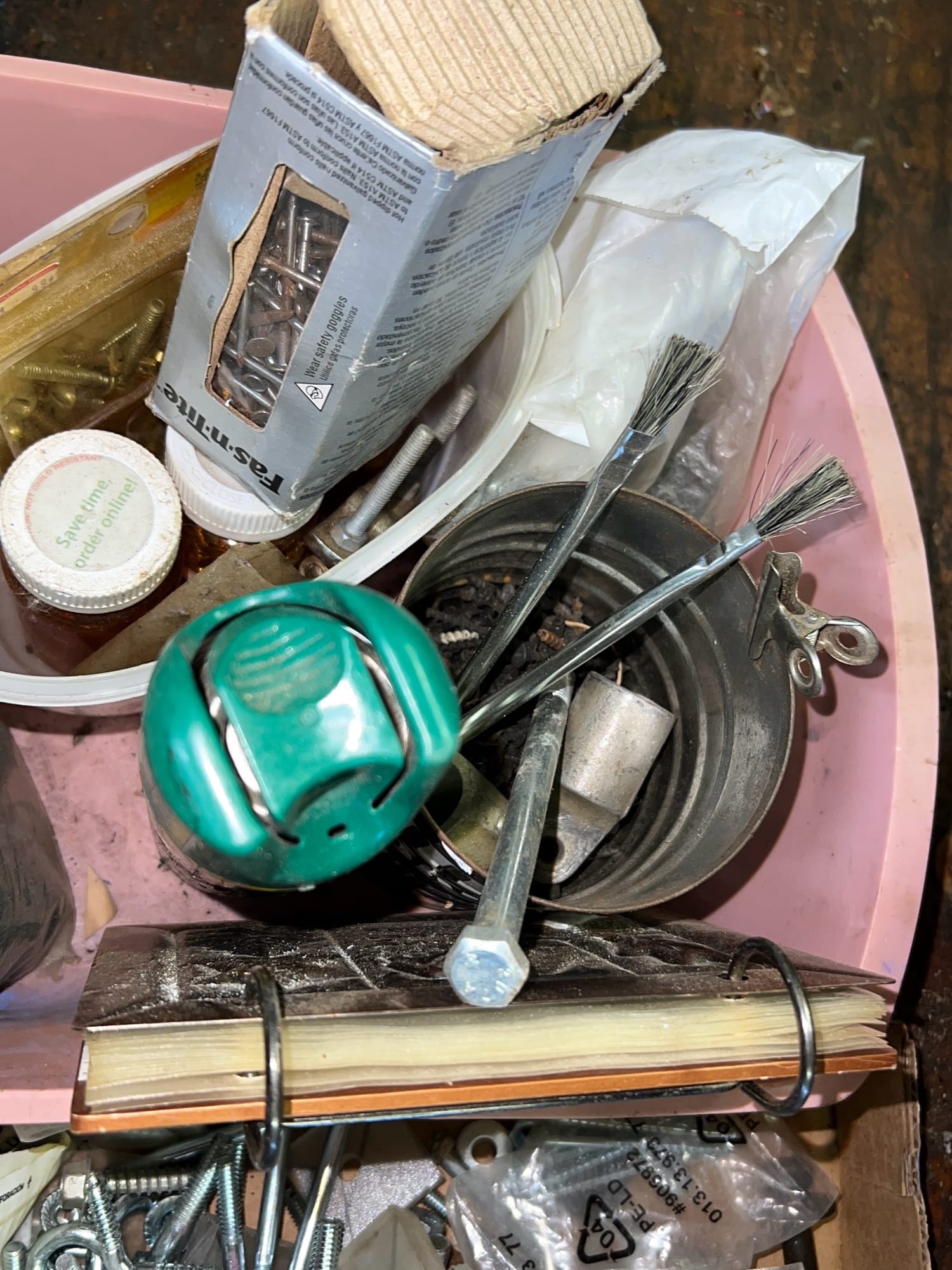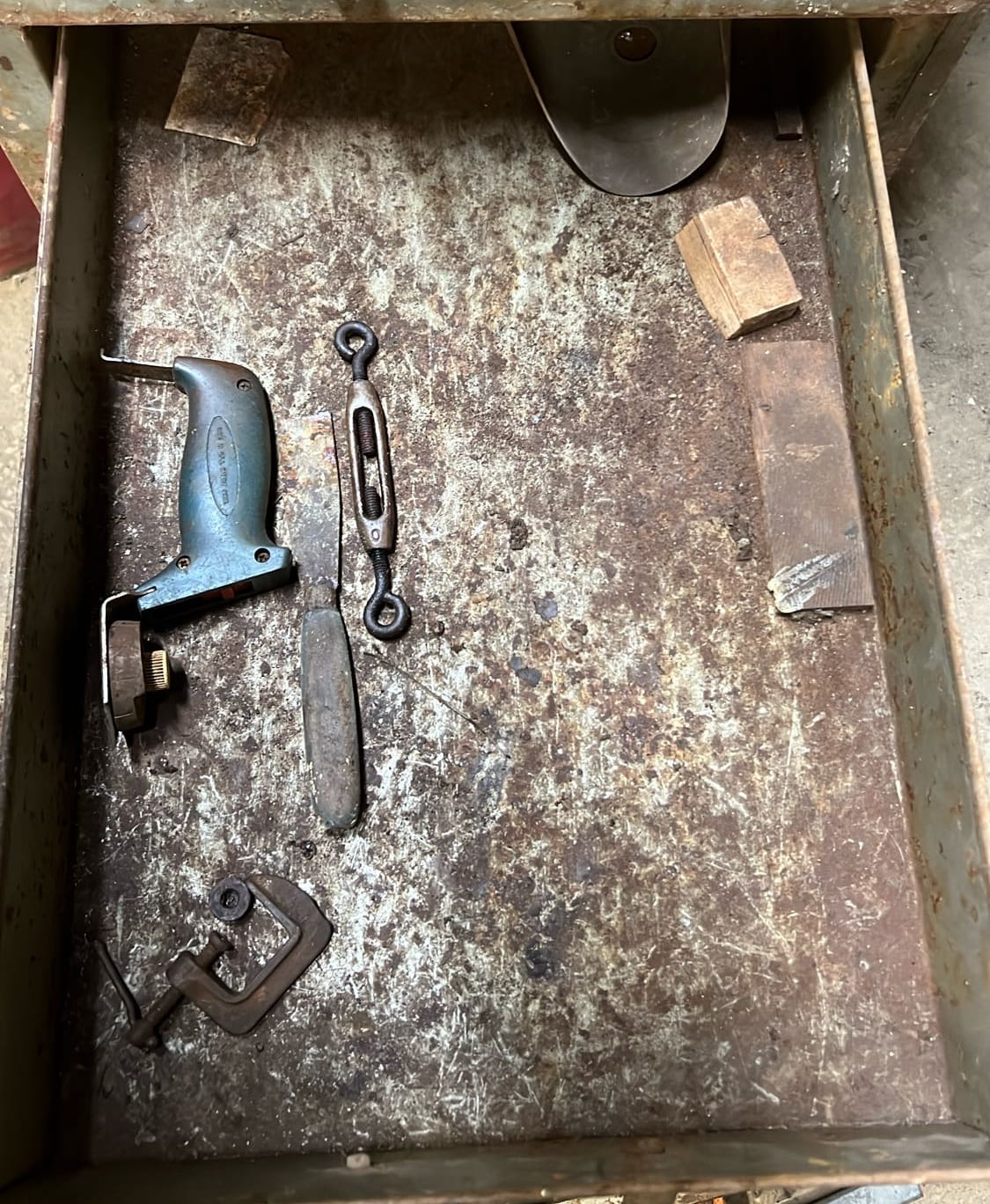1114 Horseshoe Nail assortment • Chain • Files • Caulk Gun • Tote 17.5” • misc