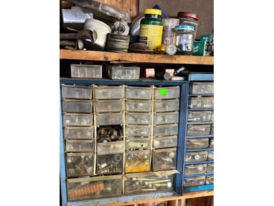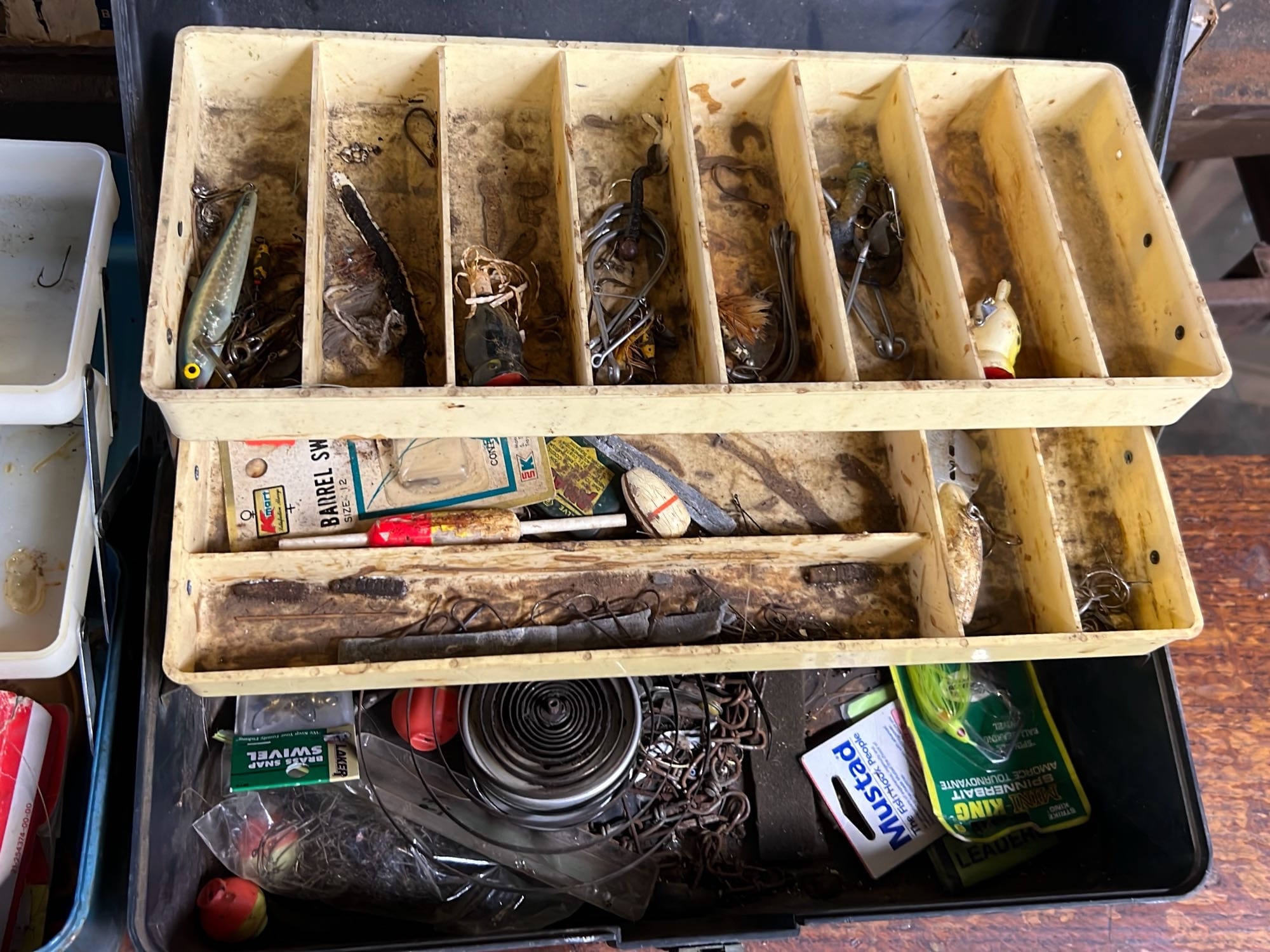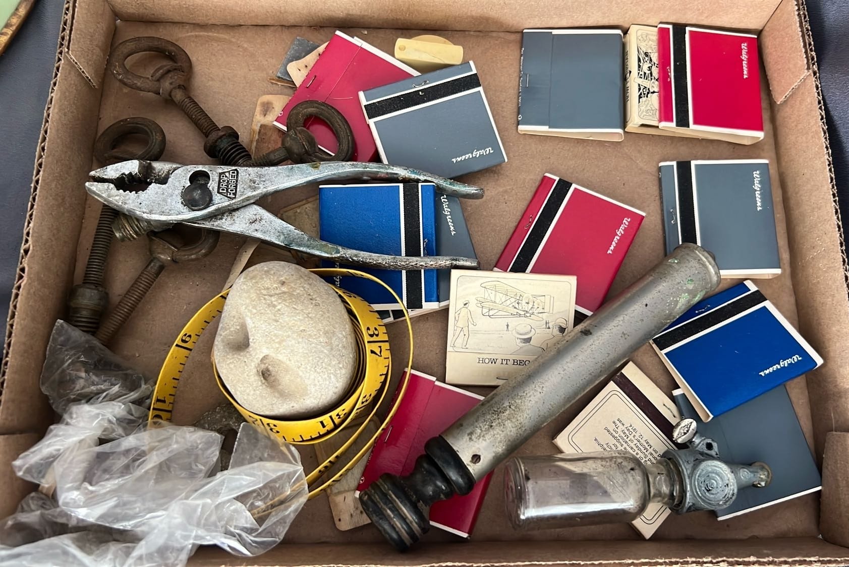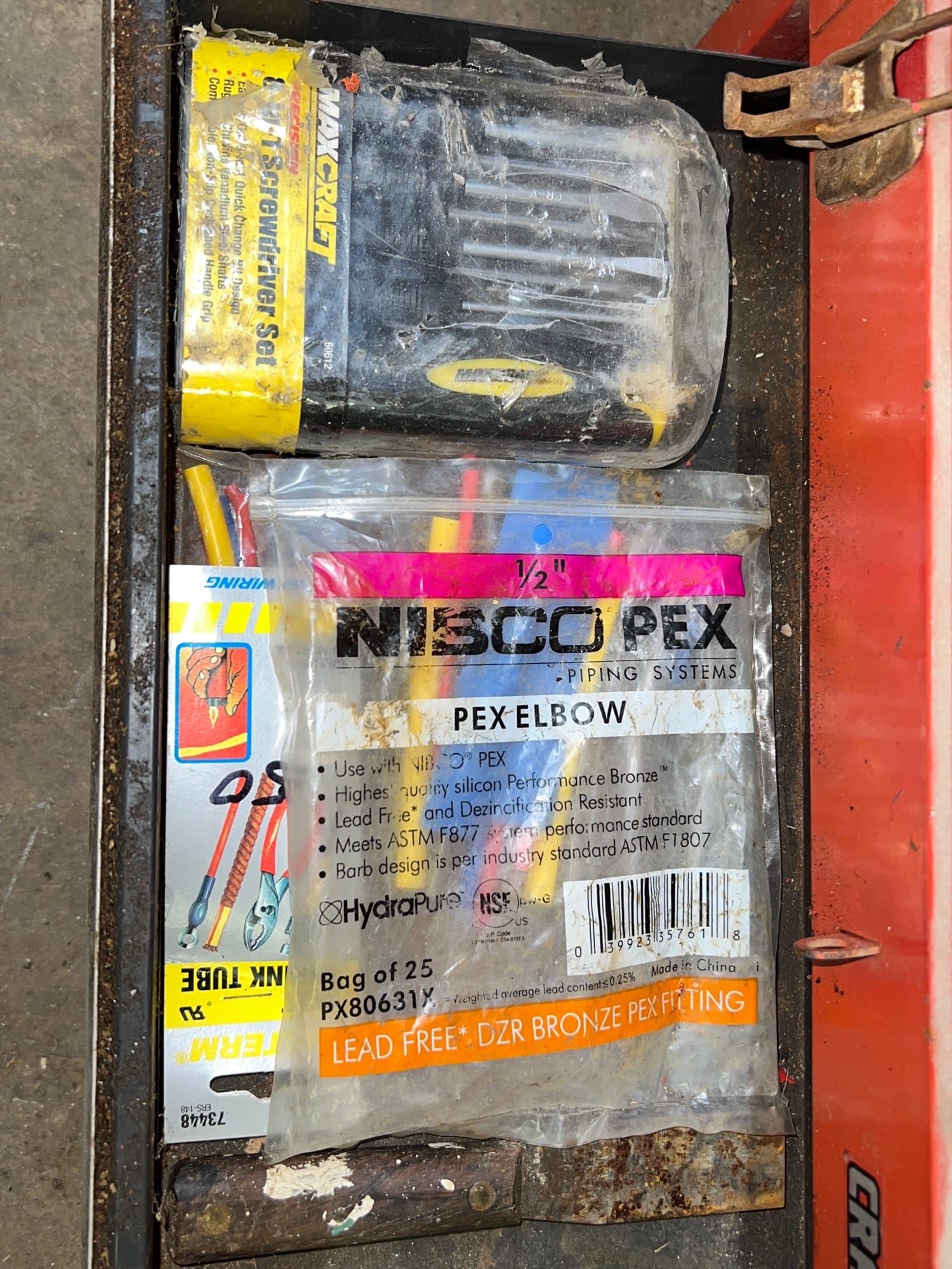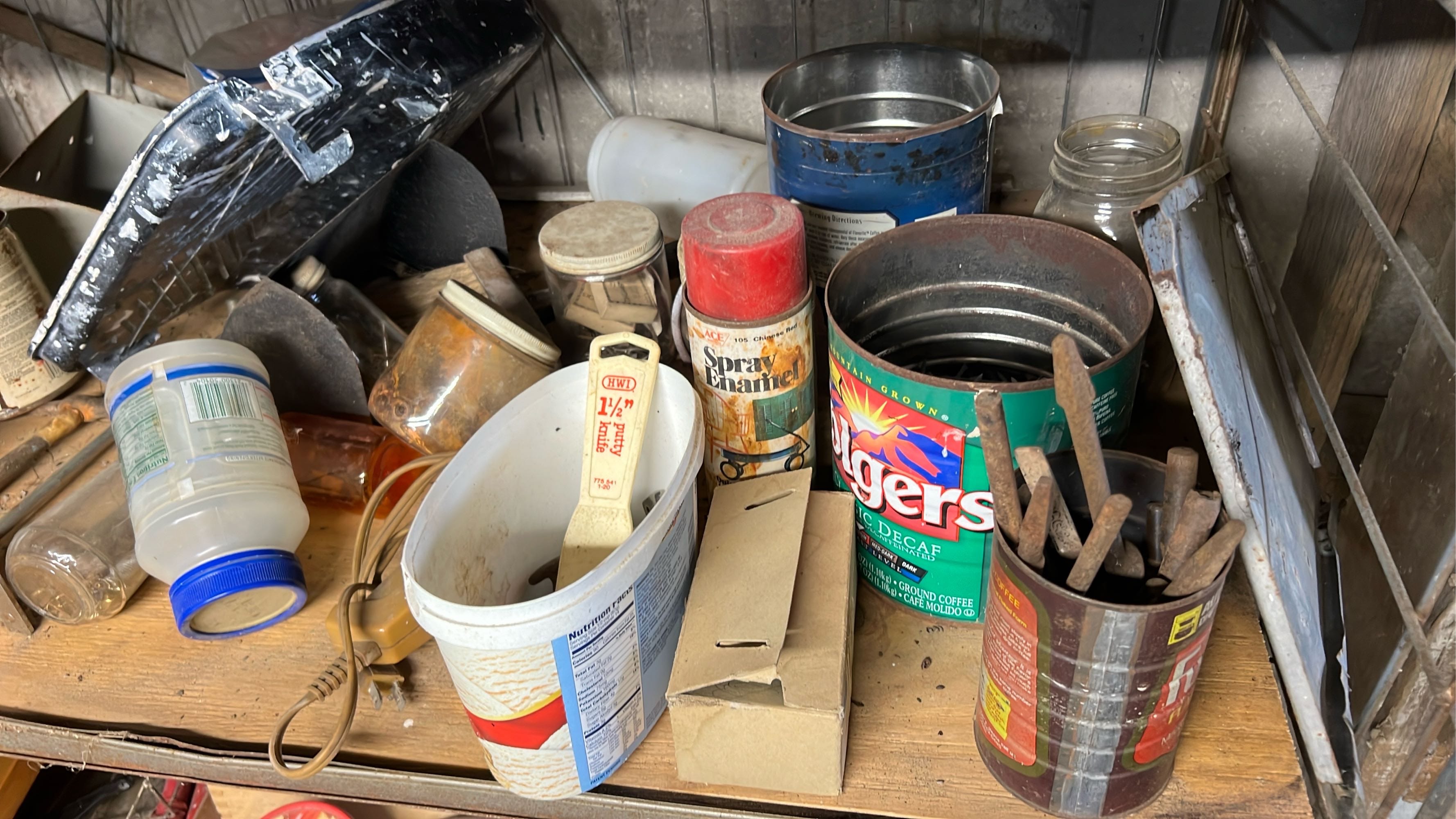 1114 Horseshoe Nail assortment • Chain • Files • Caulk Gun • Tote 17.5” • misc