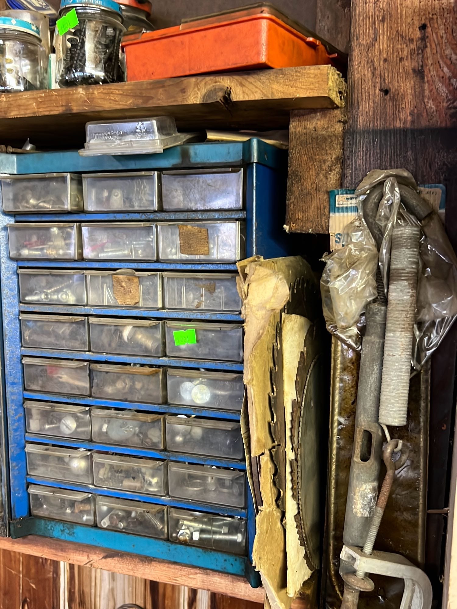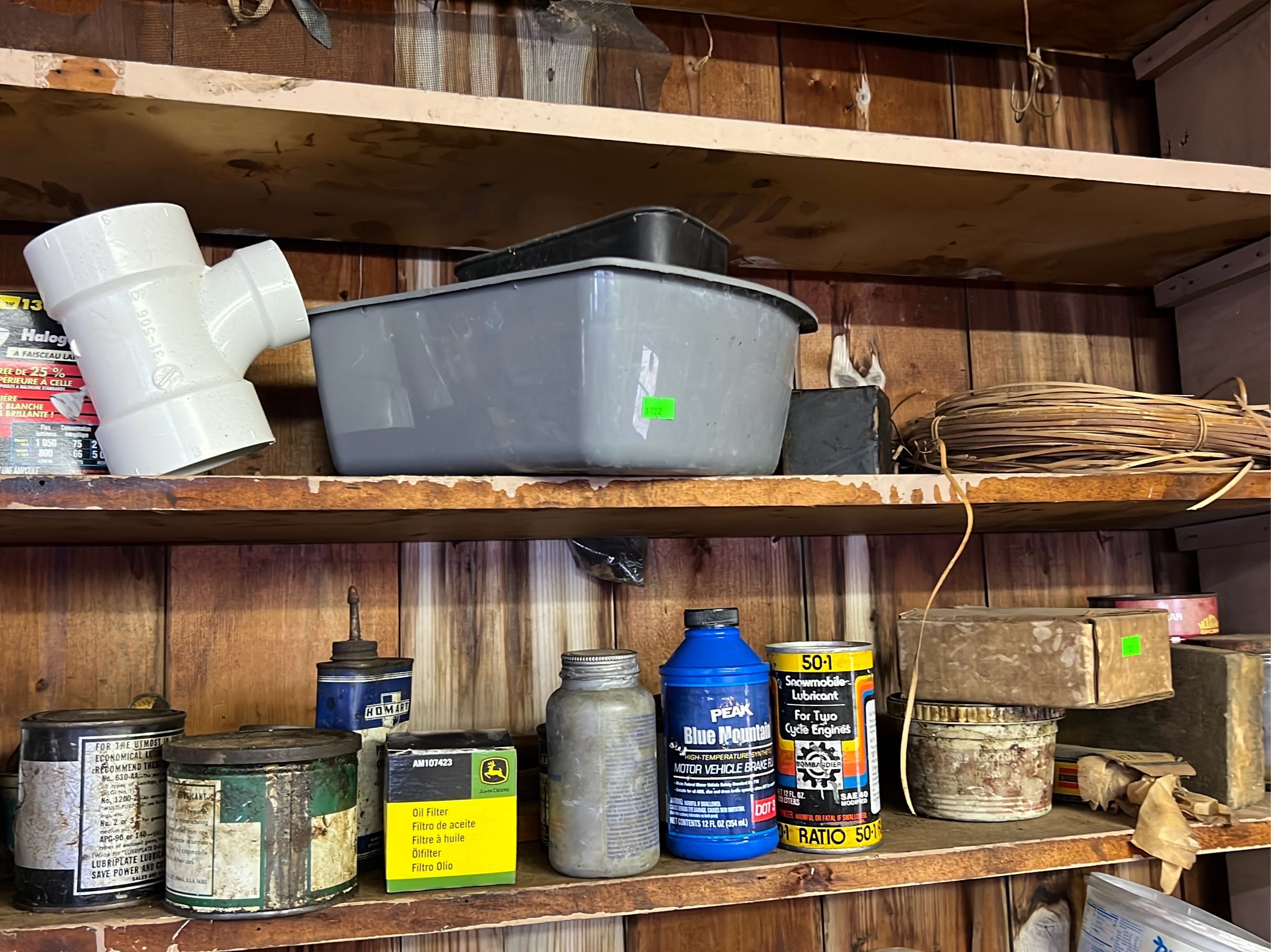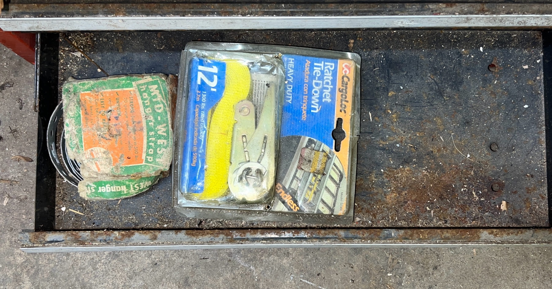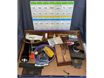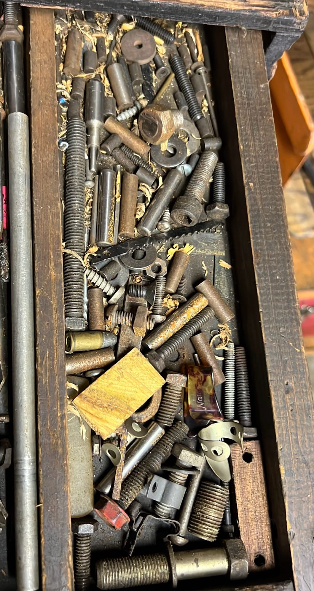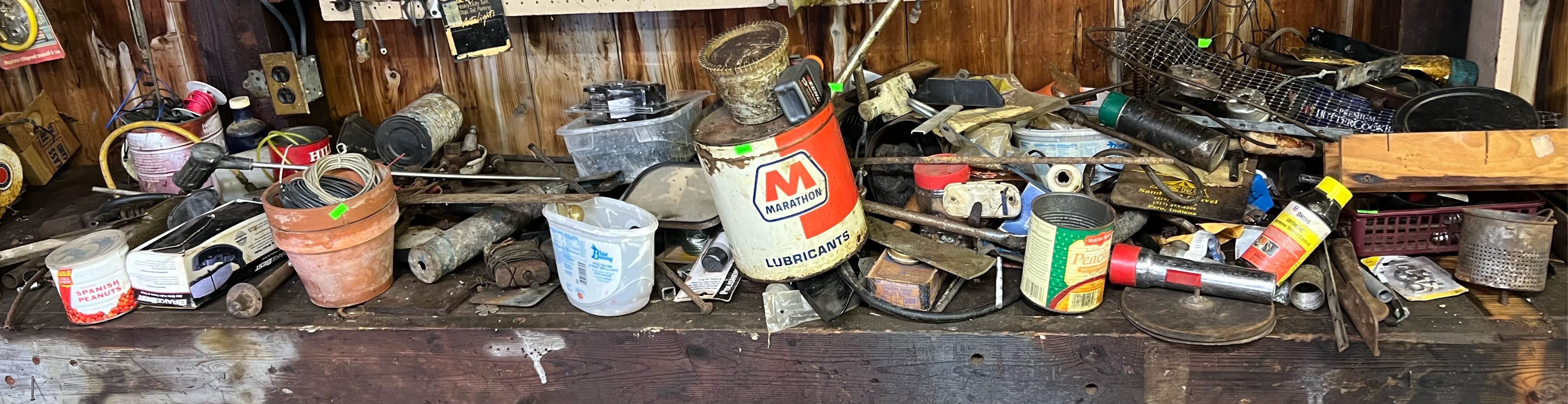 1114 Horseshoe Nail assortment • Chain • Files • Caulk Gun • Tote 17.5” • misc