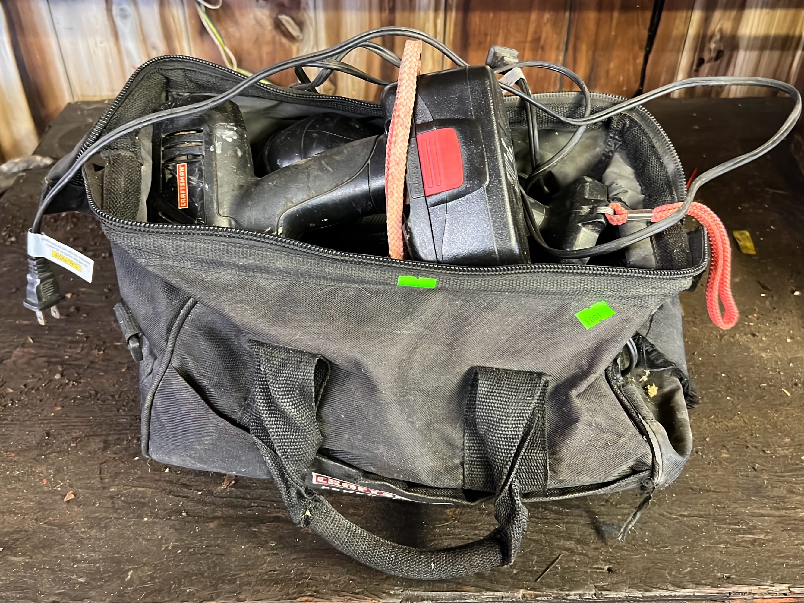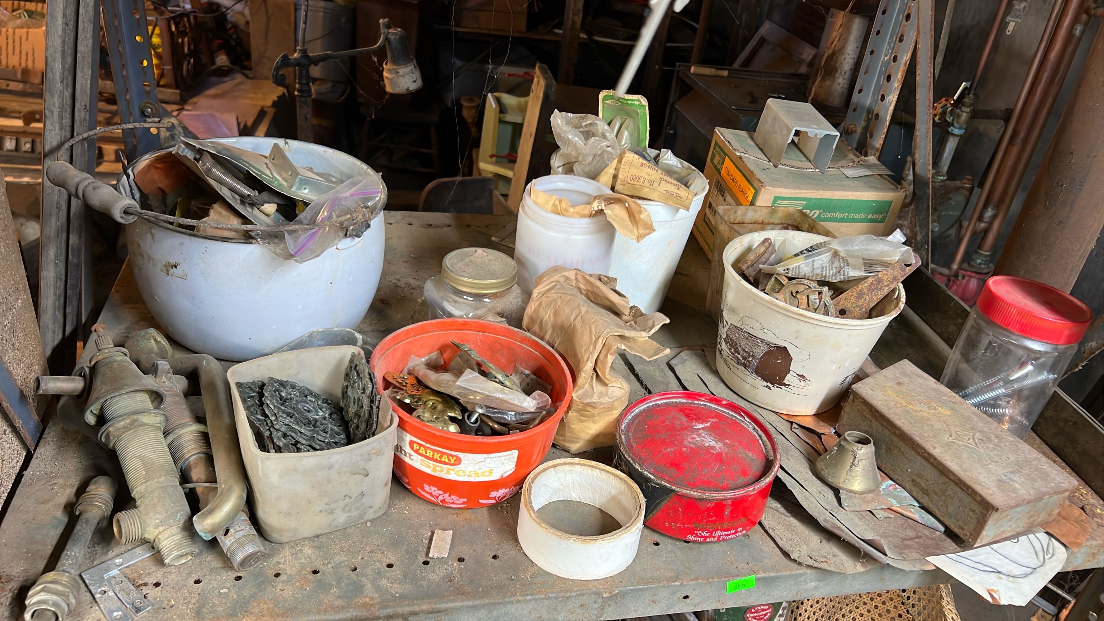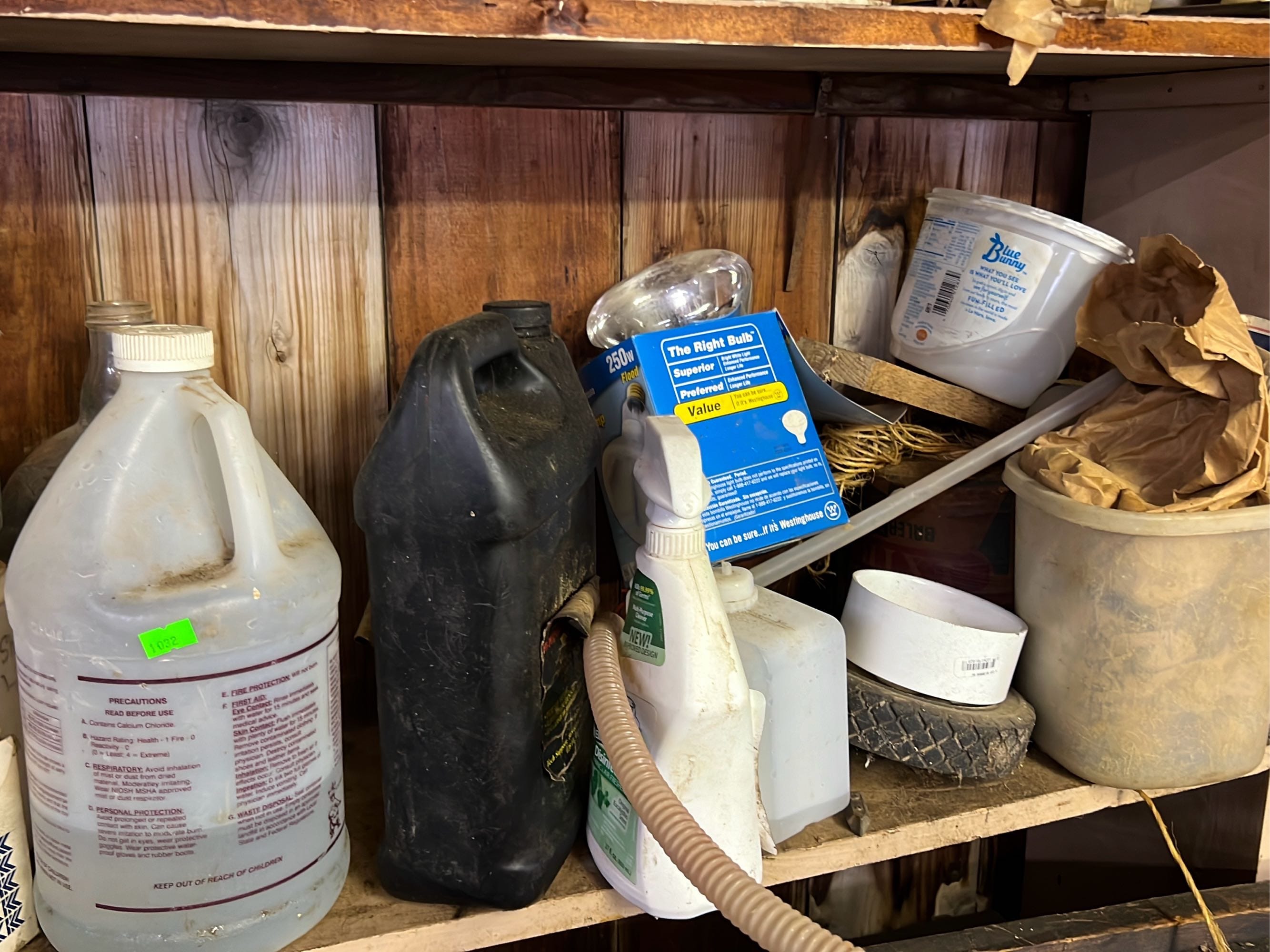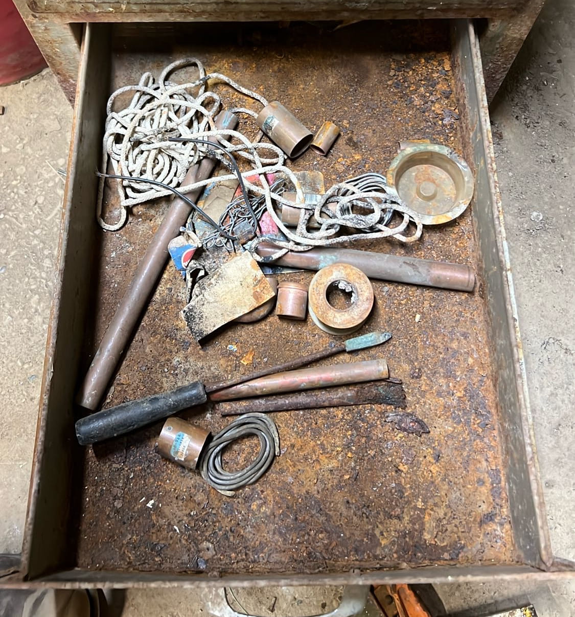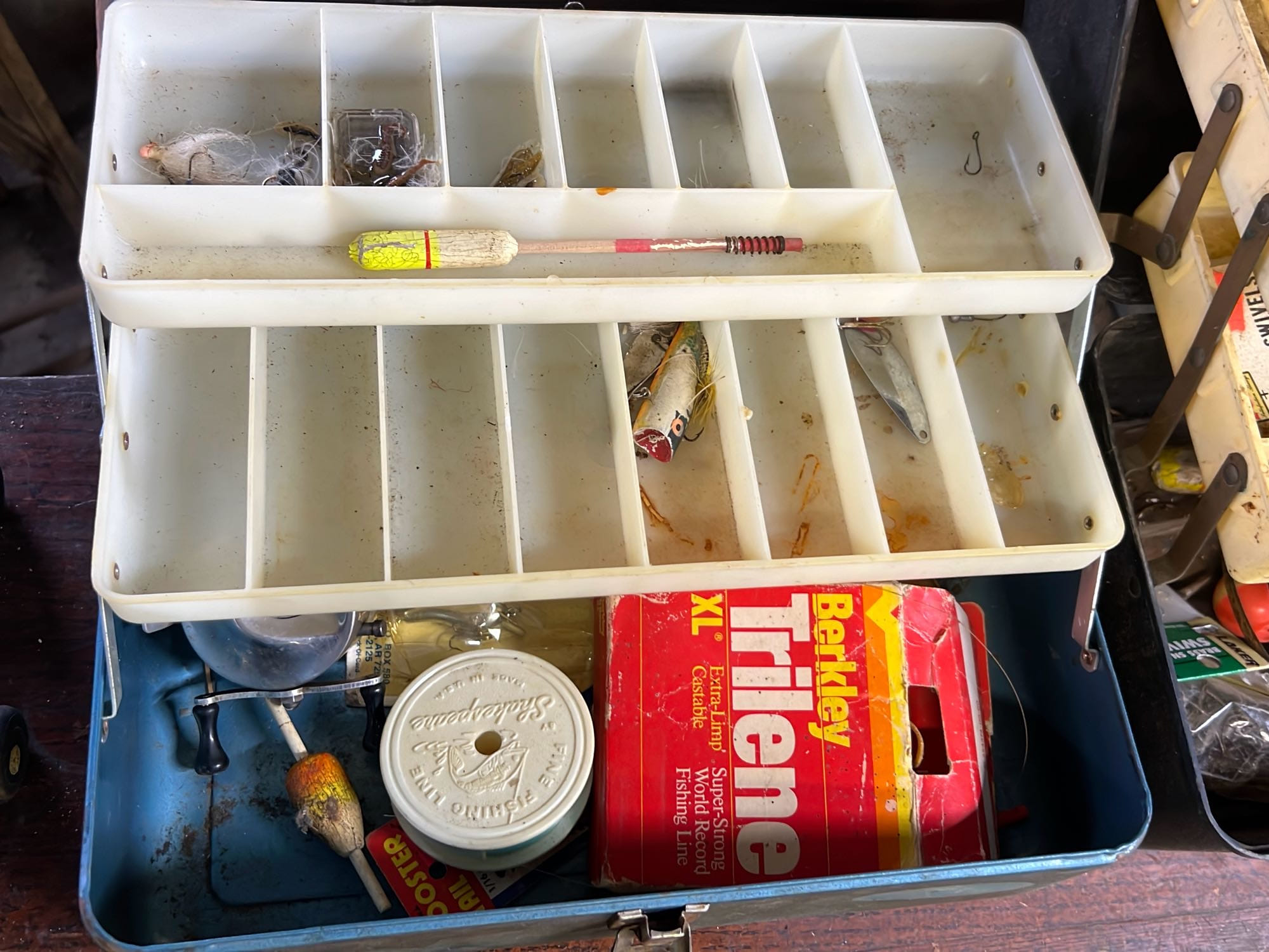 1114 Horseshoe Nail assortment • Chain • Files • Caulk Gun • Tote 17.5” • misc