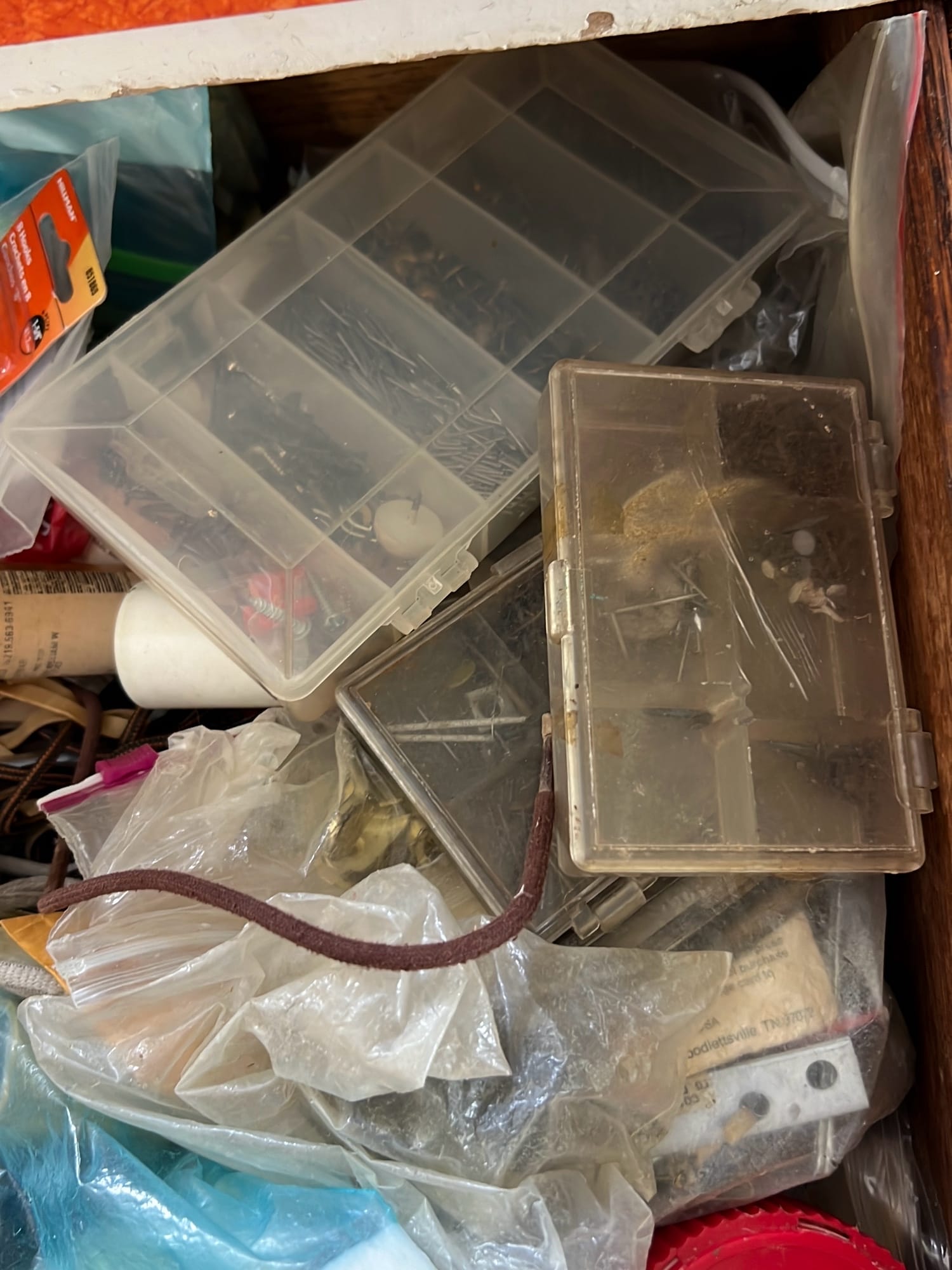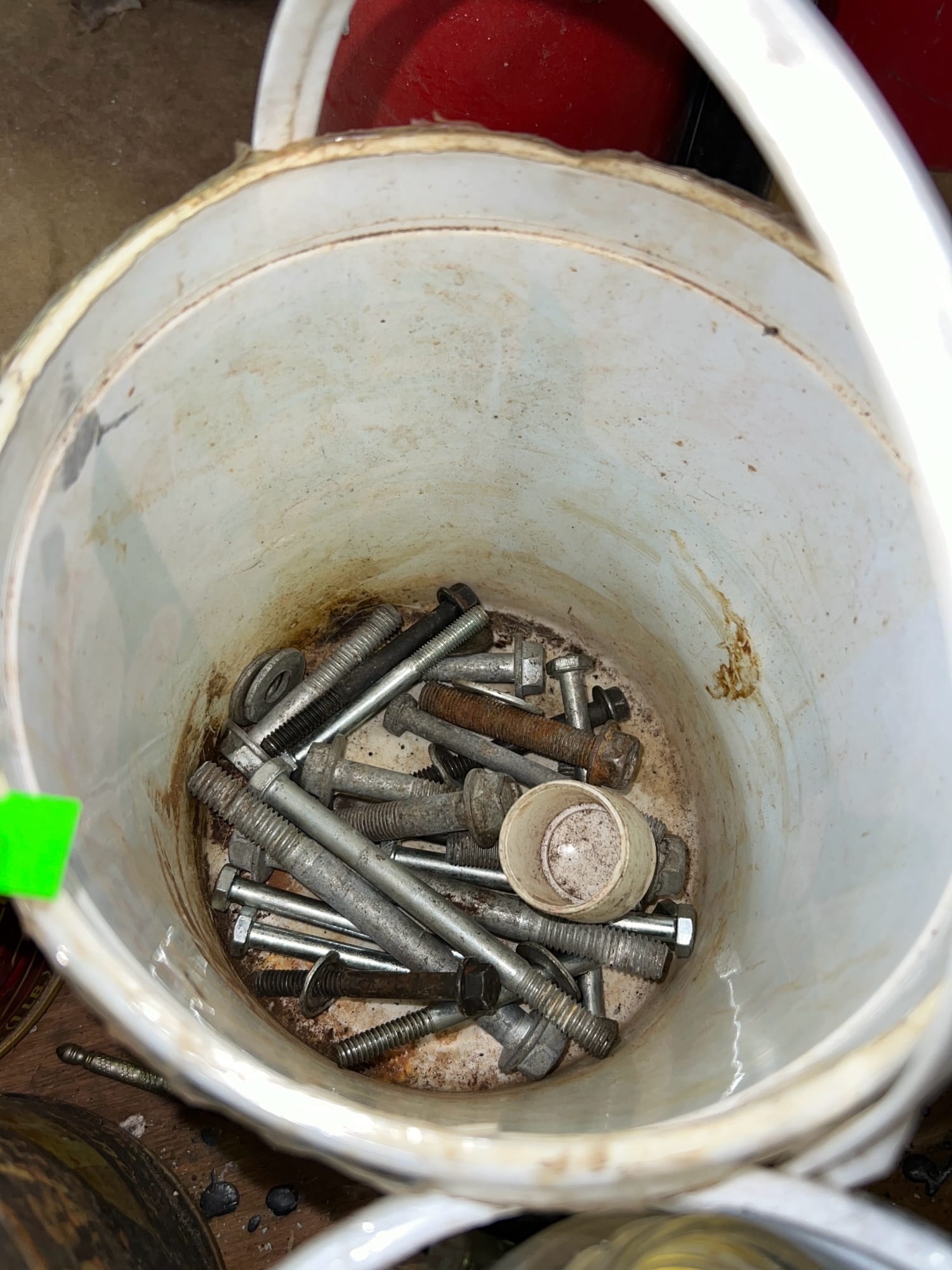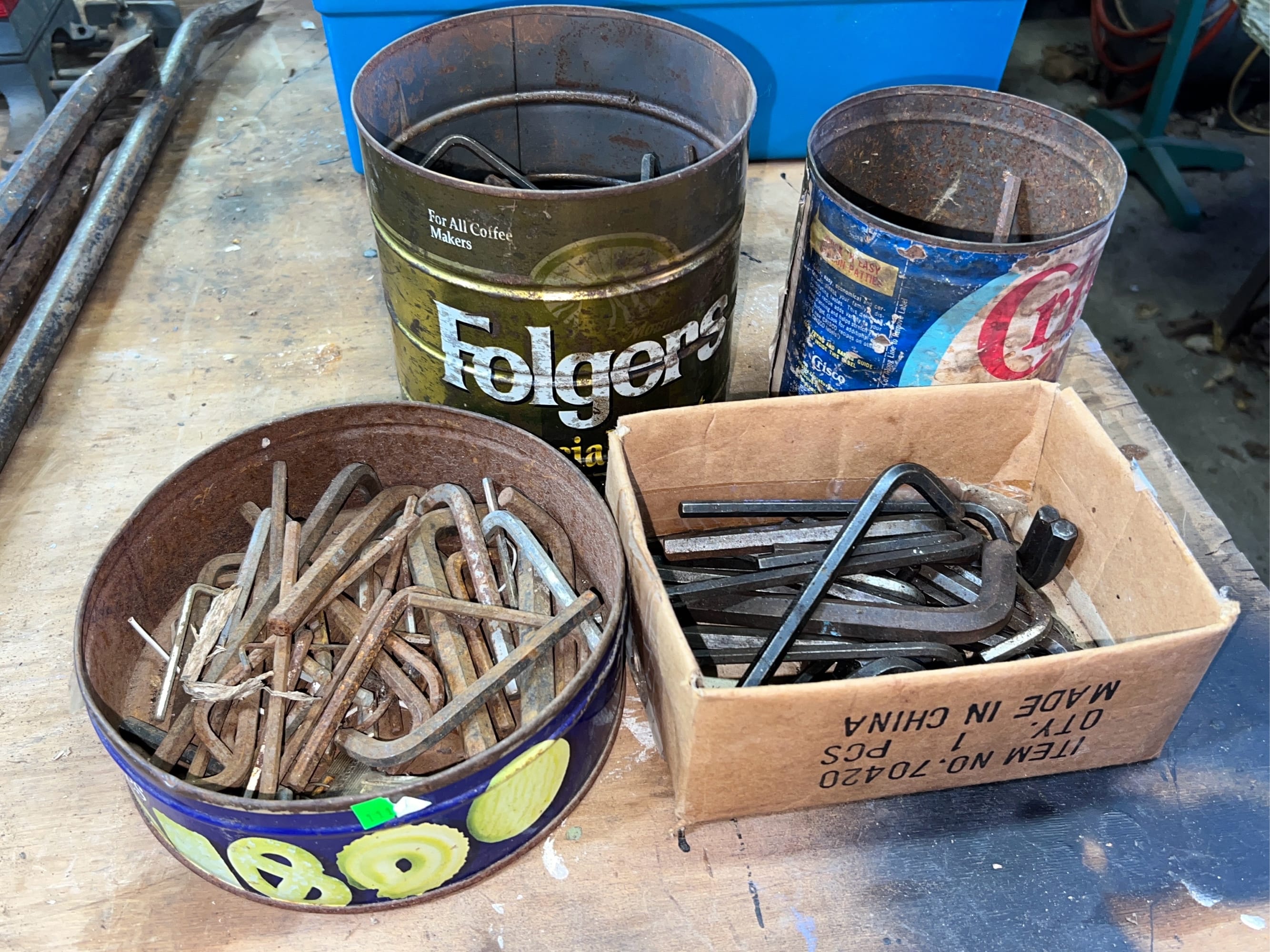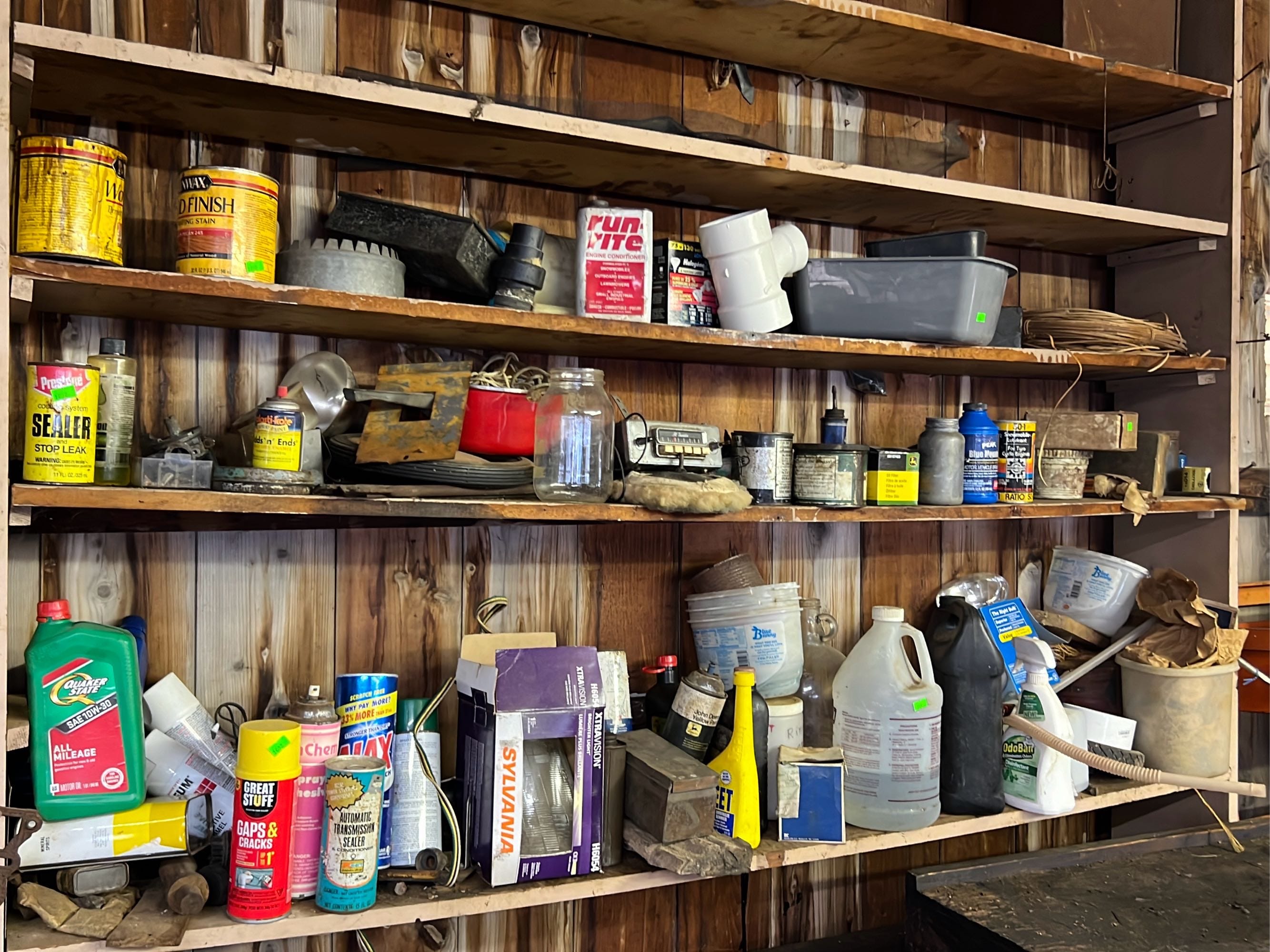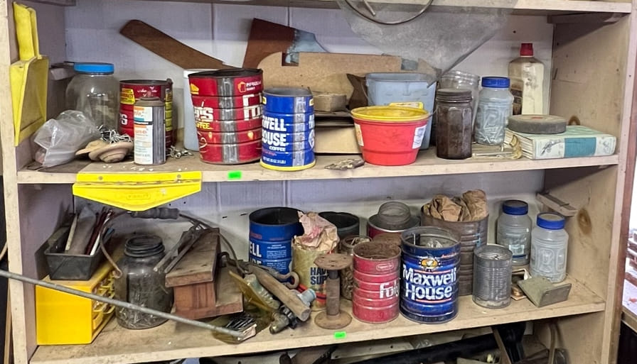 1114 Horseshoe Nail assortment • Chain • Files • Caulk Gun • Tote 17.5” • misc