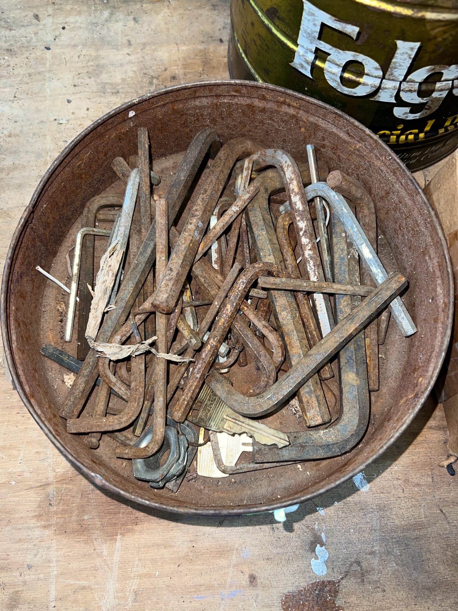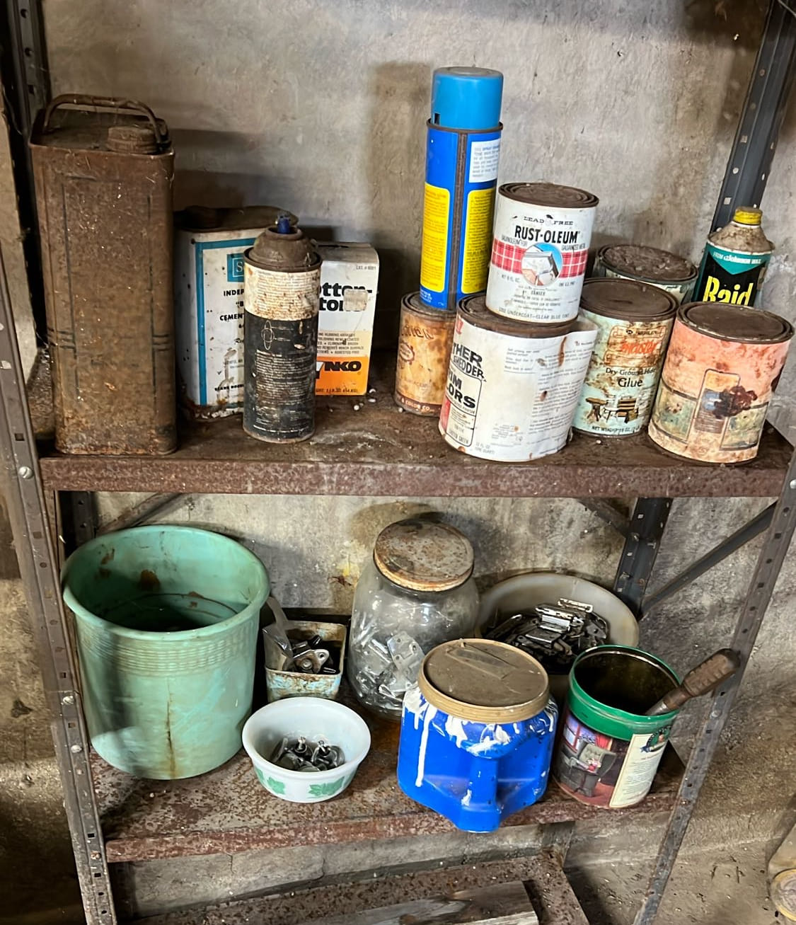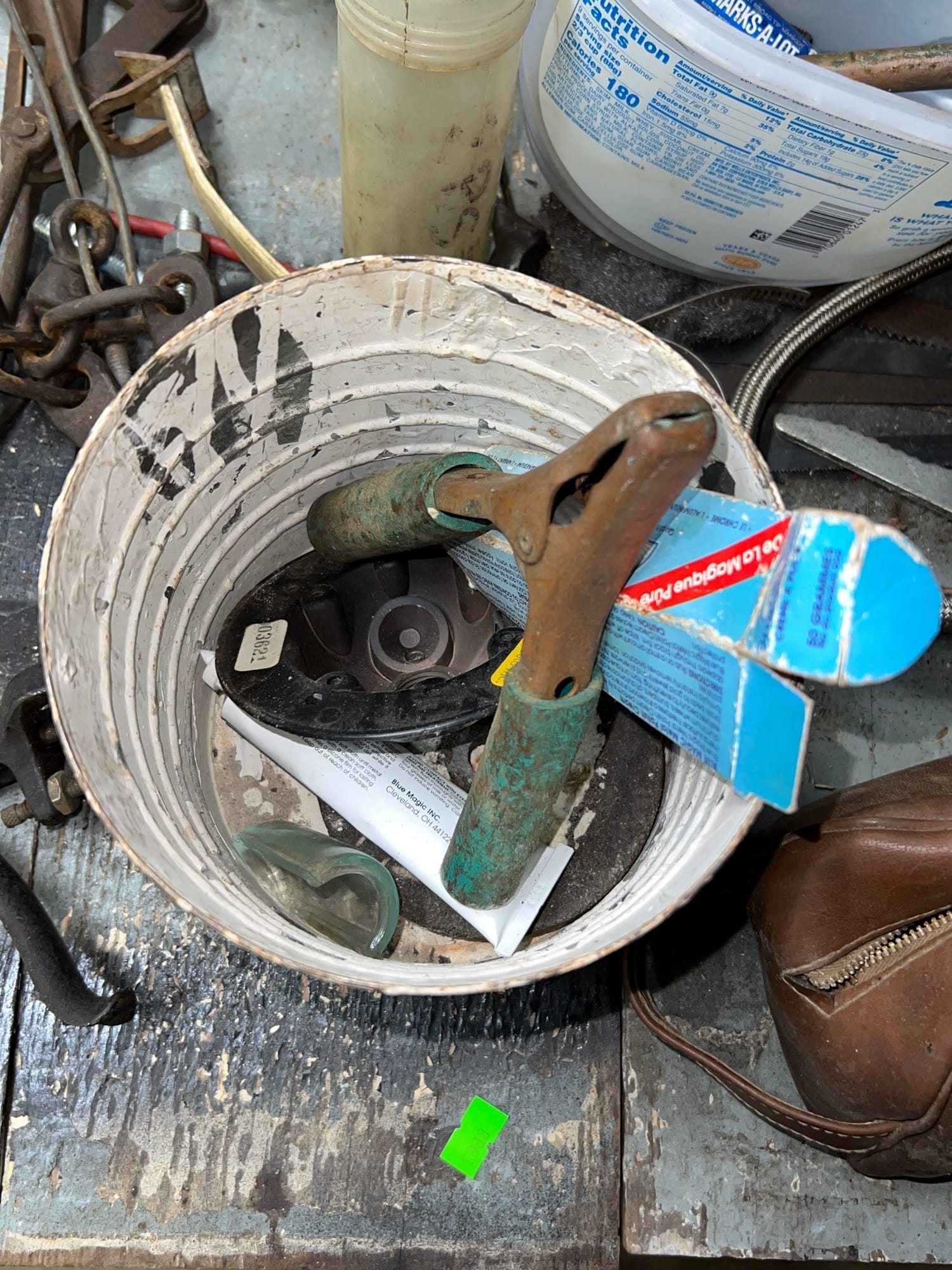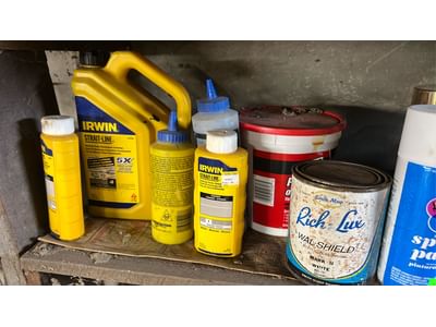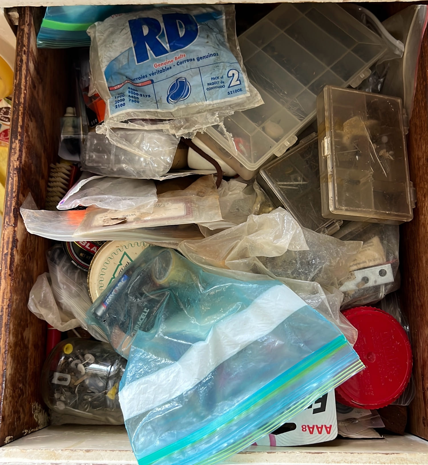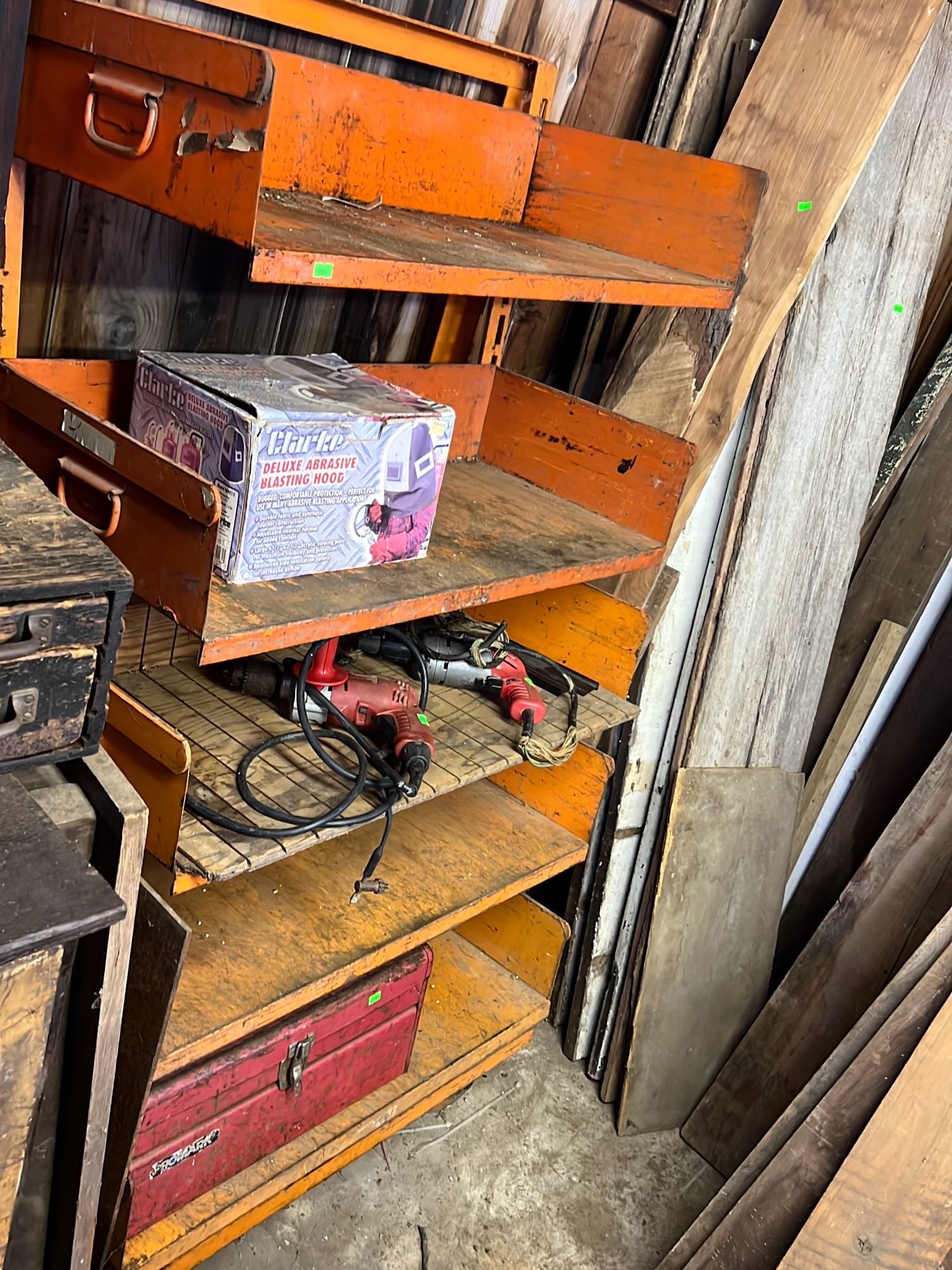 1114 Horseshoe Nail assortment • Chain • Files • Caulk Gun • Tote 17.5” • misc