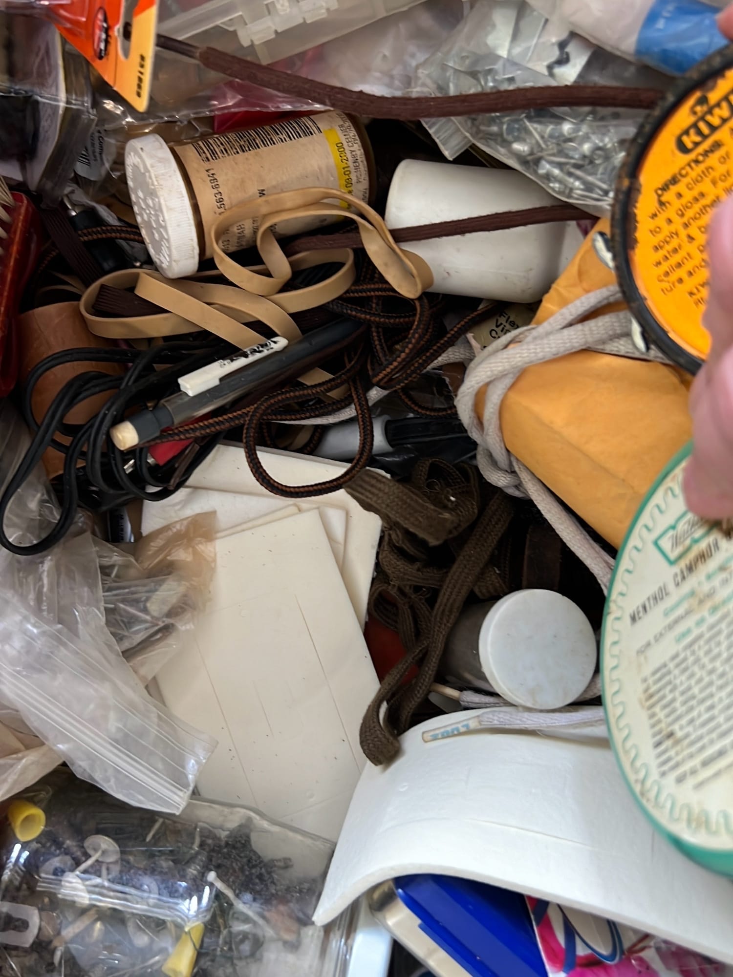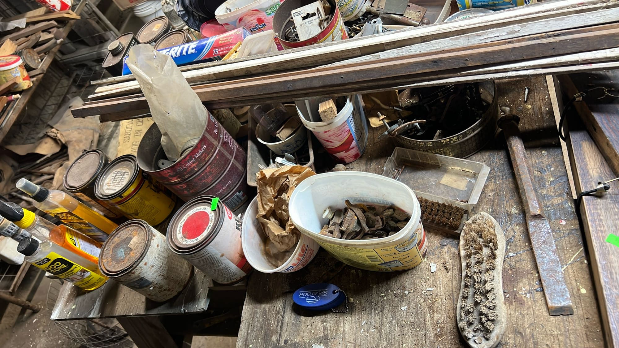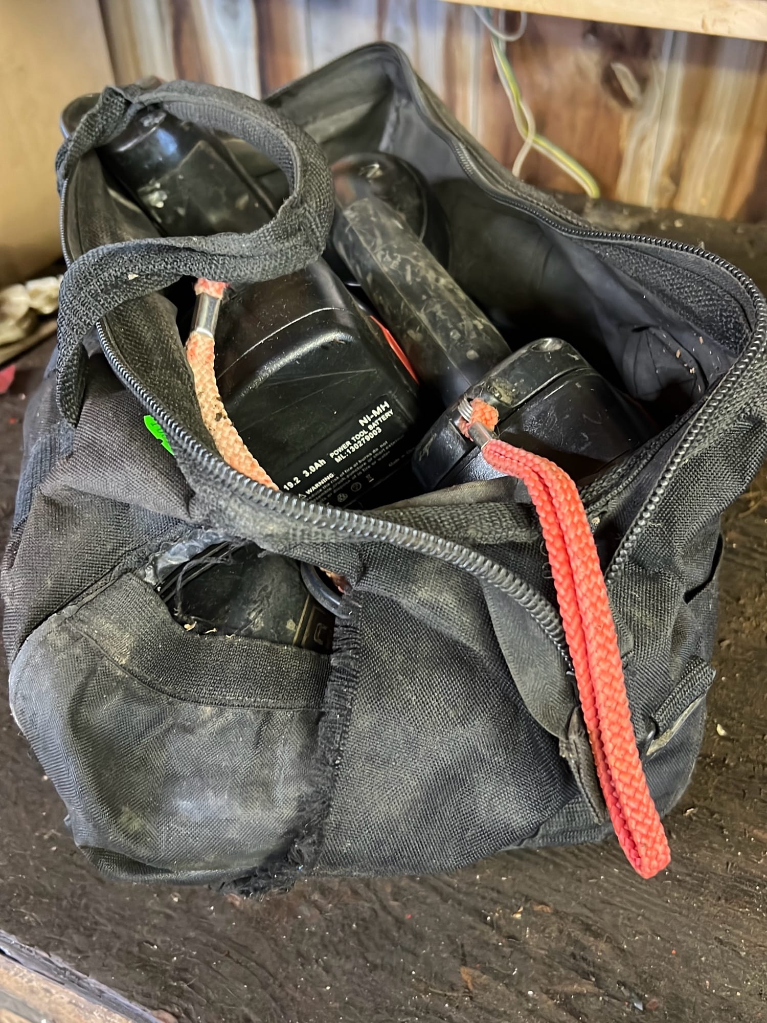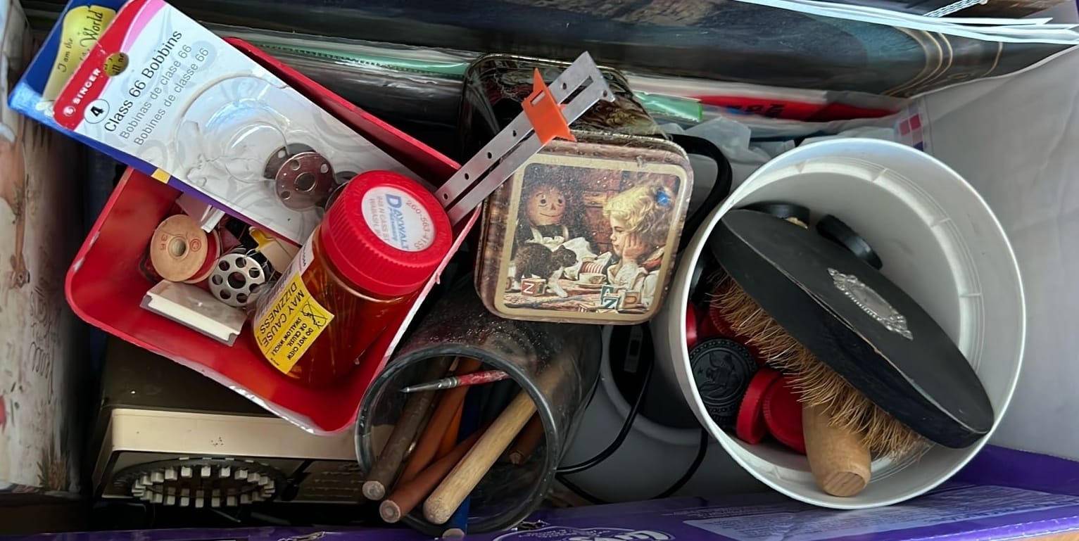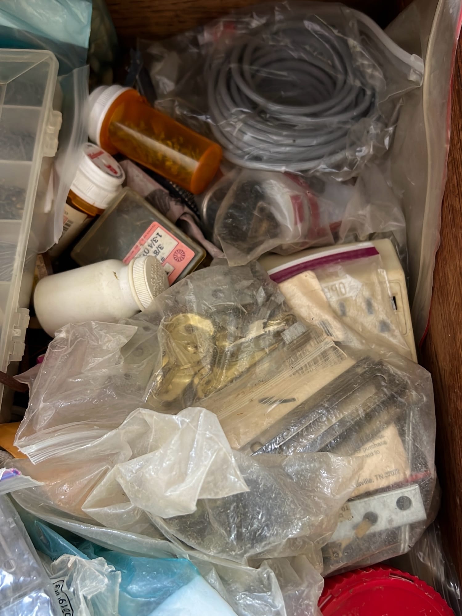 1114 Horseshoe Nail assortment • Chain • Files • Caulk Gun • Tote 17.5” • misc