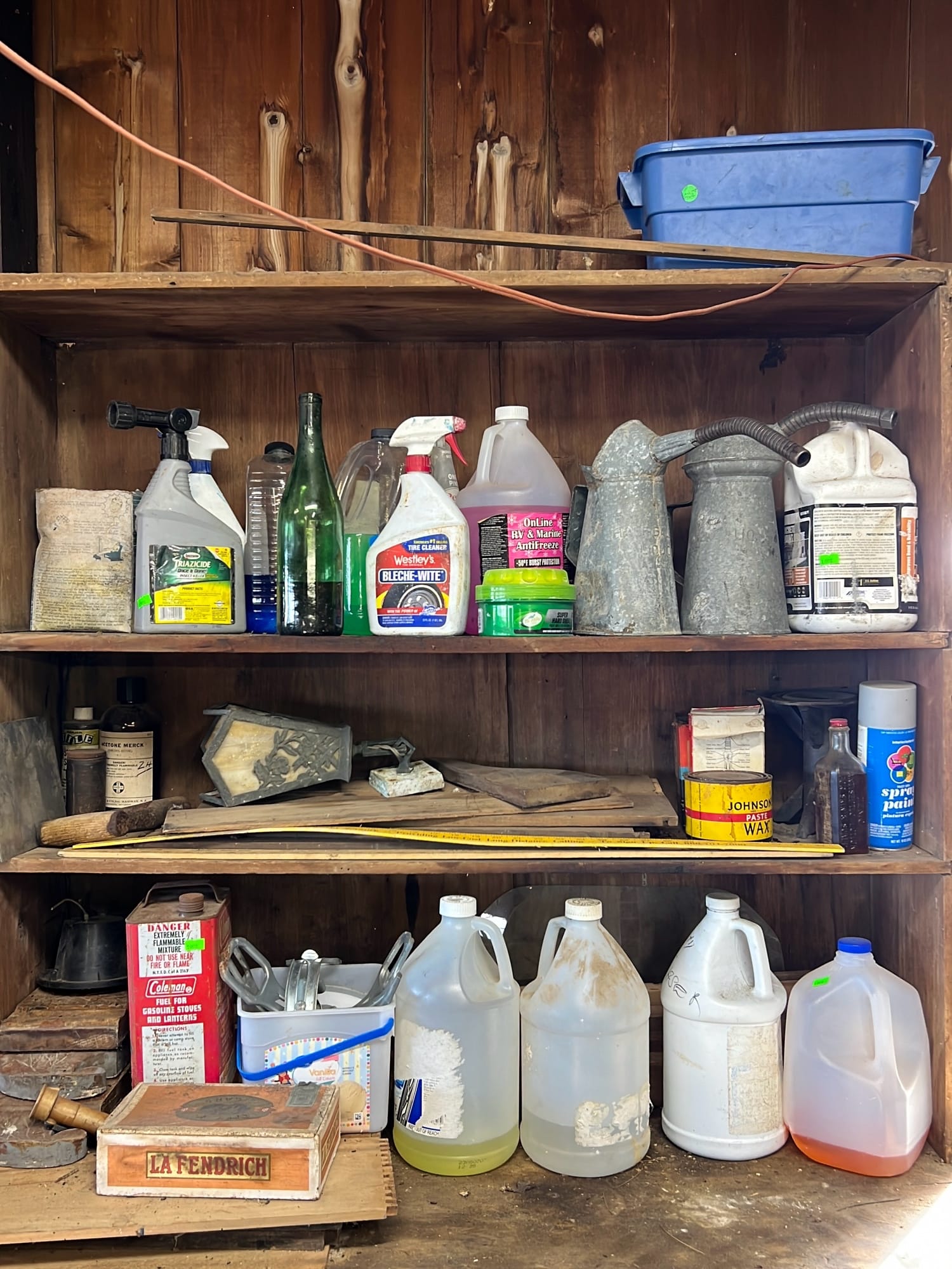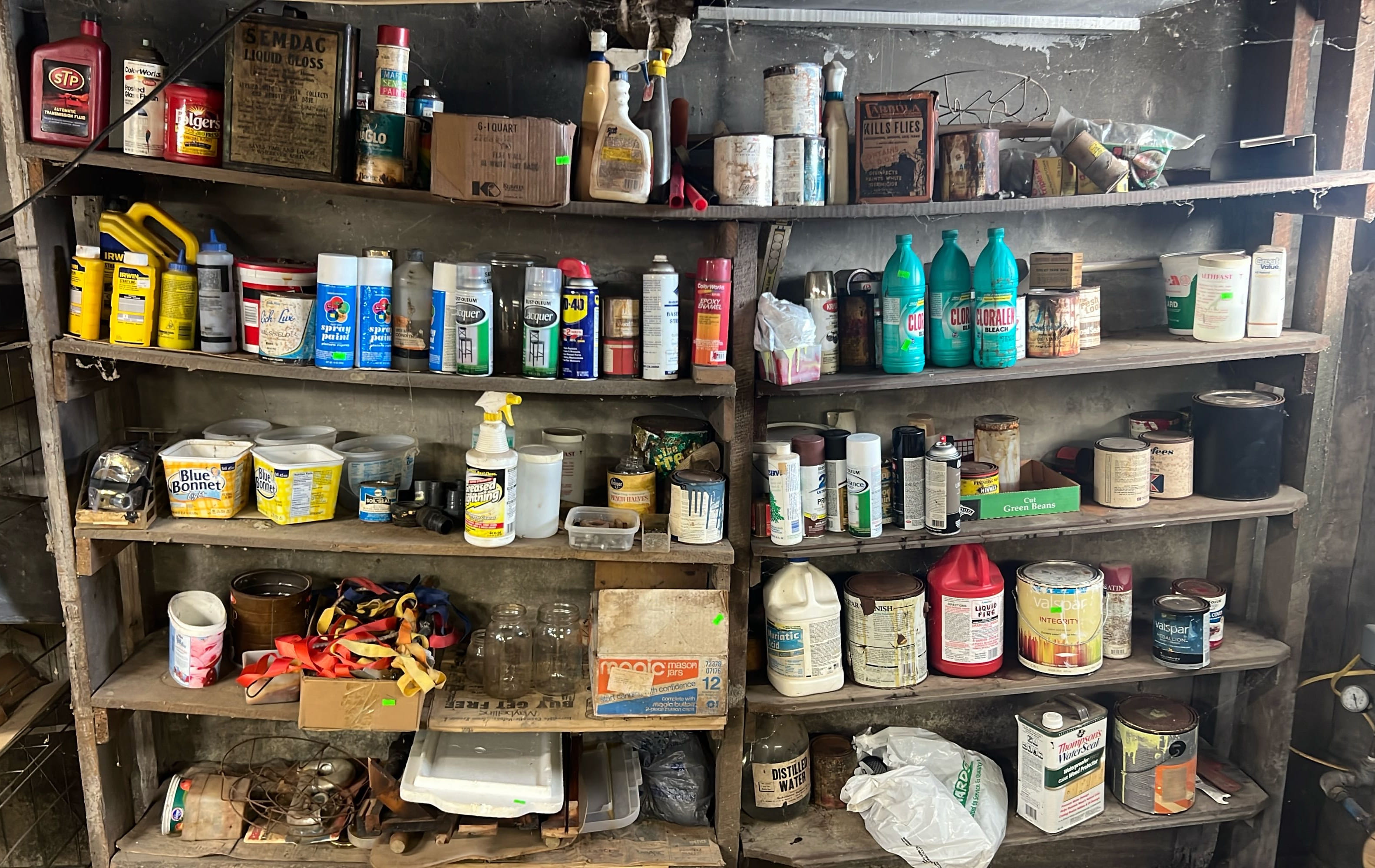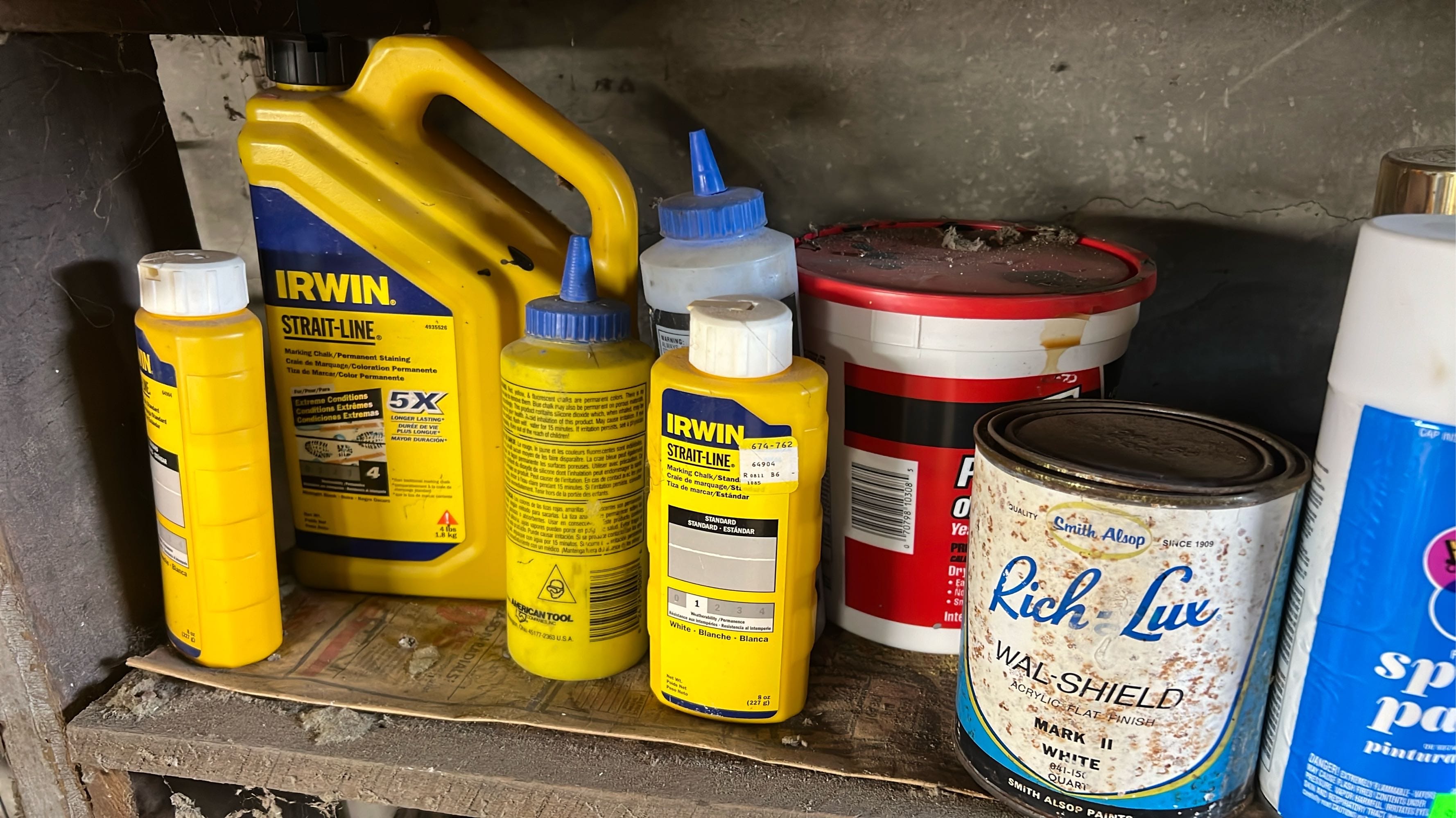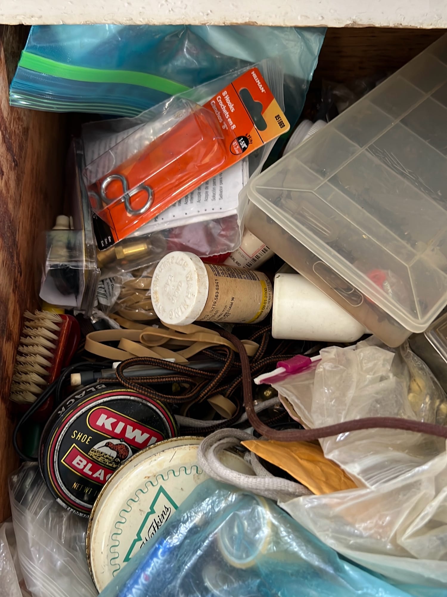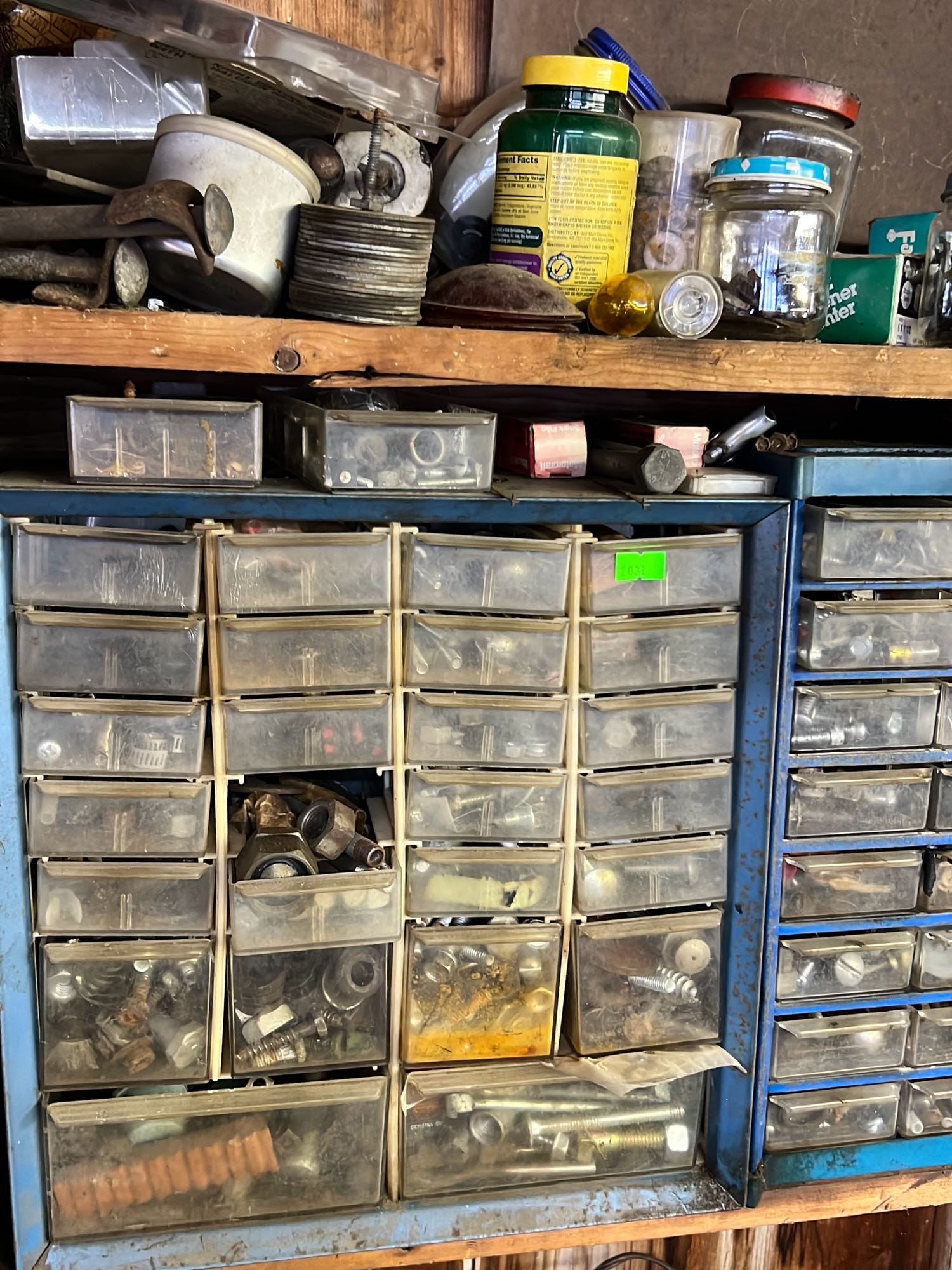 1114 Horseshoe Nail assortment • Chain • Files • Caulk Gun • Tote 17.5” • misc
