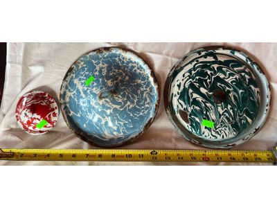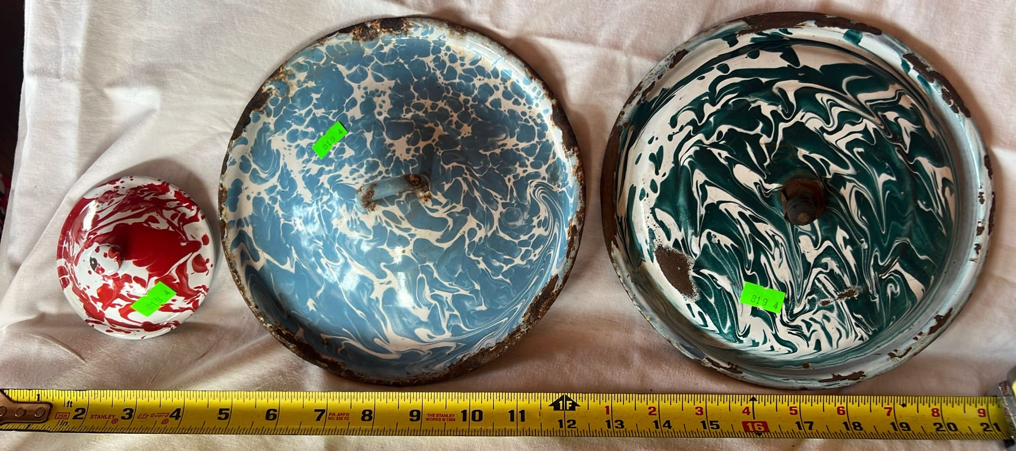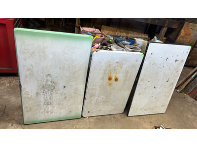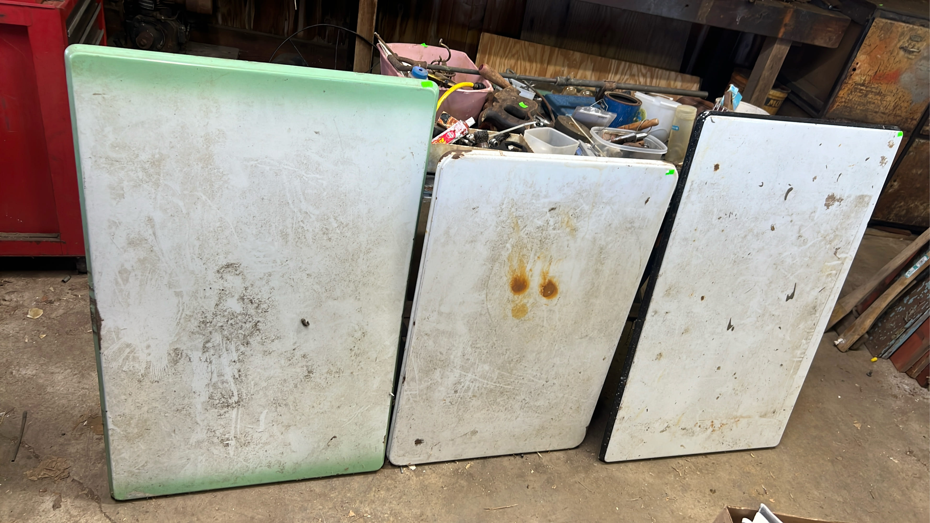 1122 Three Porcelain Table Tops 34.75”x22.75” • 25”x39.75”, 25”x40” (all have chips)