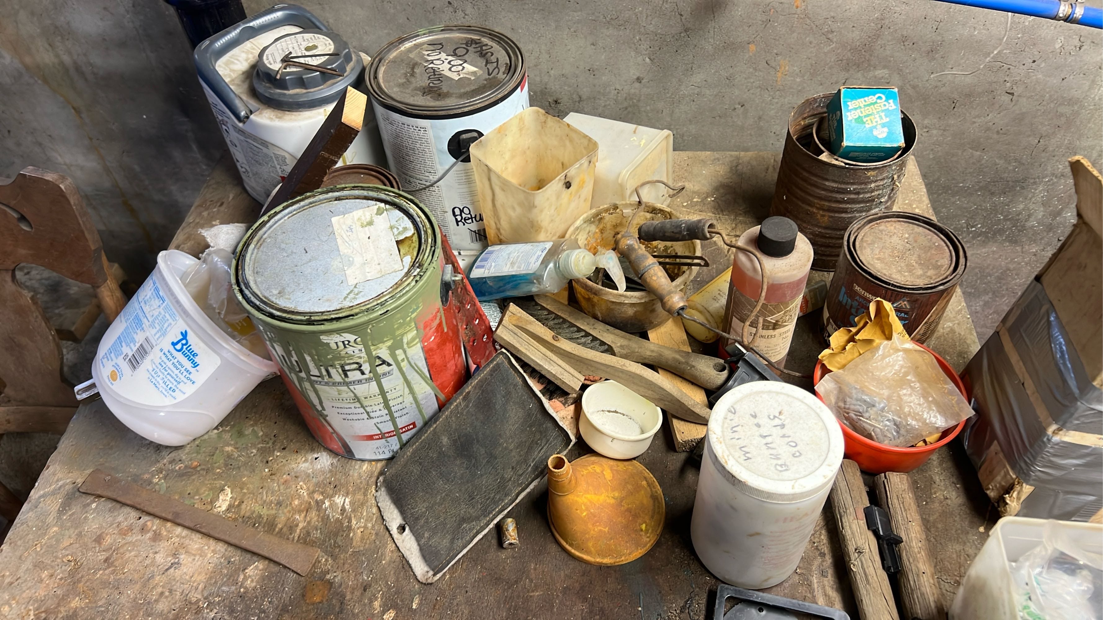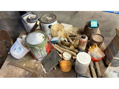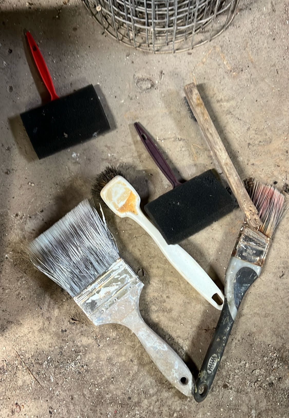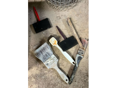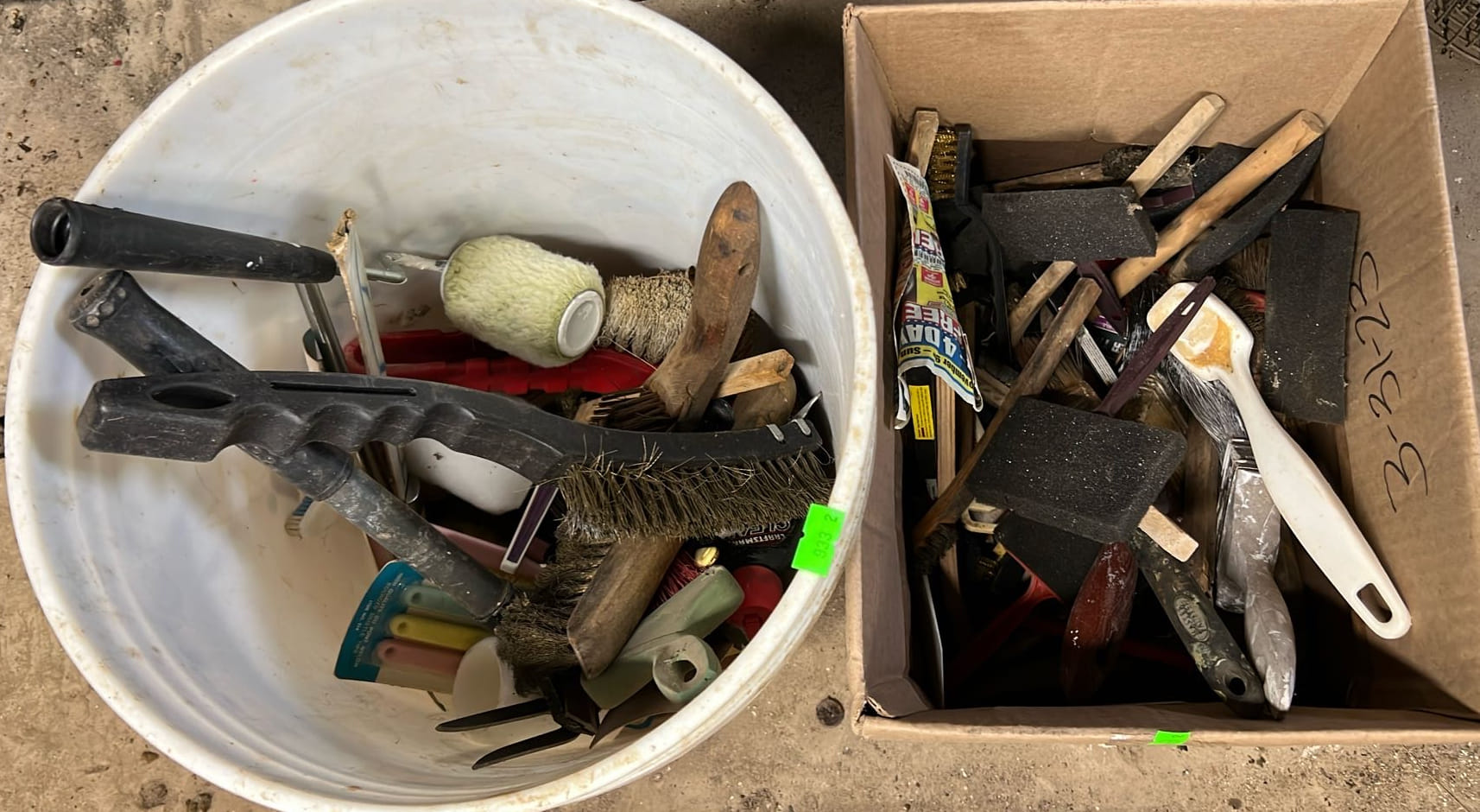 1138 Painting supplies, rollers, assorted brushes, miscellaneous tools