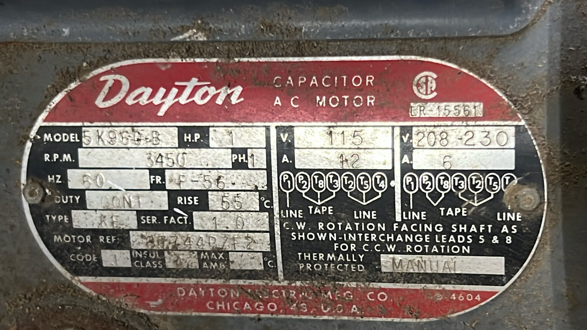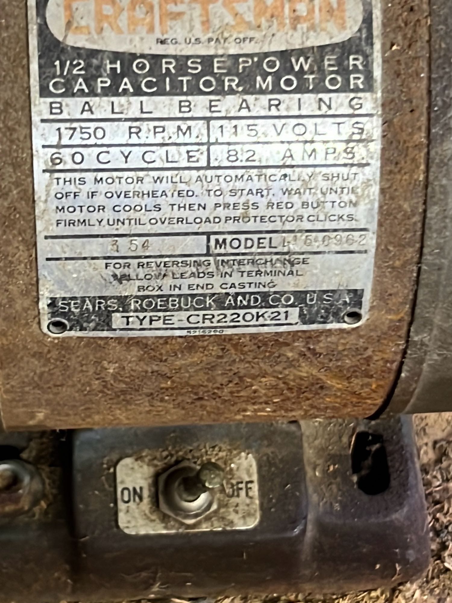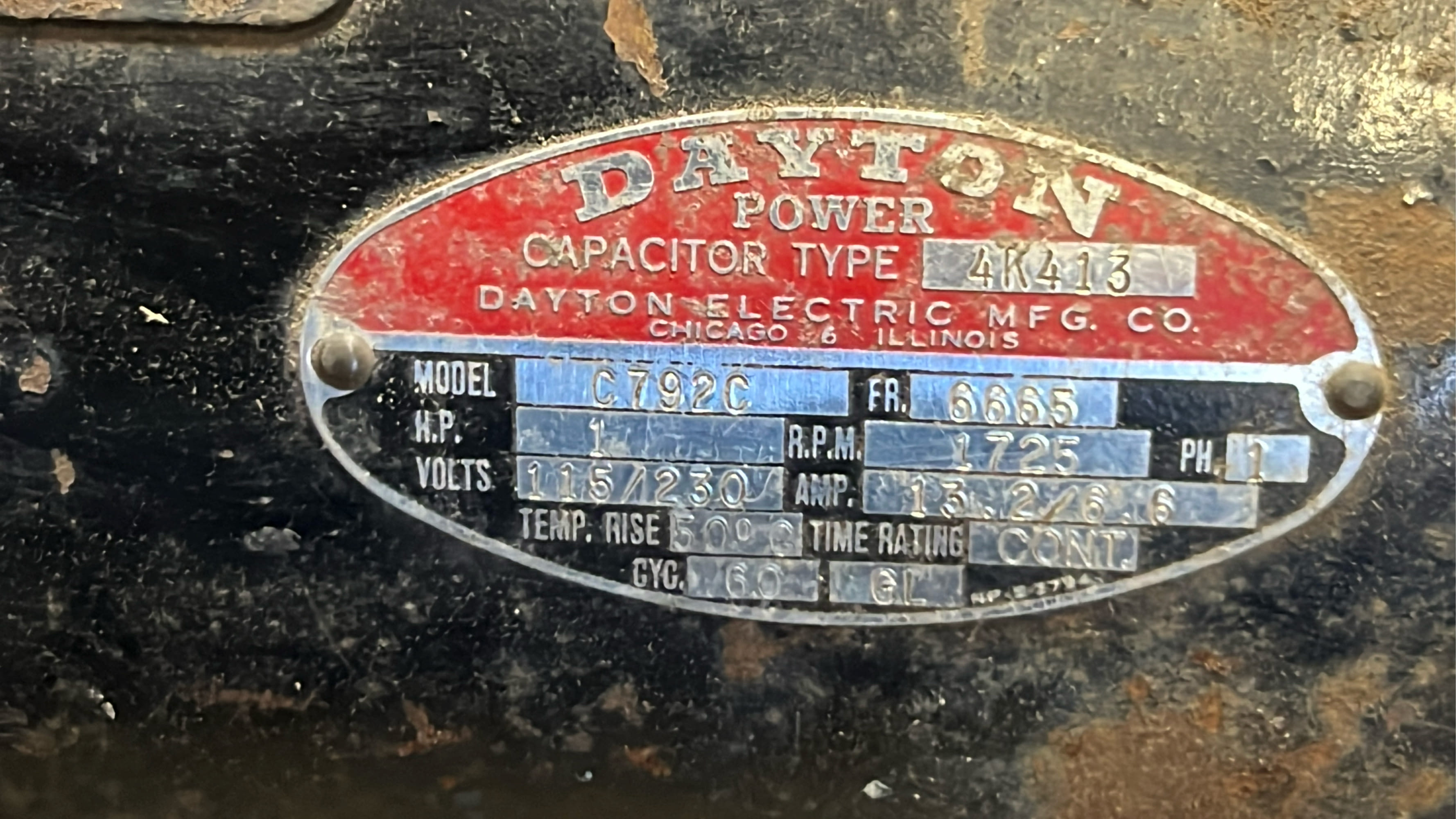 1131 Dayton Electric Motor (works) • Craftsman Electric Motor (works but needs cord) • (2) Junk Electric Motors