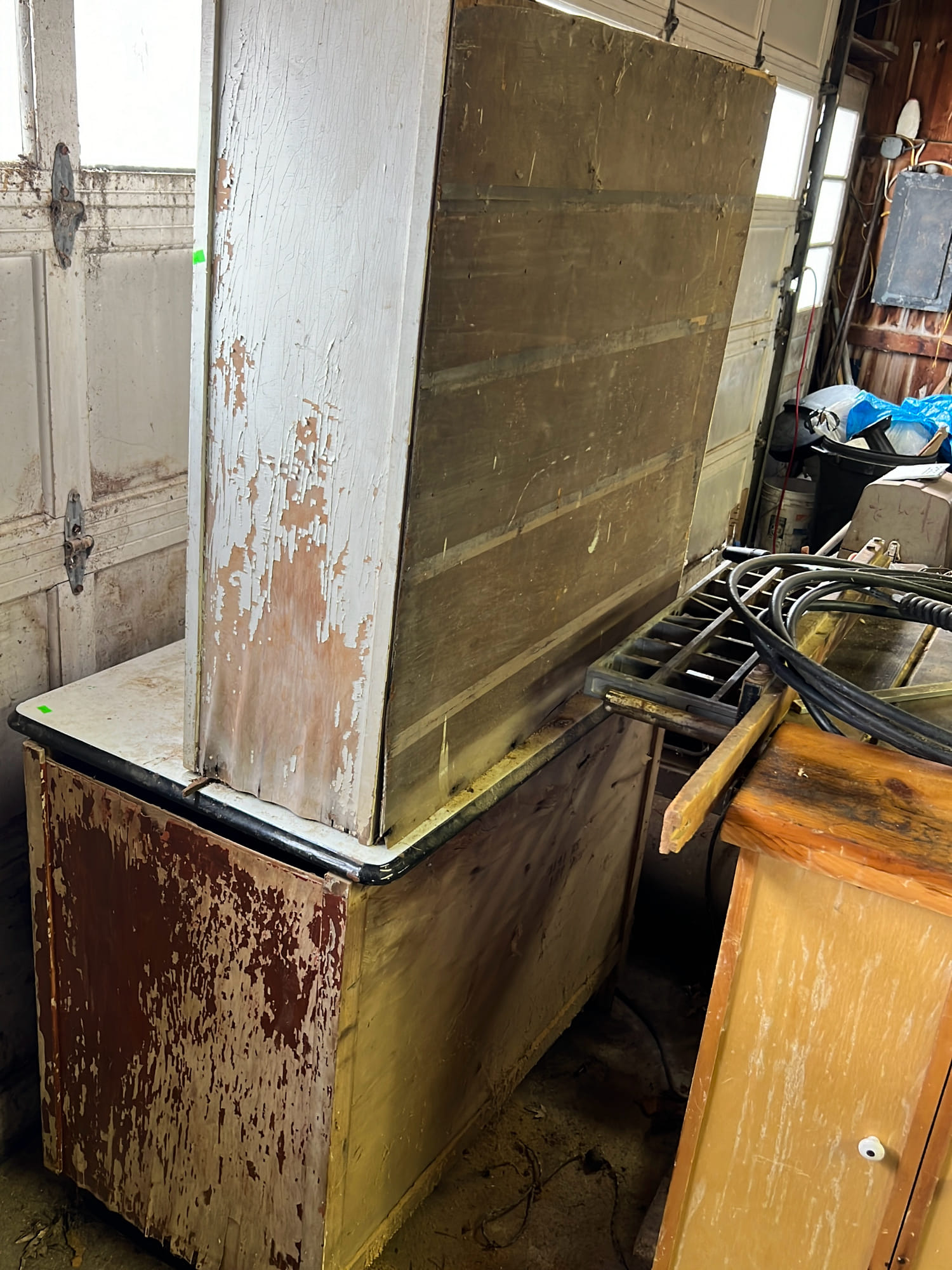 14 Painted Oak & Plastic Corner Cabinet 24”x72”x12”