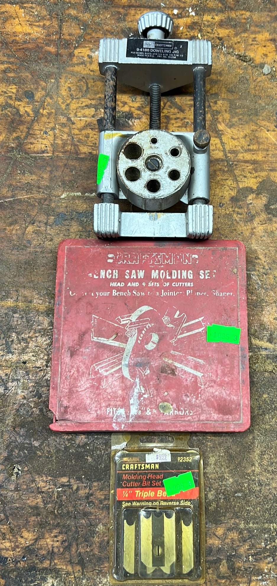 1085 Craftsman Doweling Jig #9-4186 • Craftsman Molding Head Cutter Bit Set 1/4” Triple Bead • Craftsman Bench Saw Milding Set