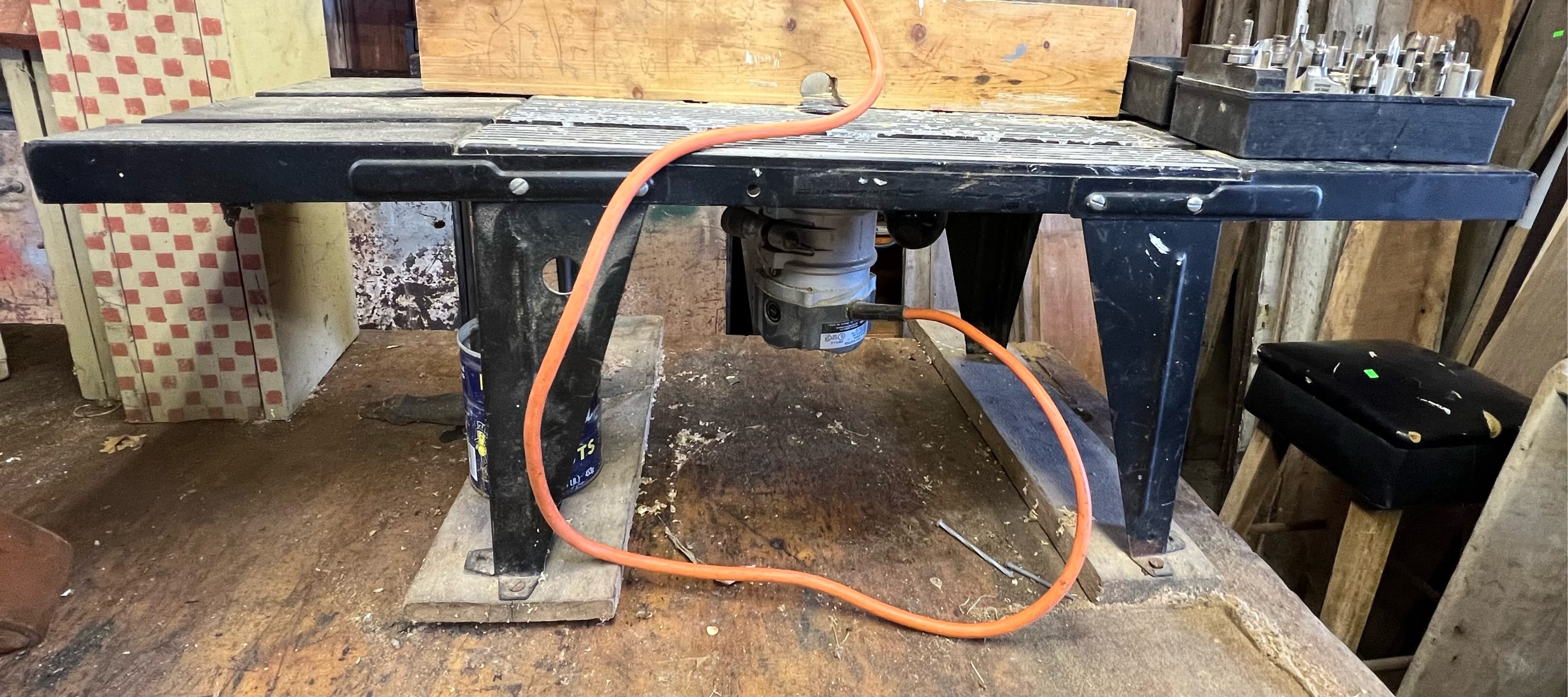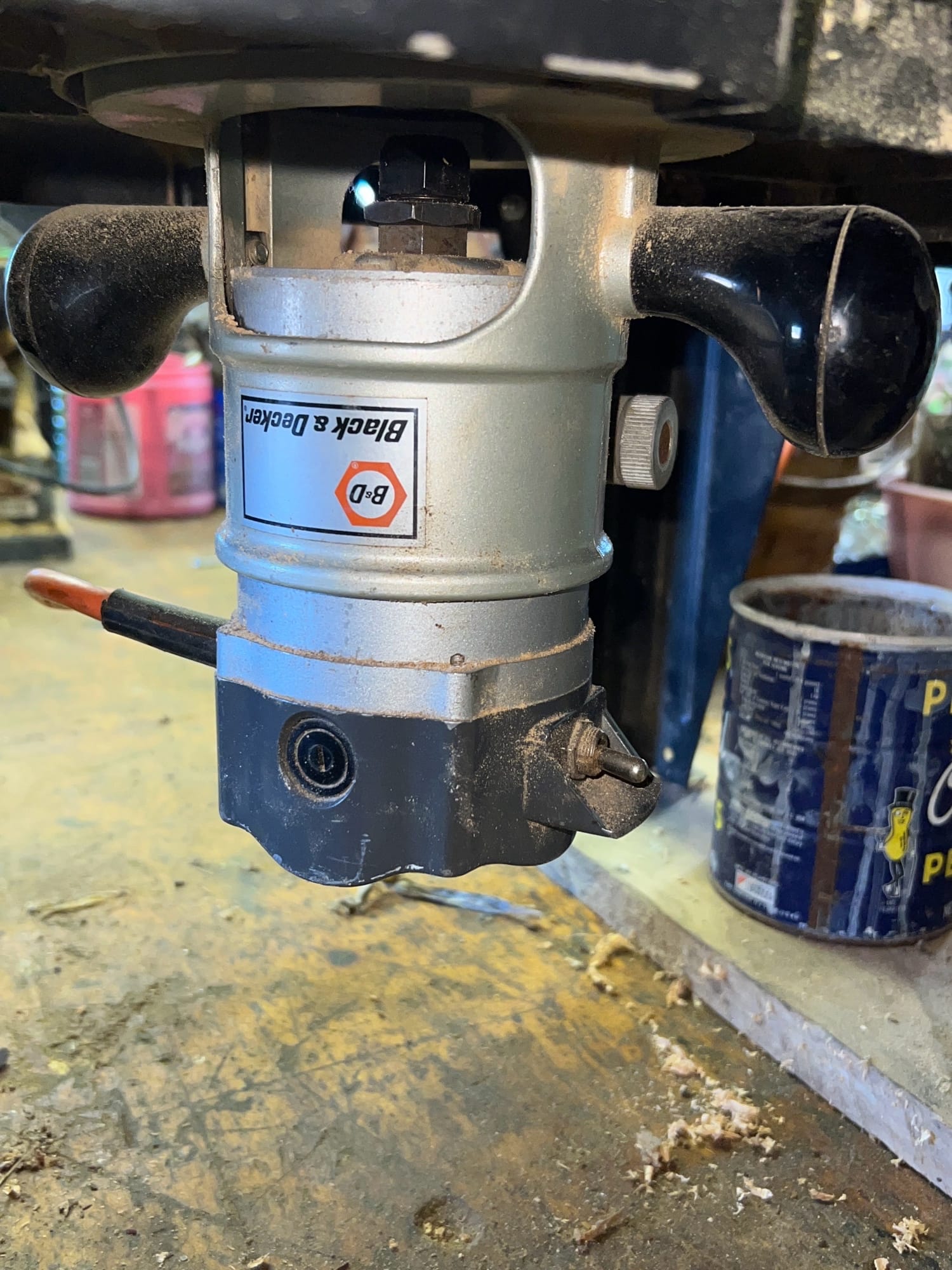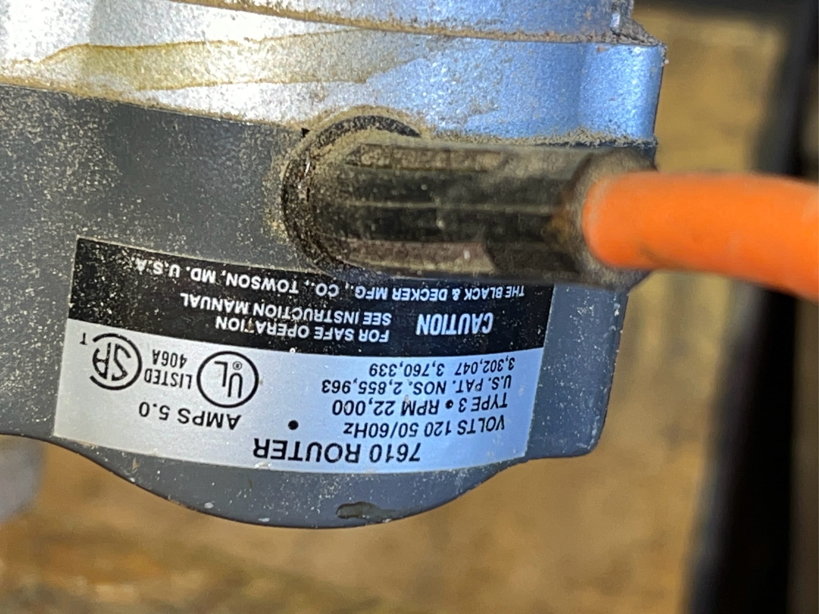 1086 Black & Decker 7610 Router with case & Table 34”x12”x13.25” & Router Bits