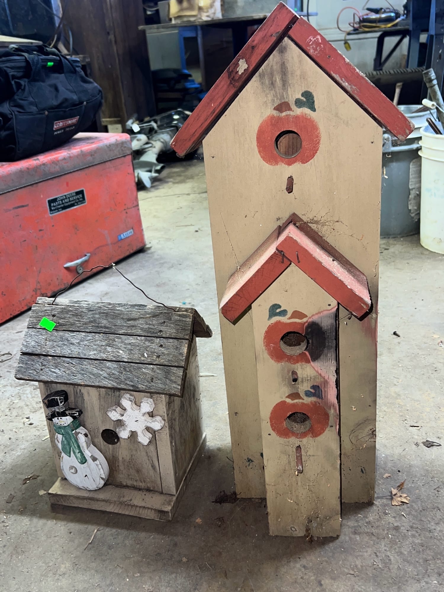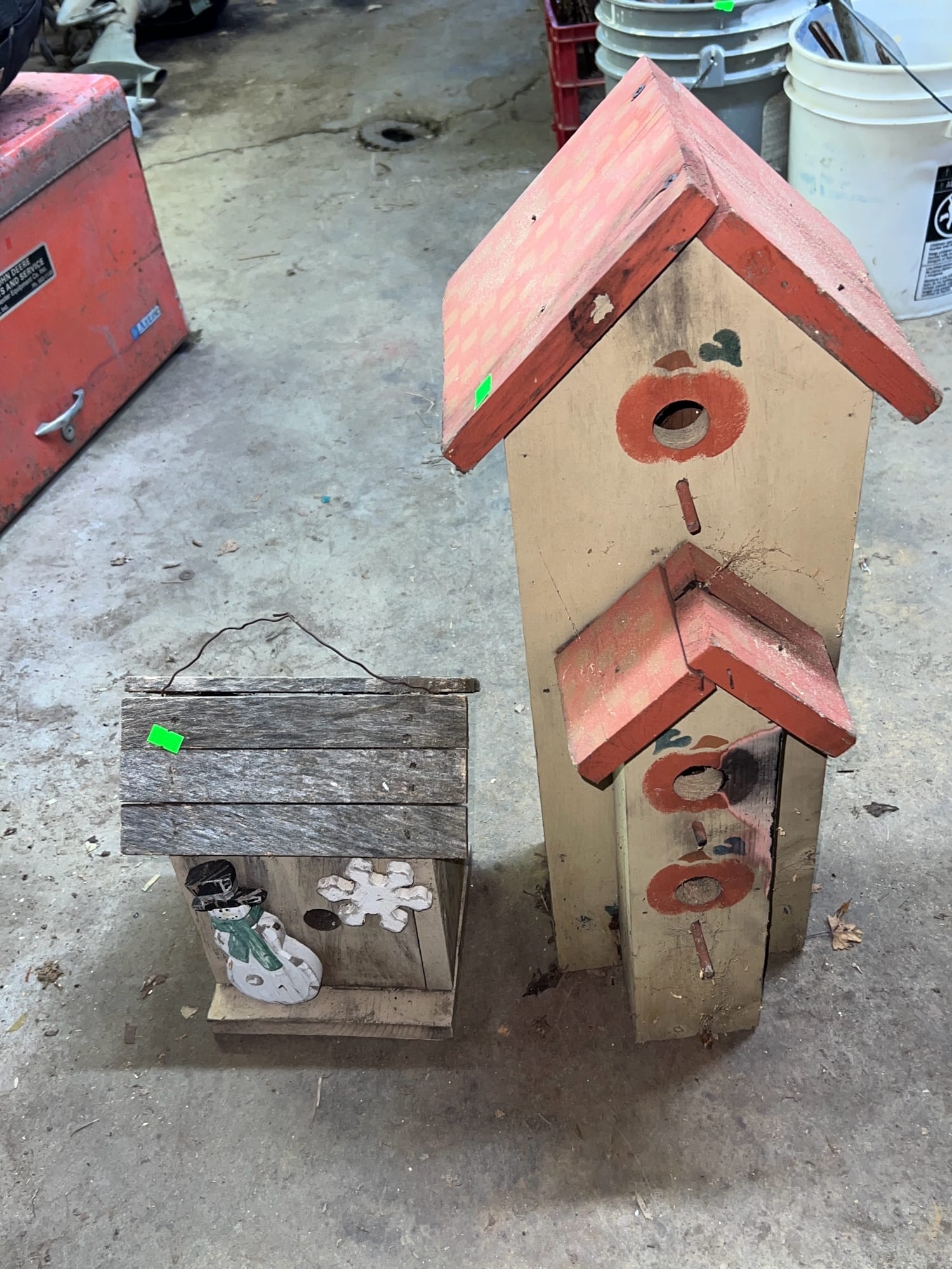 1087 Decorative Bird Houses 9”x10.75”x6.5”, 9.5”x23.75”x9”