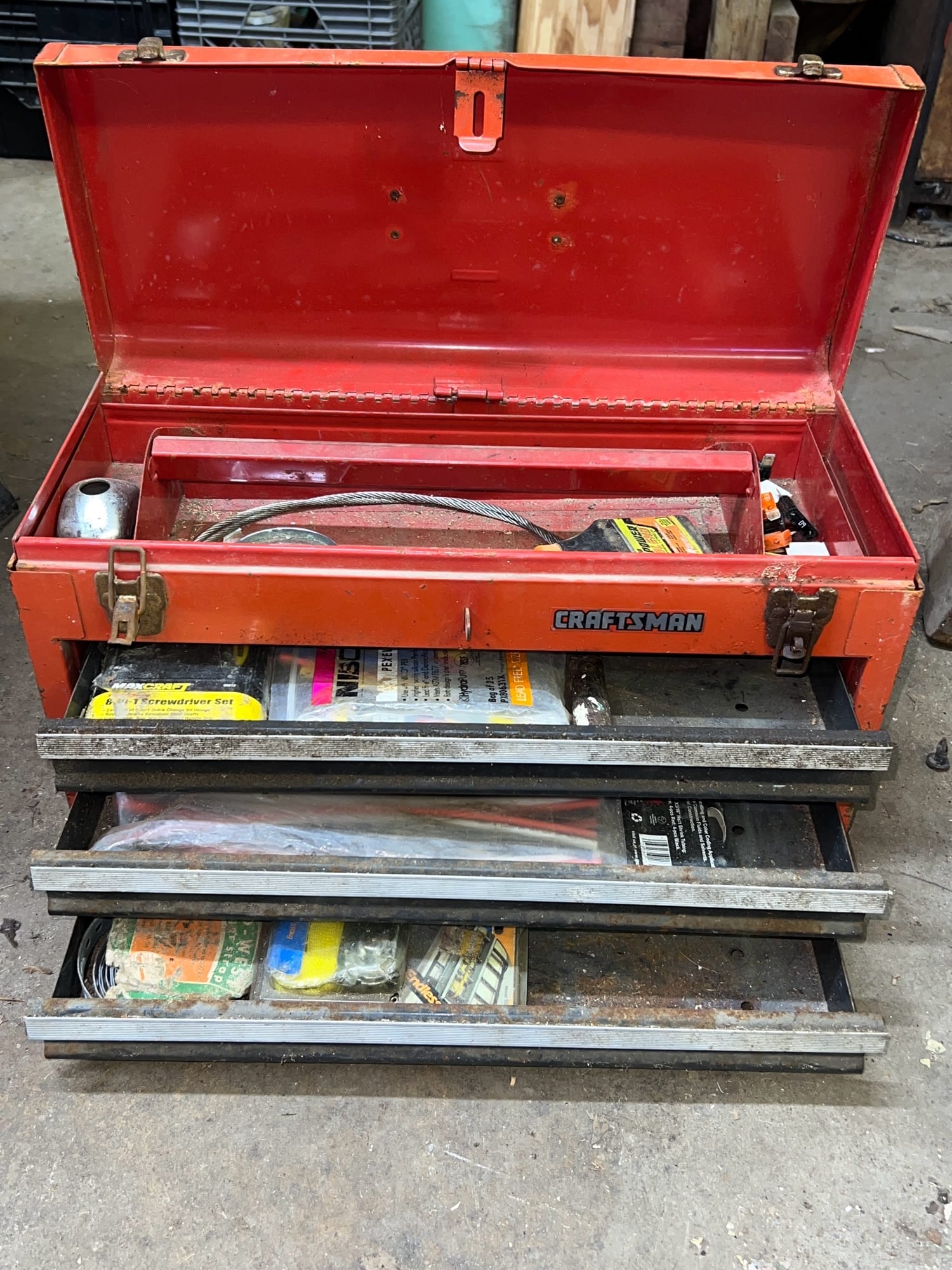 1093 Craftsman Metal Tool Box with Contents 20.5”x12”x8.5”
