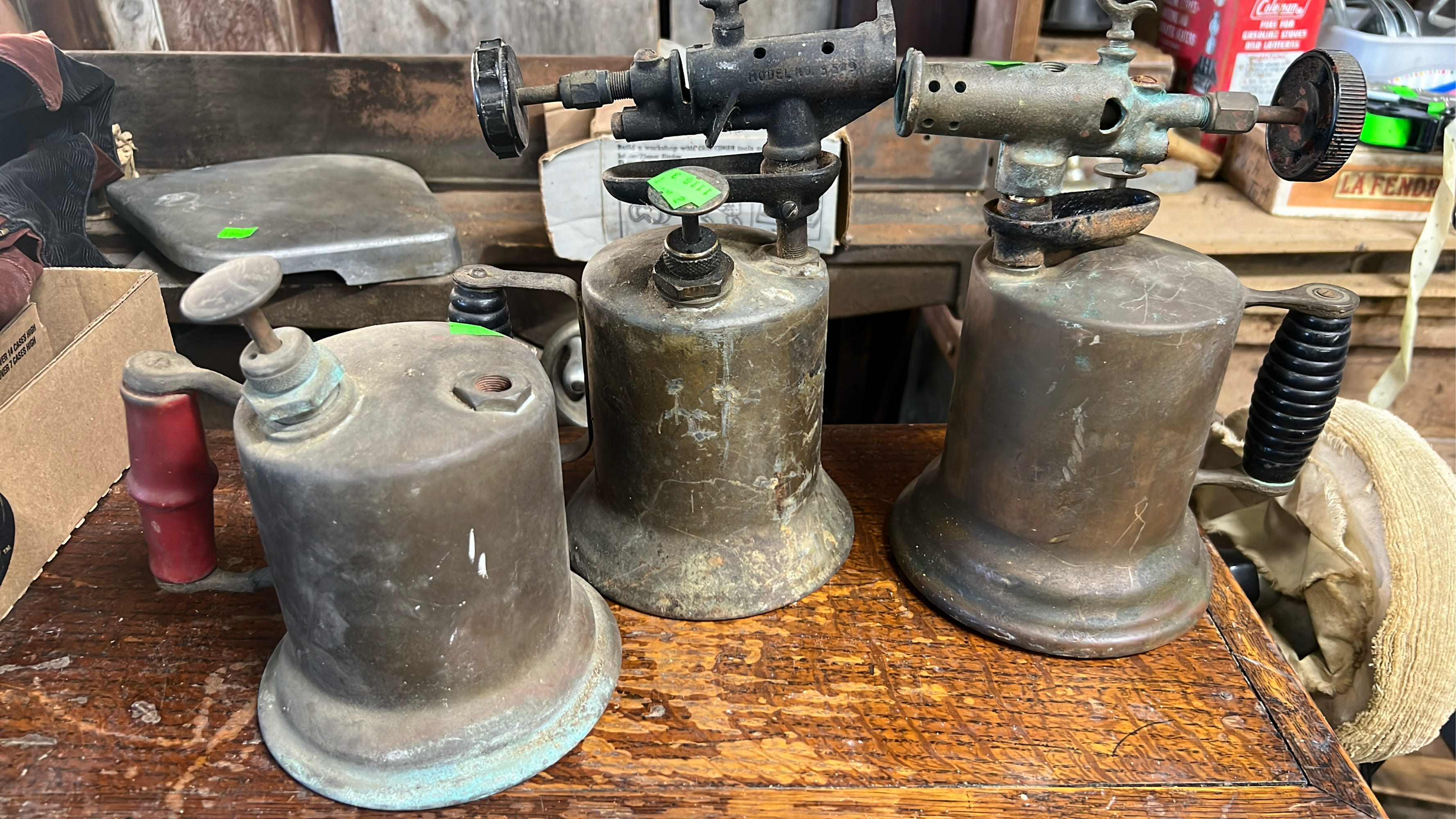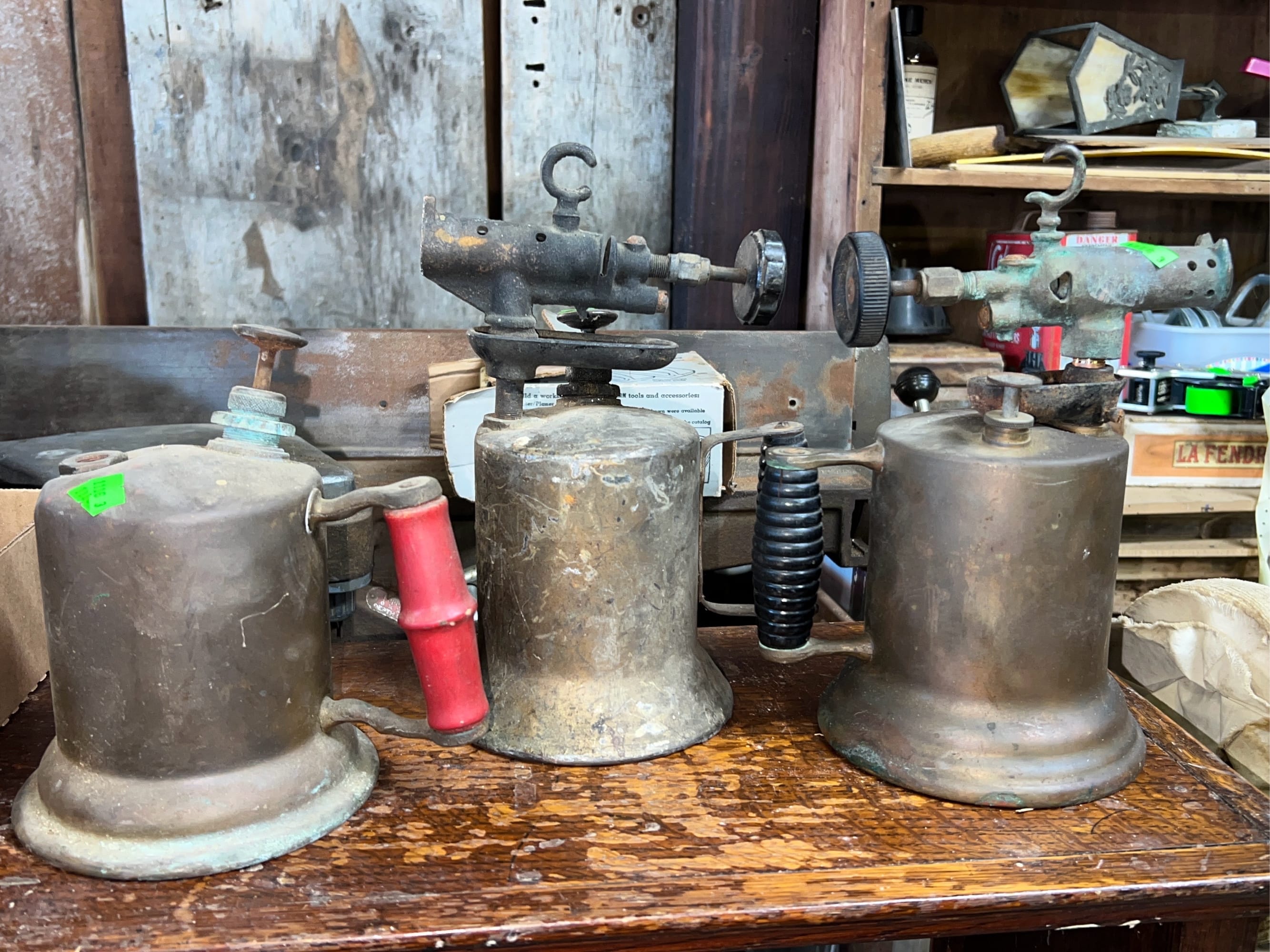 1116 Three Copper Torches - 7” not complete, 9” & Torch Model 5549 11”