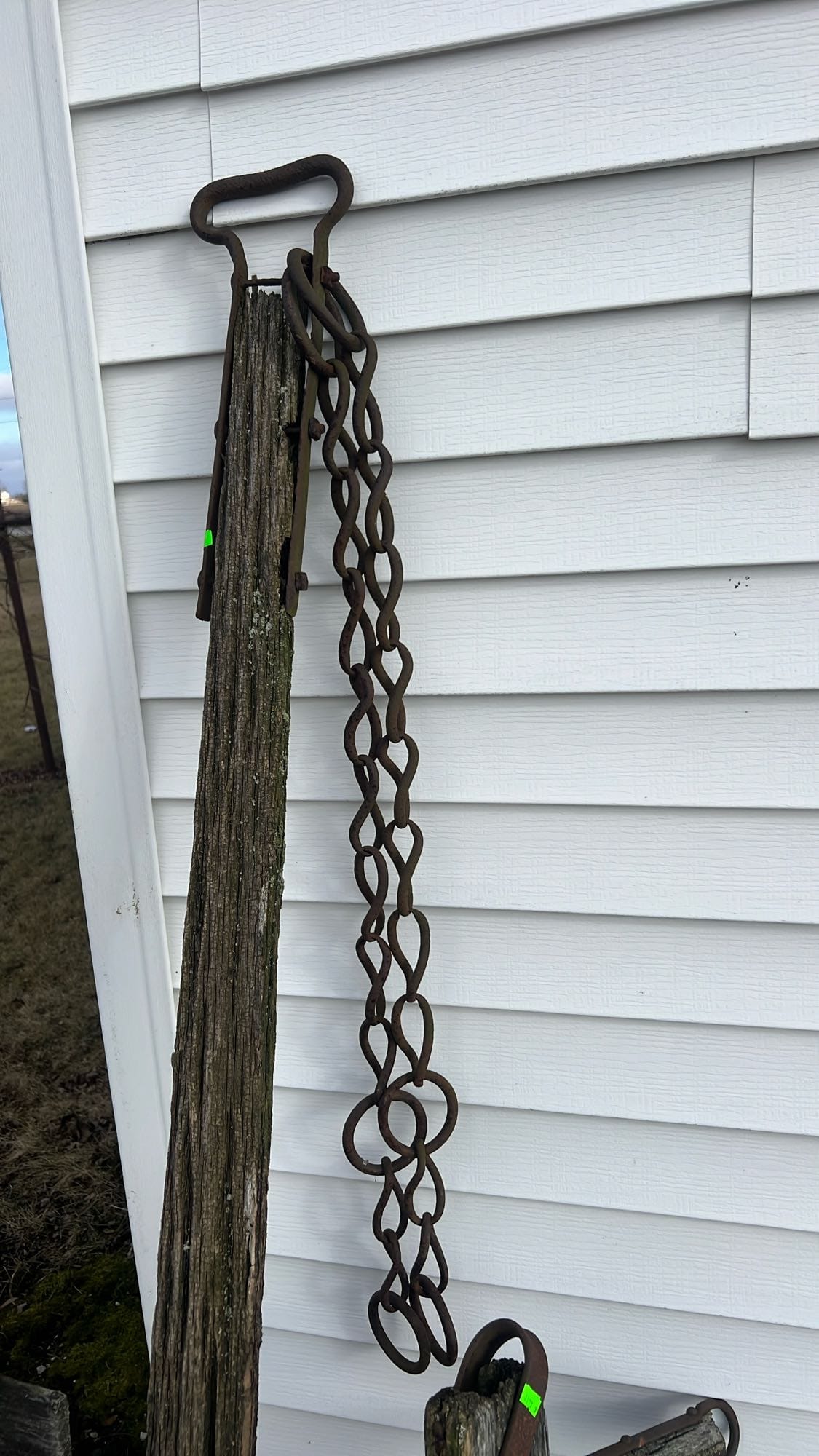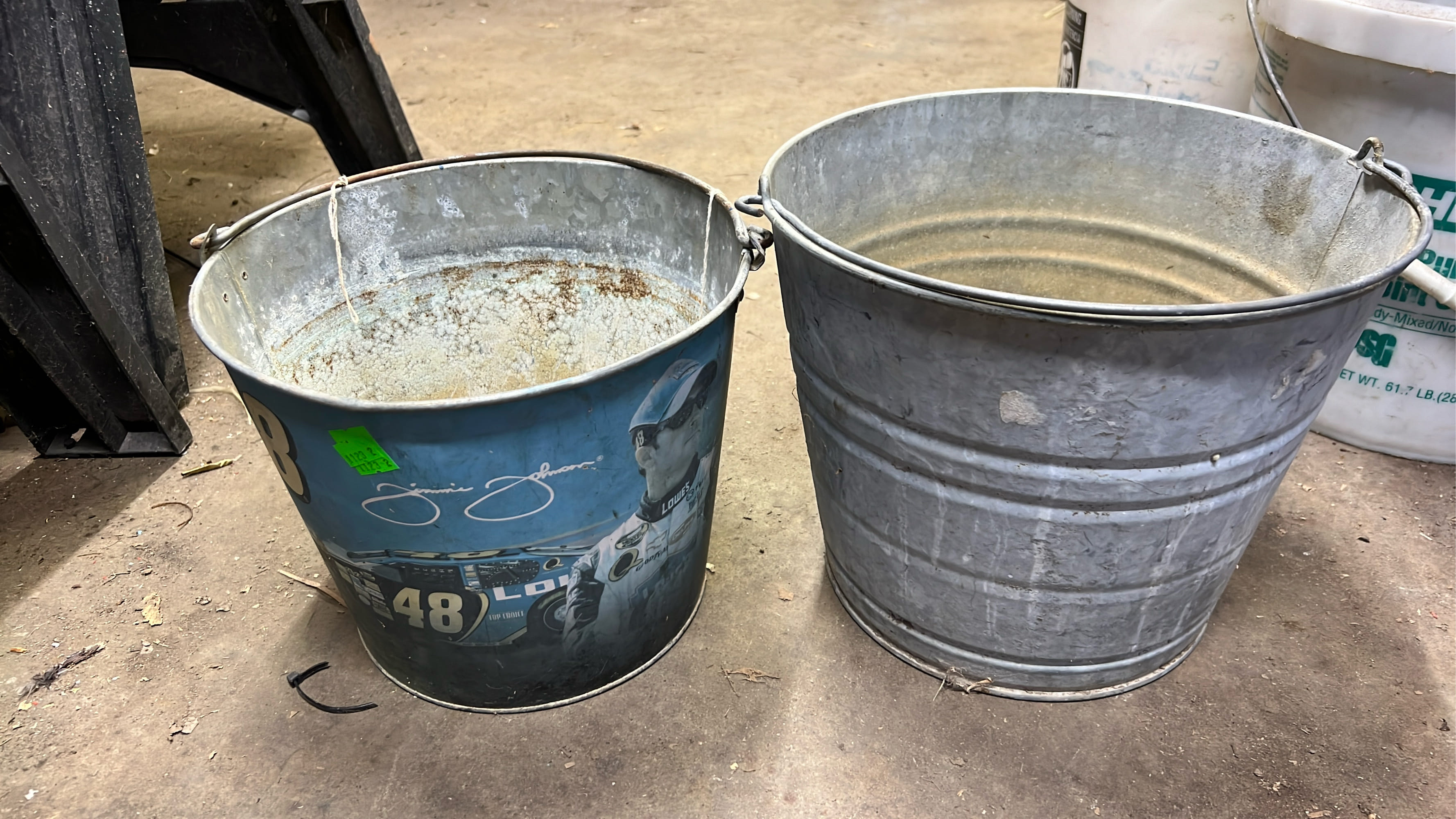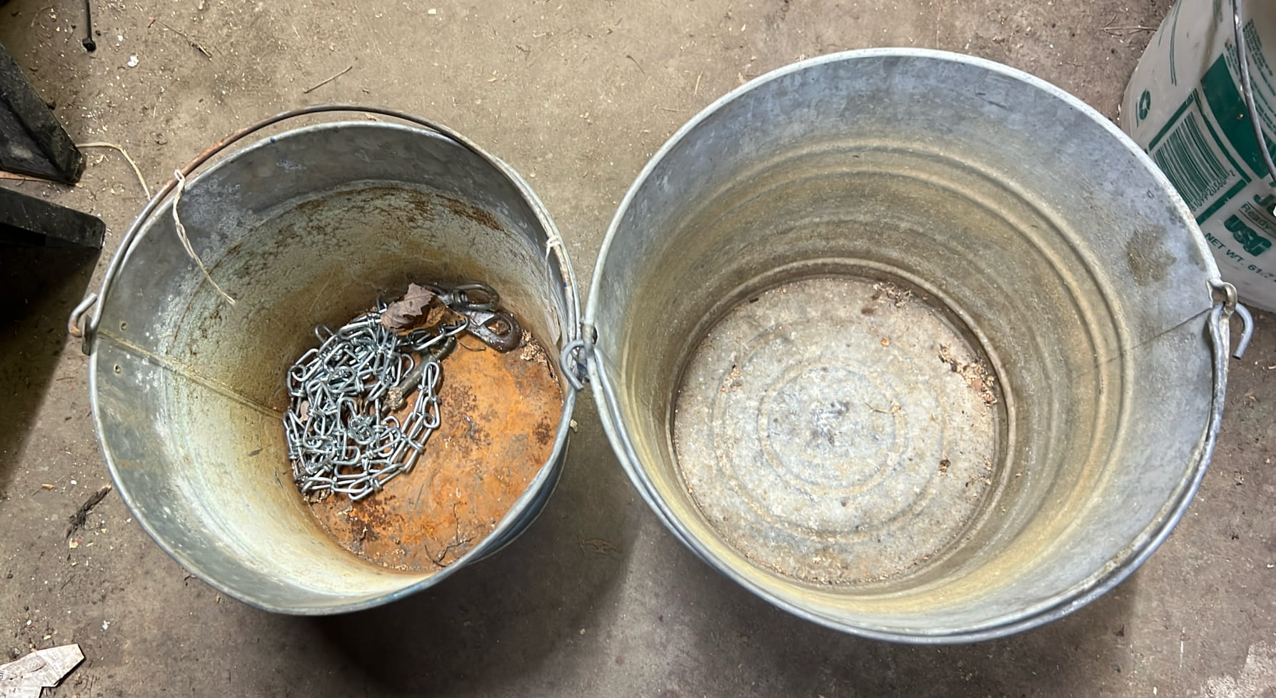 1123 Two Galvenized Buckets with Chain 10.5”, 11.5”