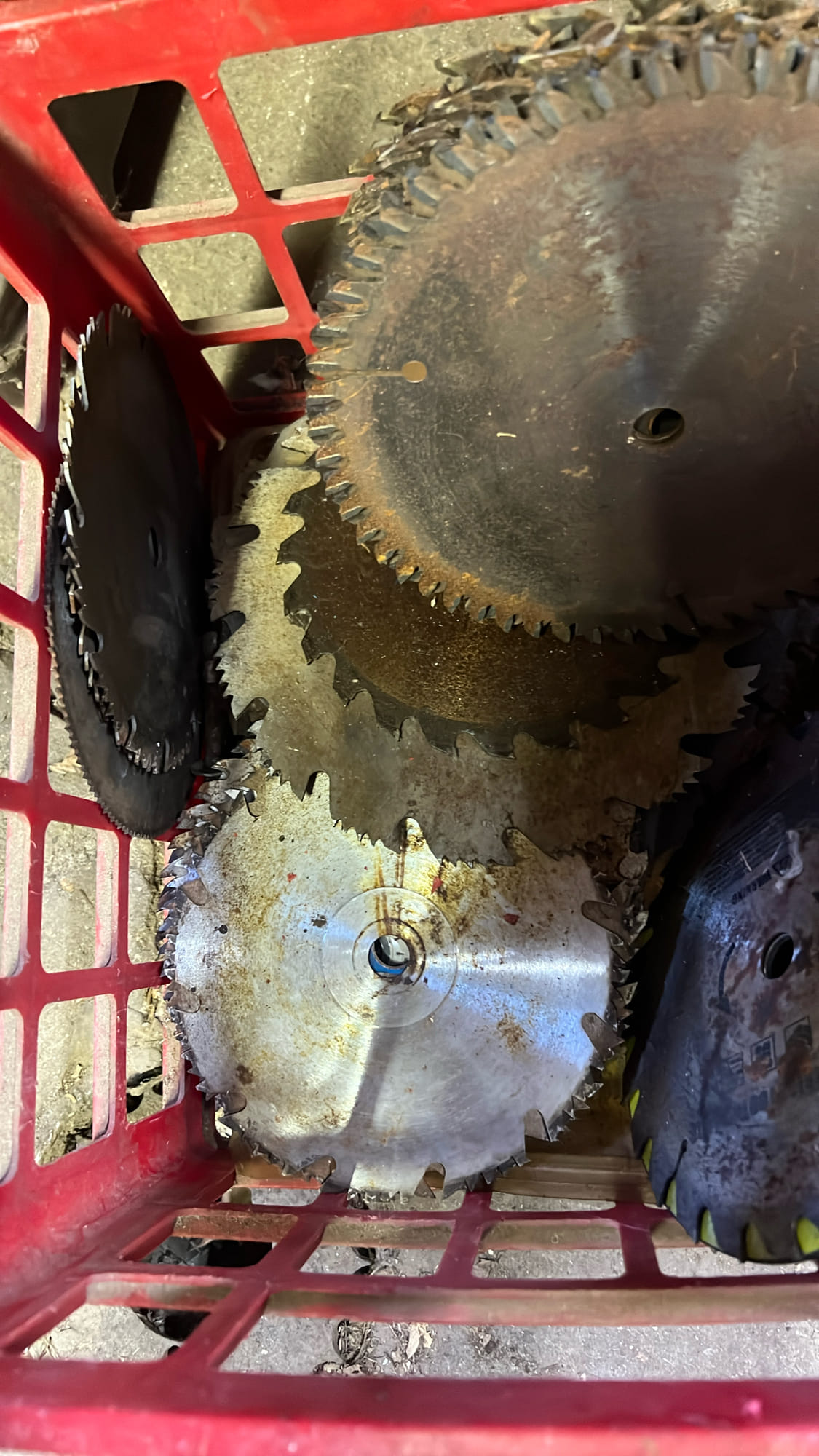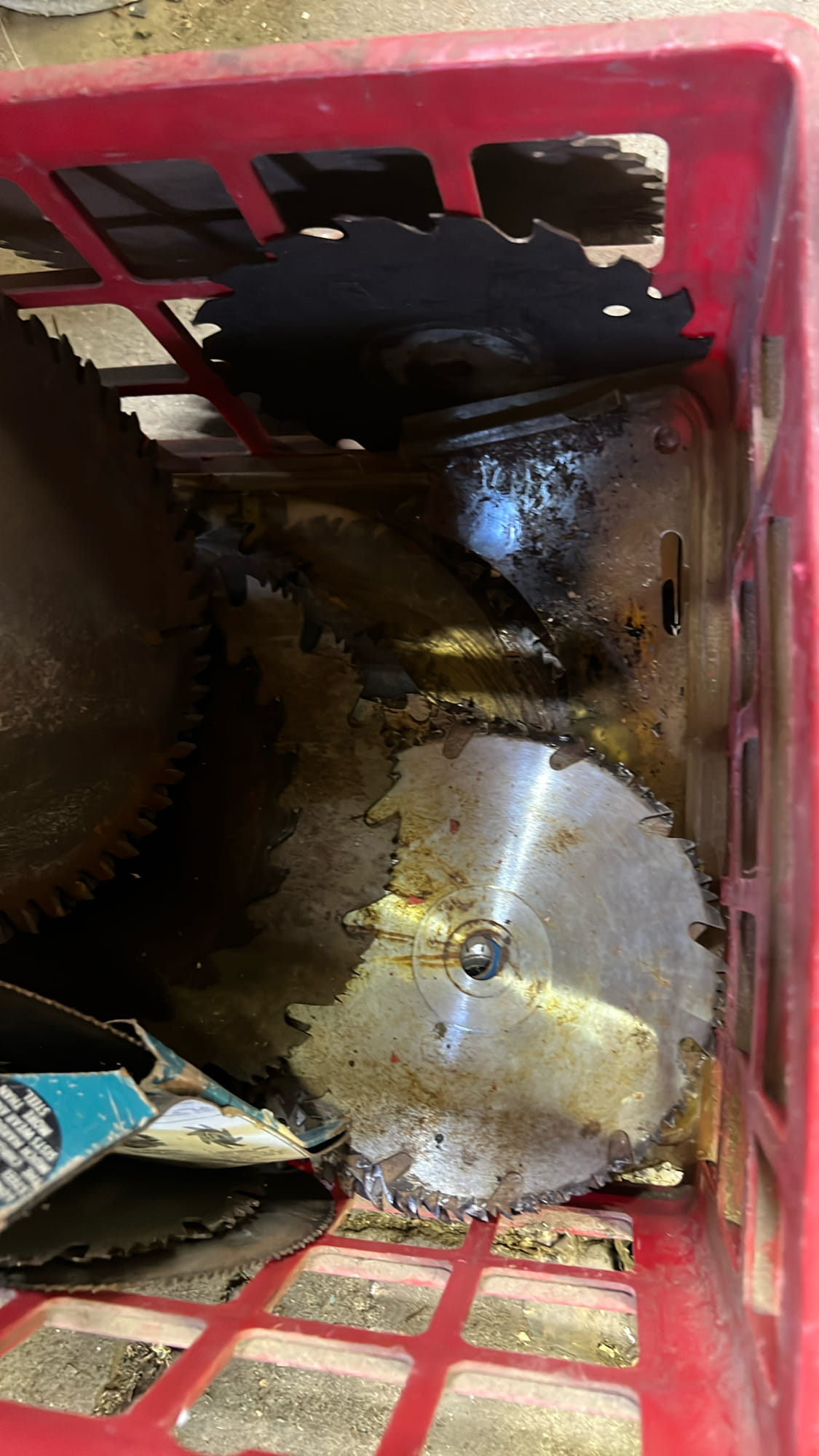 1125 Saw Blade assortment 6.5”, 8”, 10” in Plastic Milk Crate 13”x10”x14”