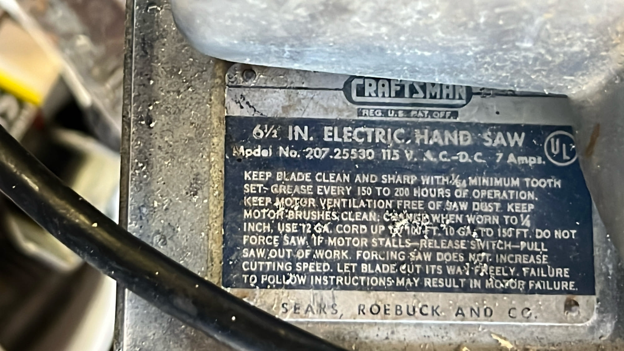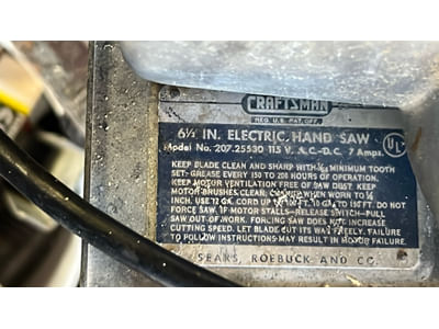 1134 Craftsman 6.5” Electric Hand Saw in original metal case
