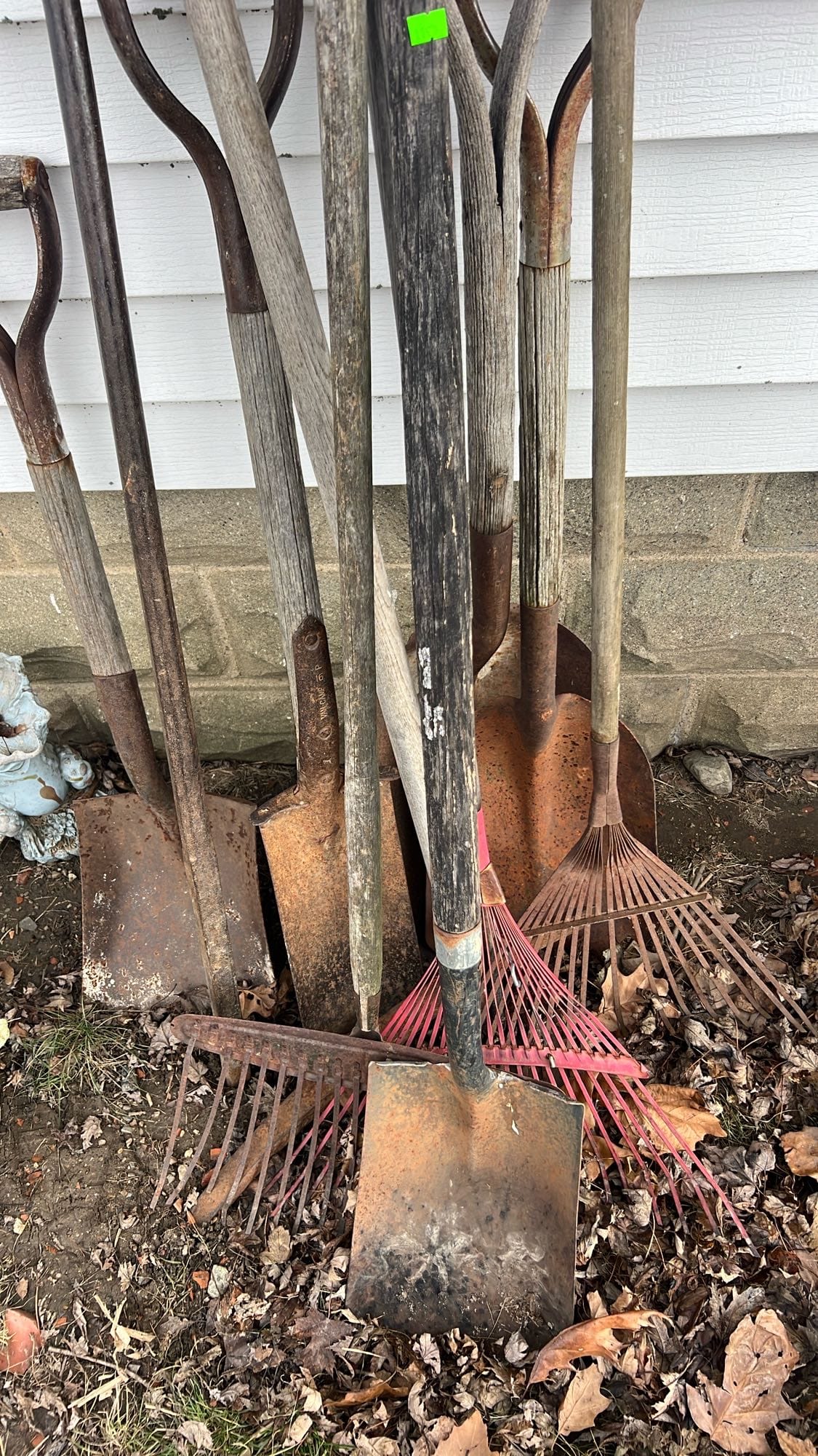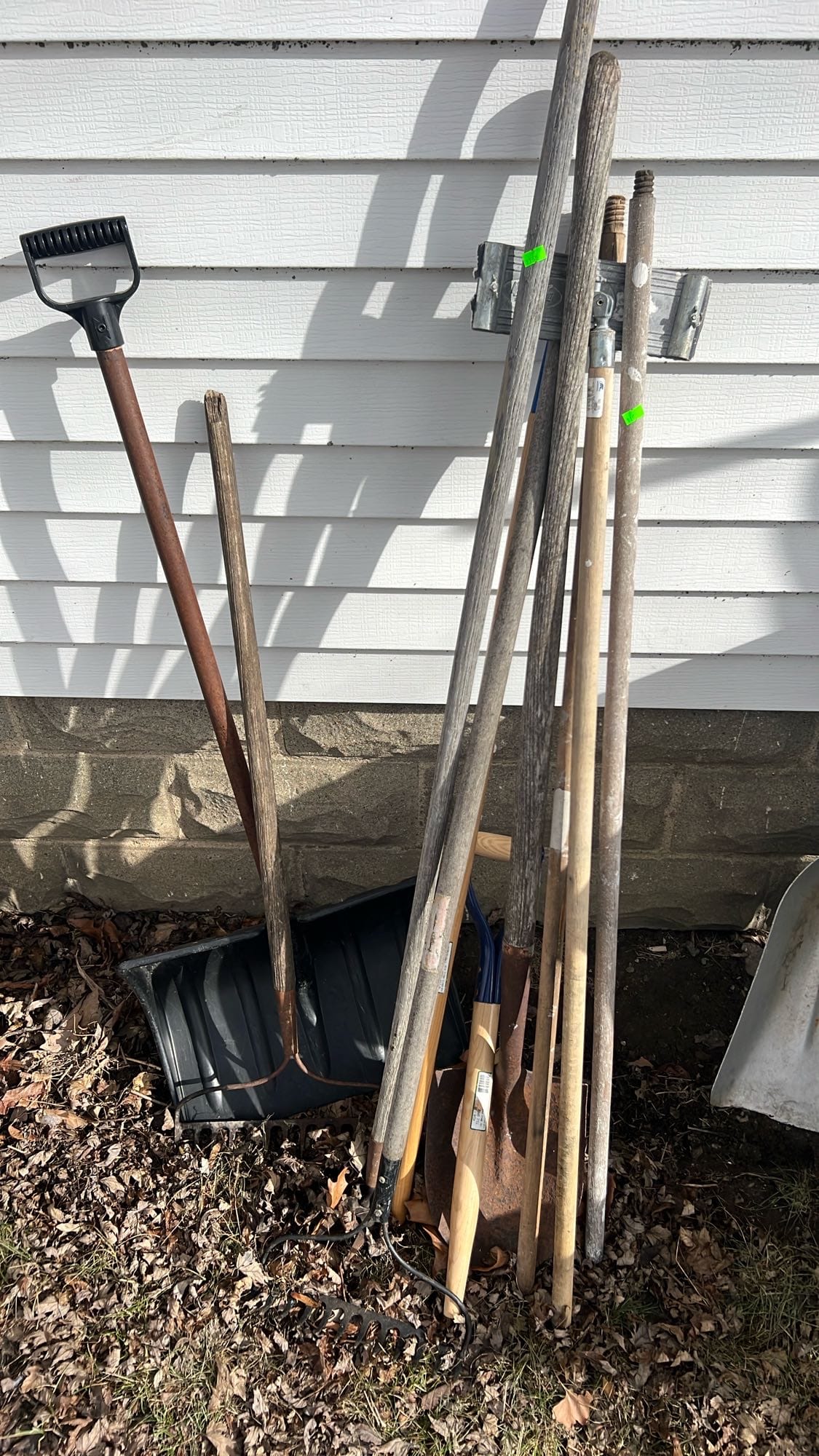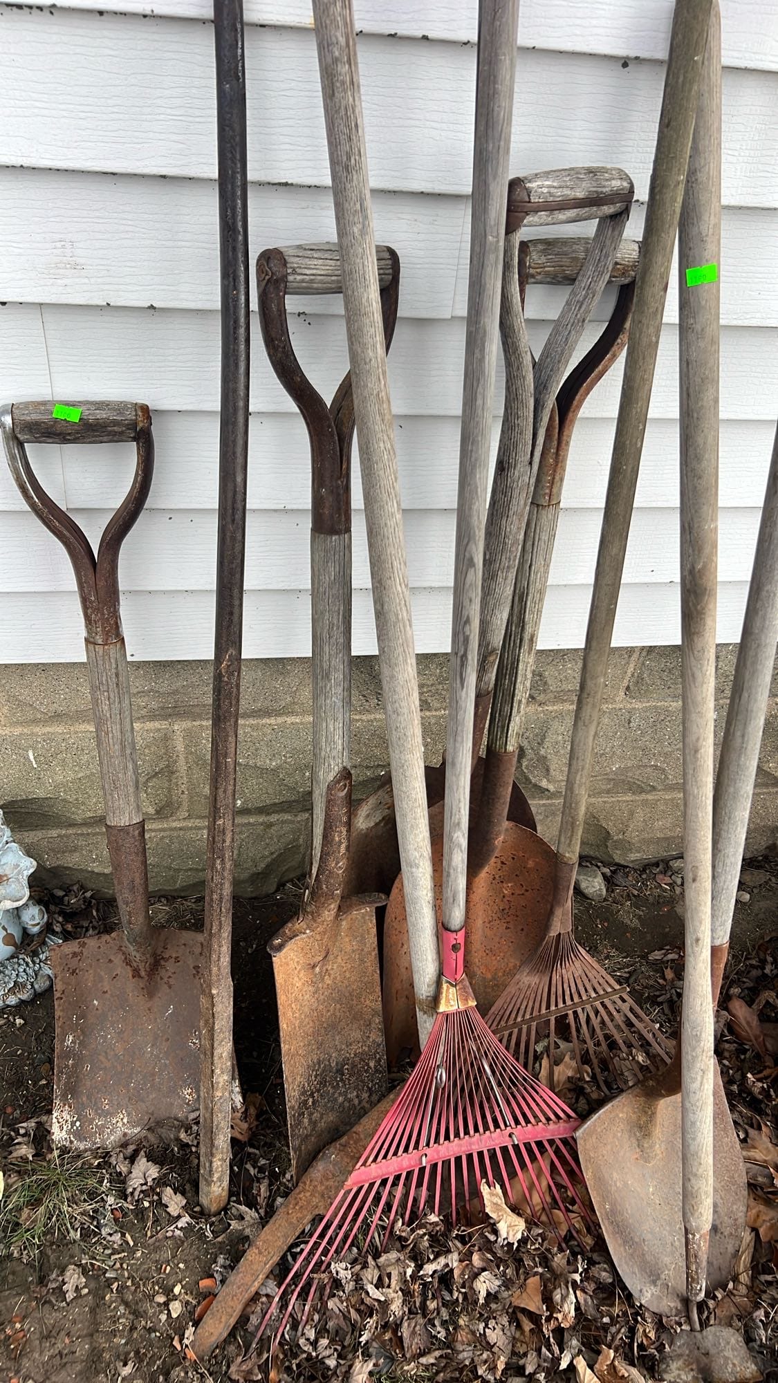 1158 Snow shovel, shovel handles, rakes, miscellaneous