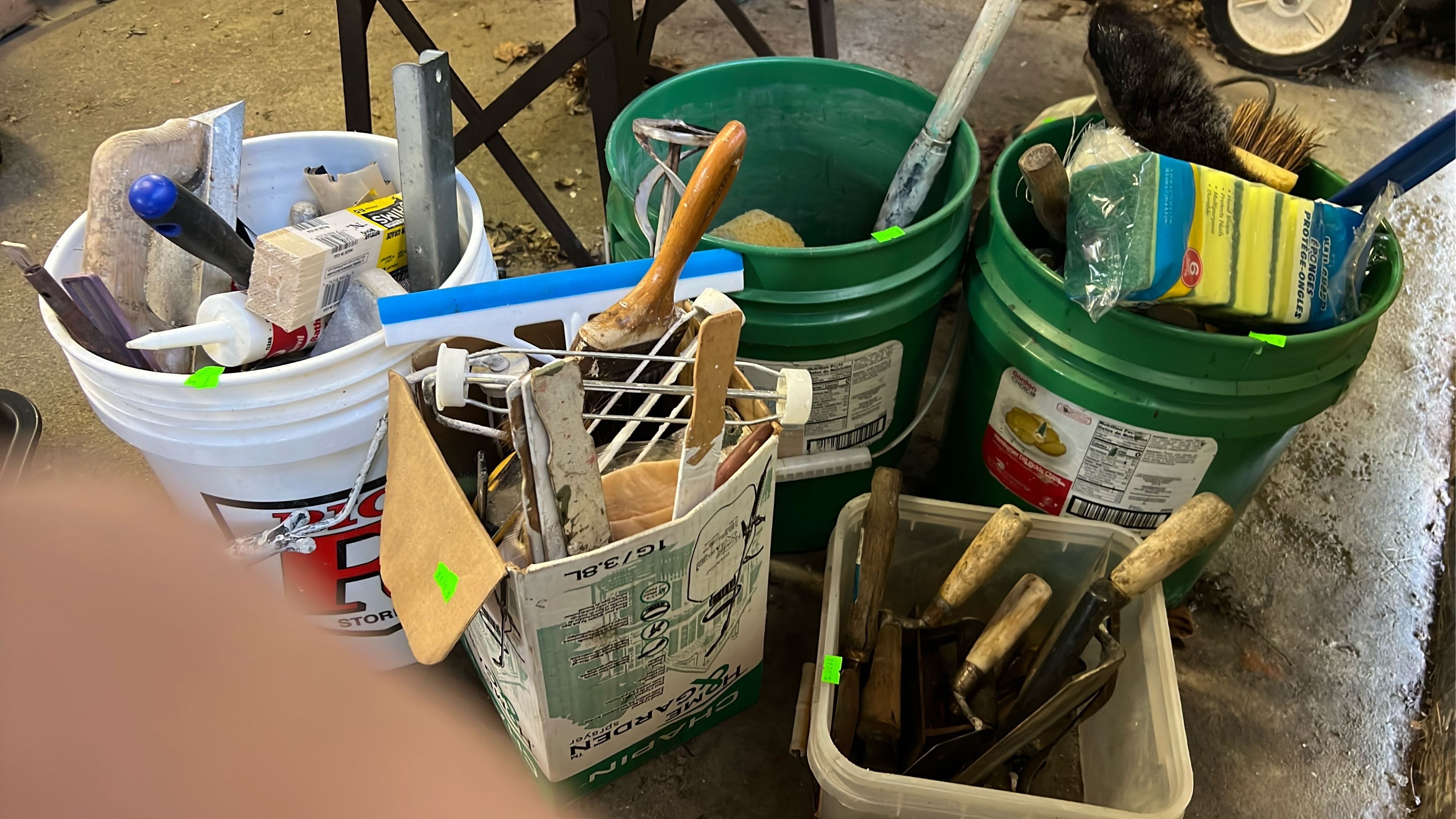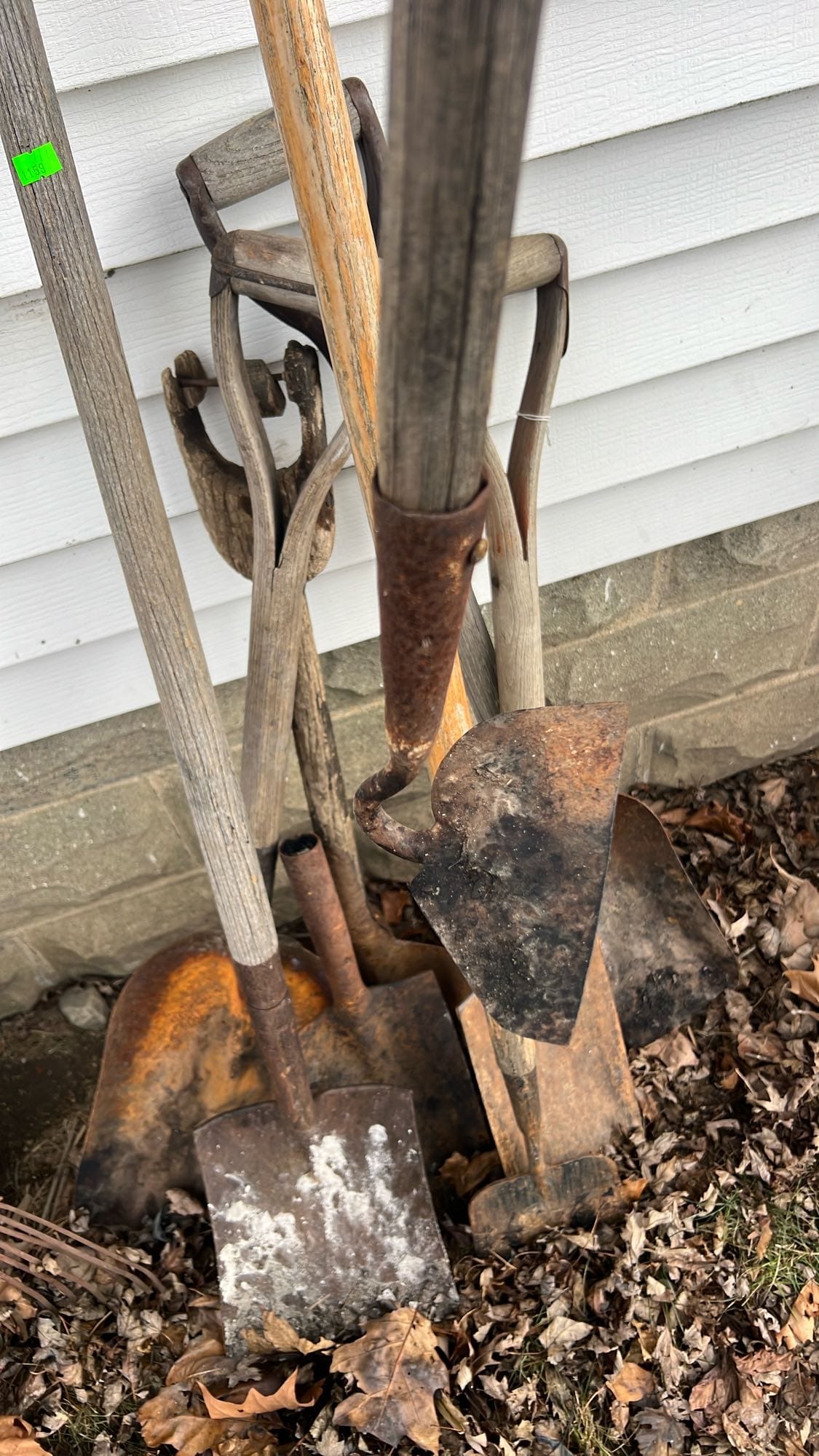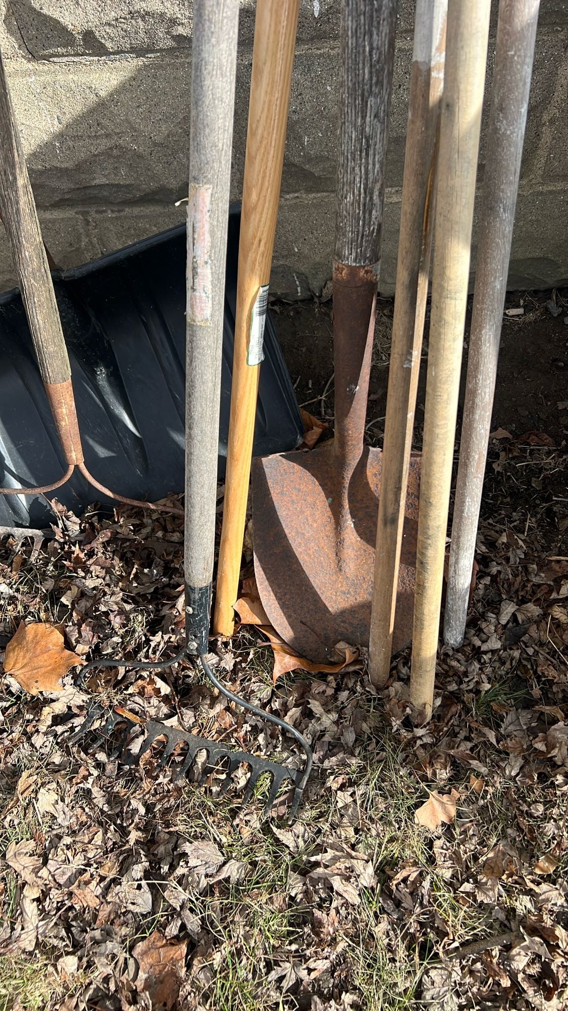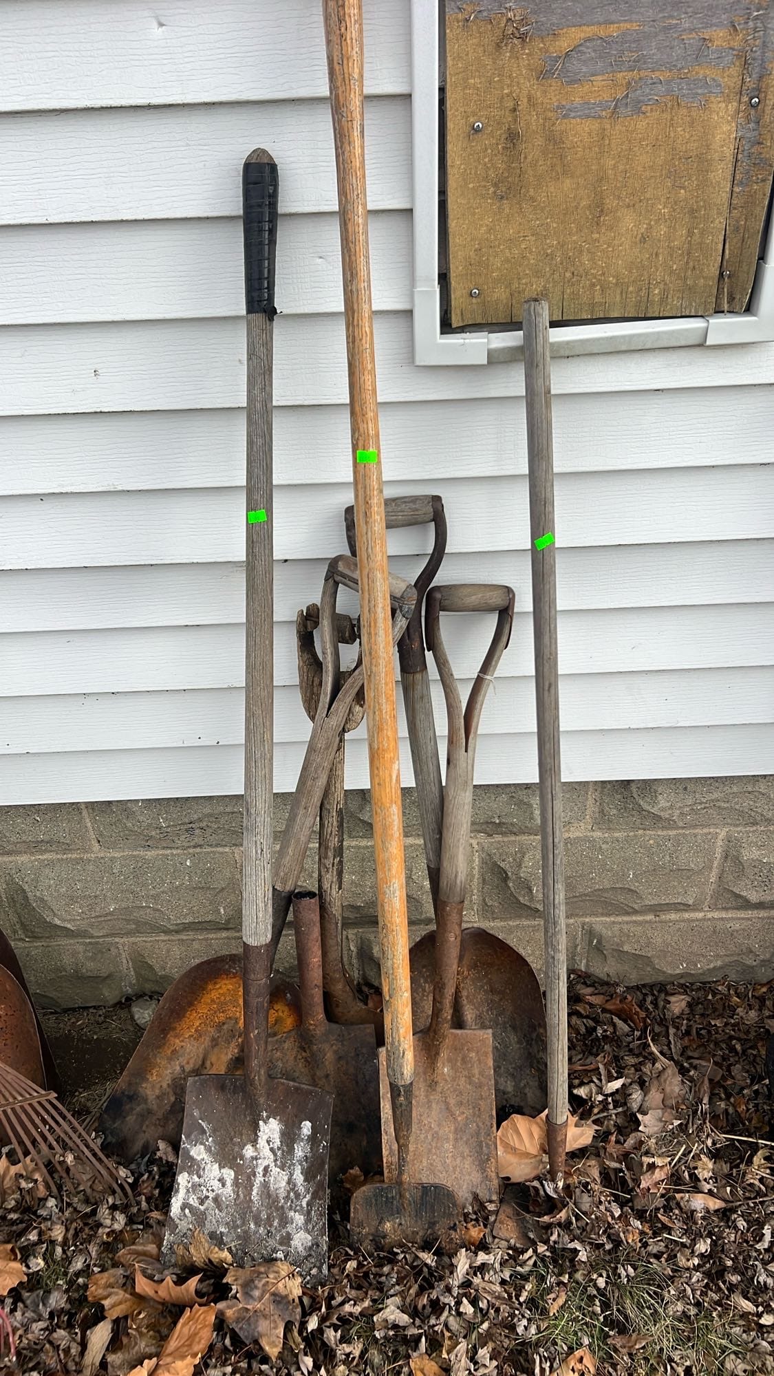 1158 Snow shovel, shovel handles, rakes, miscellaneous