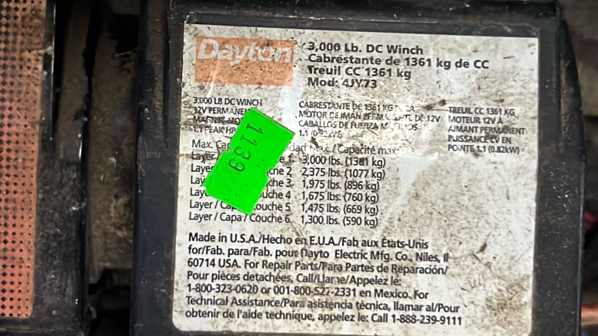 1139 Dayton 3000lbs DC winch with remote, no cable, works
