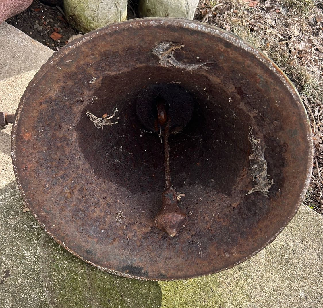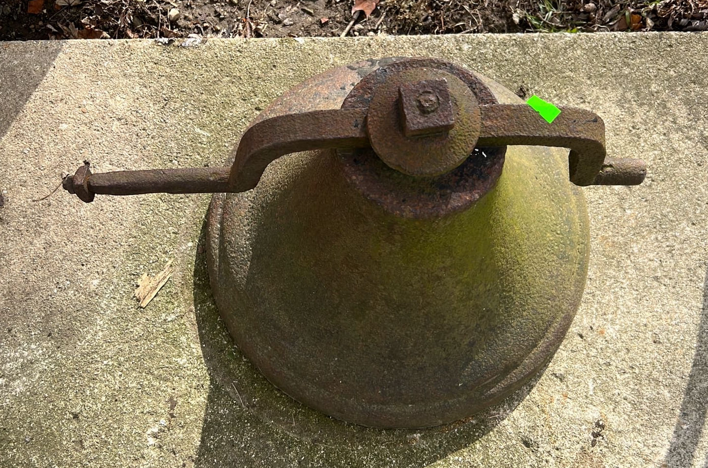 1162 Cast Iron Dinner bell, has clanker 16”x13”
