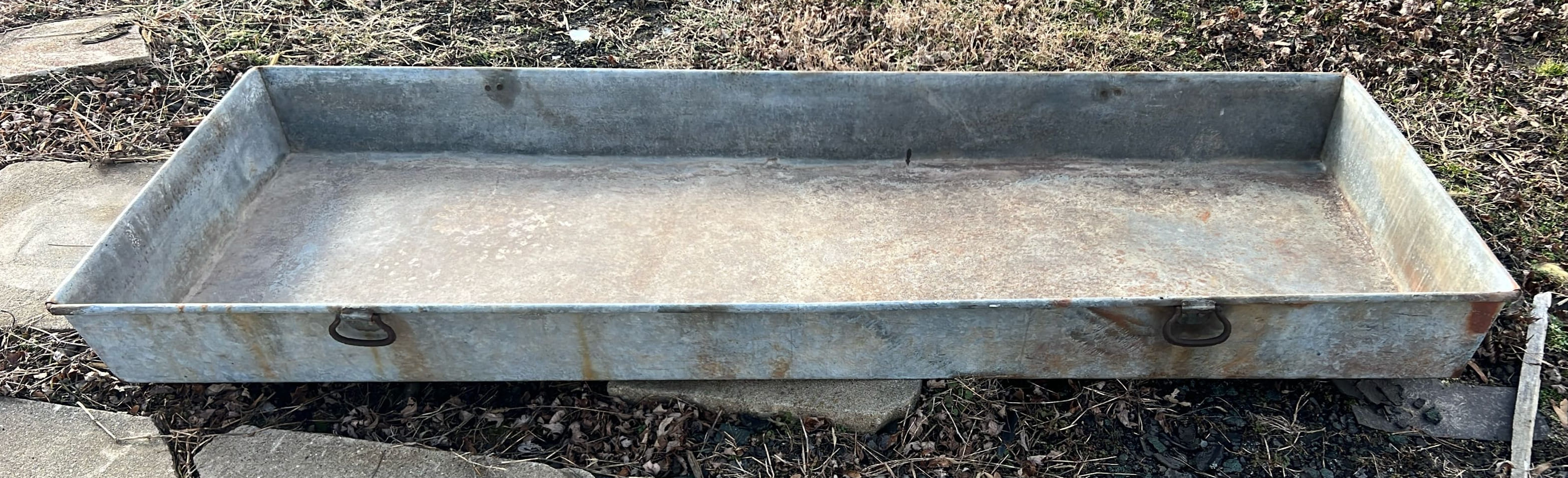 1168 Vintage Large Galvanized Syrup pan, 31”x83.5”x 7”