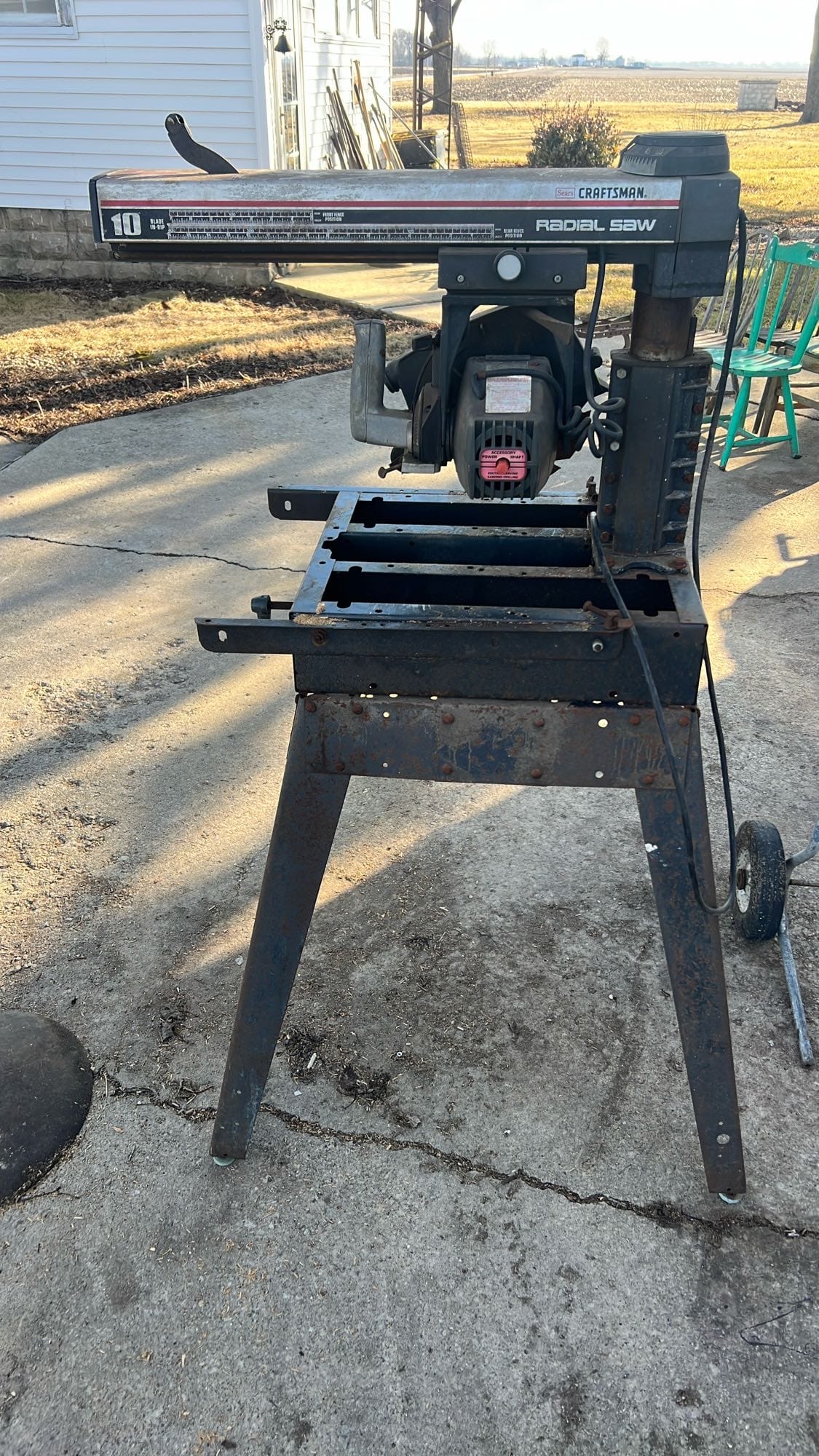 1183 Craftsman 10” Radial Arm Saw, needs new table, runs