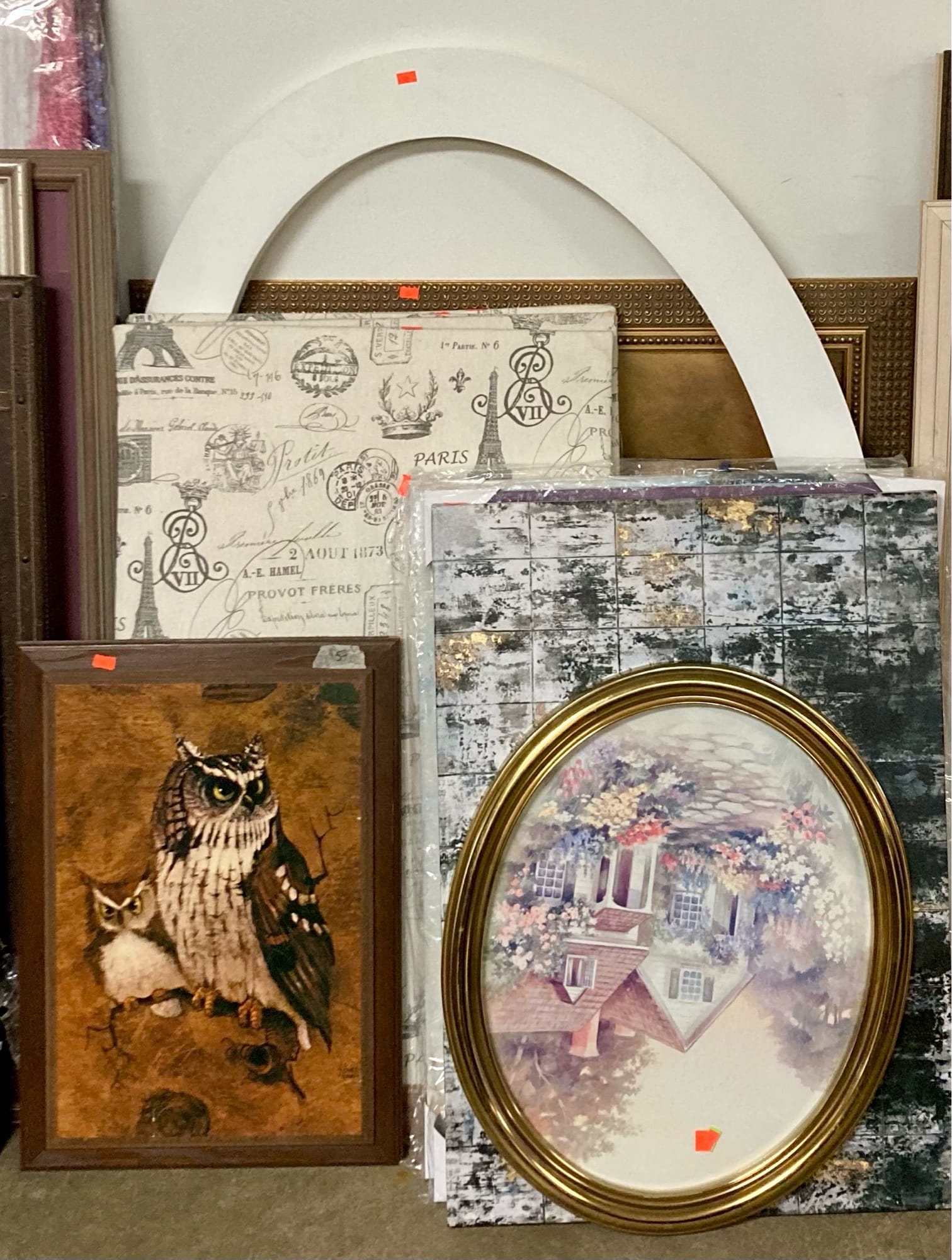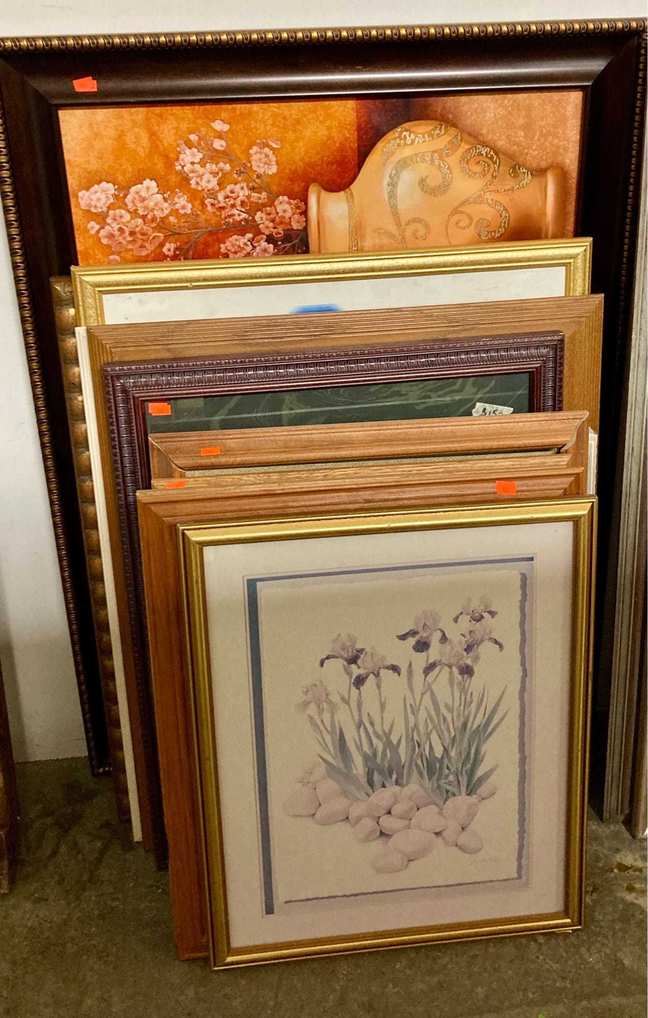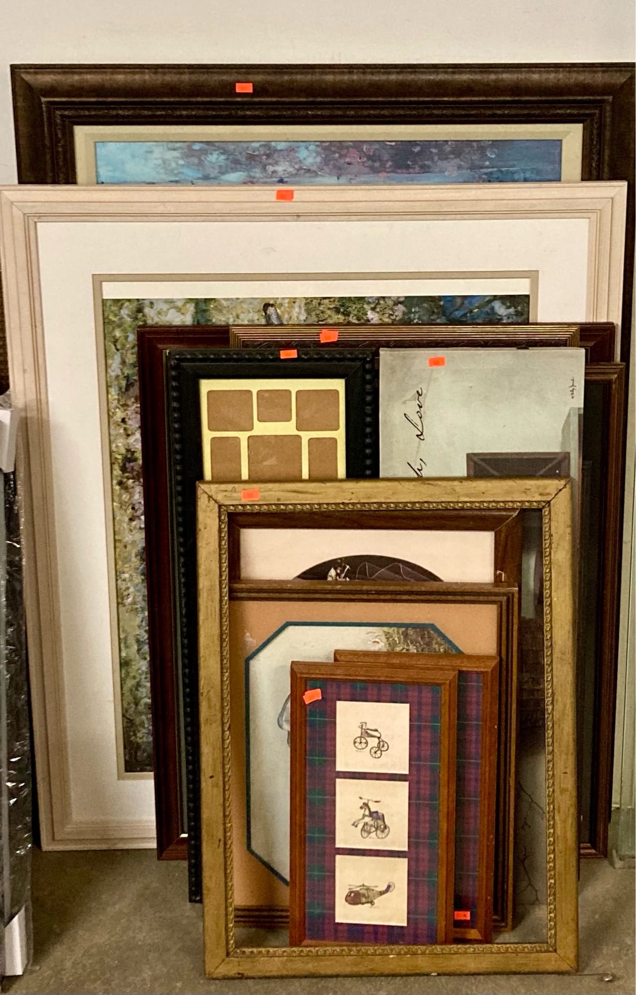 128 11 Framed Pictures, Picture Frames and Mirror Assortment, various sizes