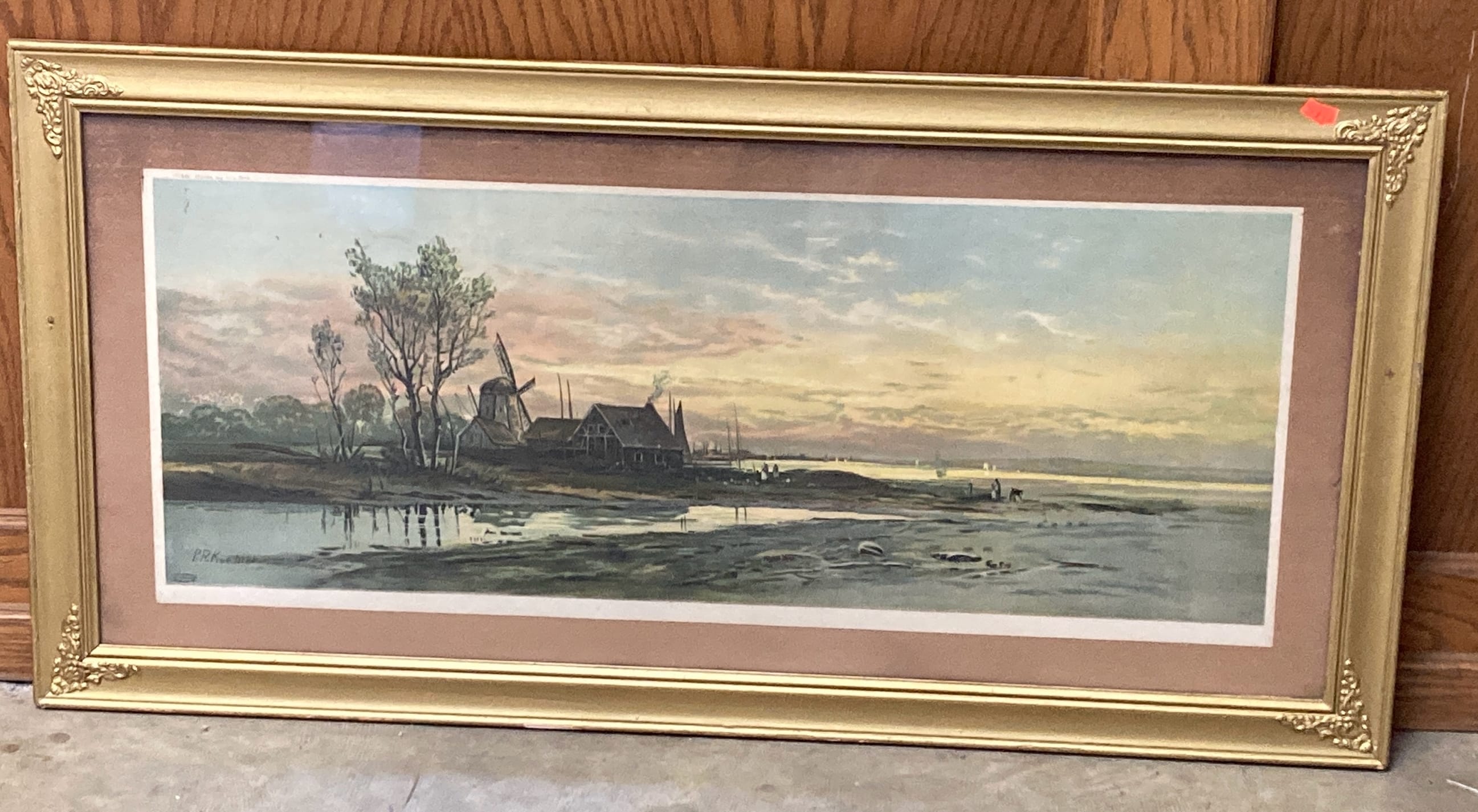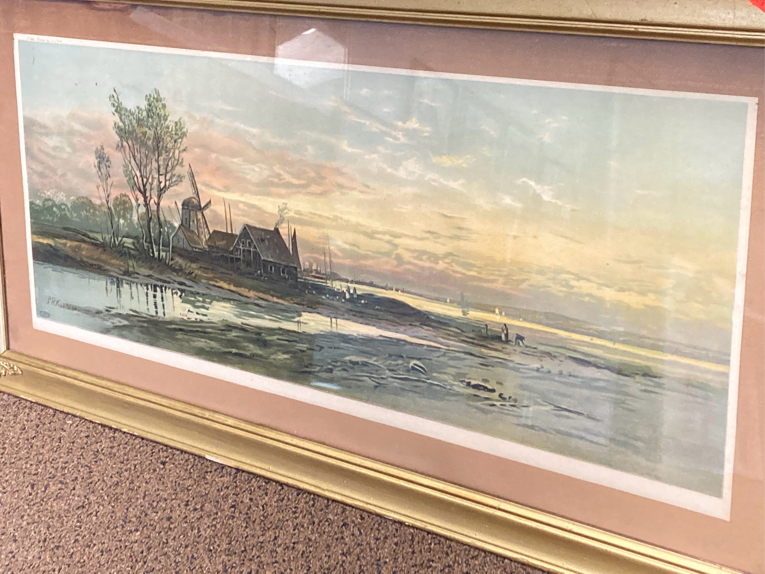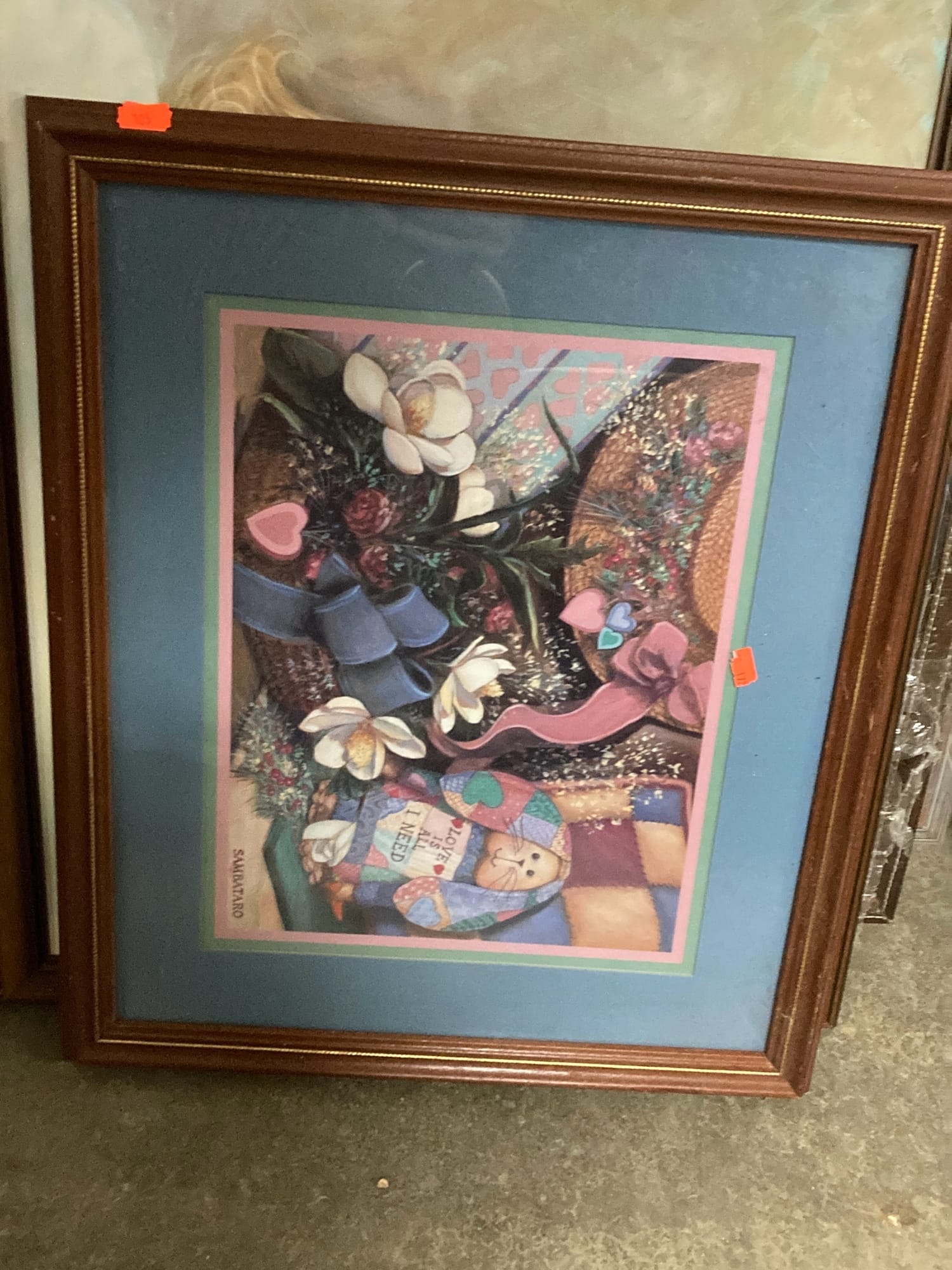 2412 3 framed decorative prints, one is artist signed - largest is 27" L