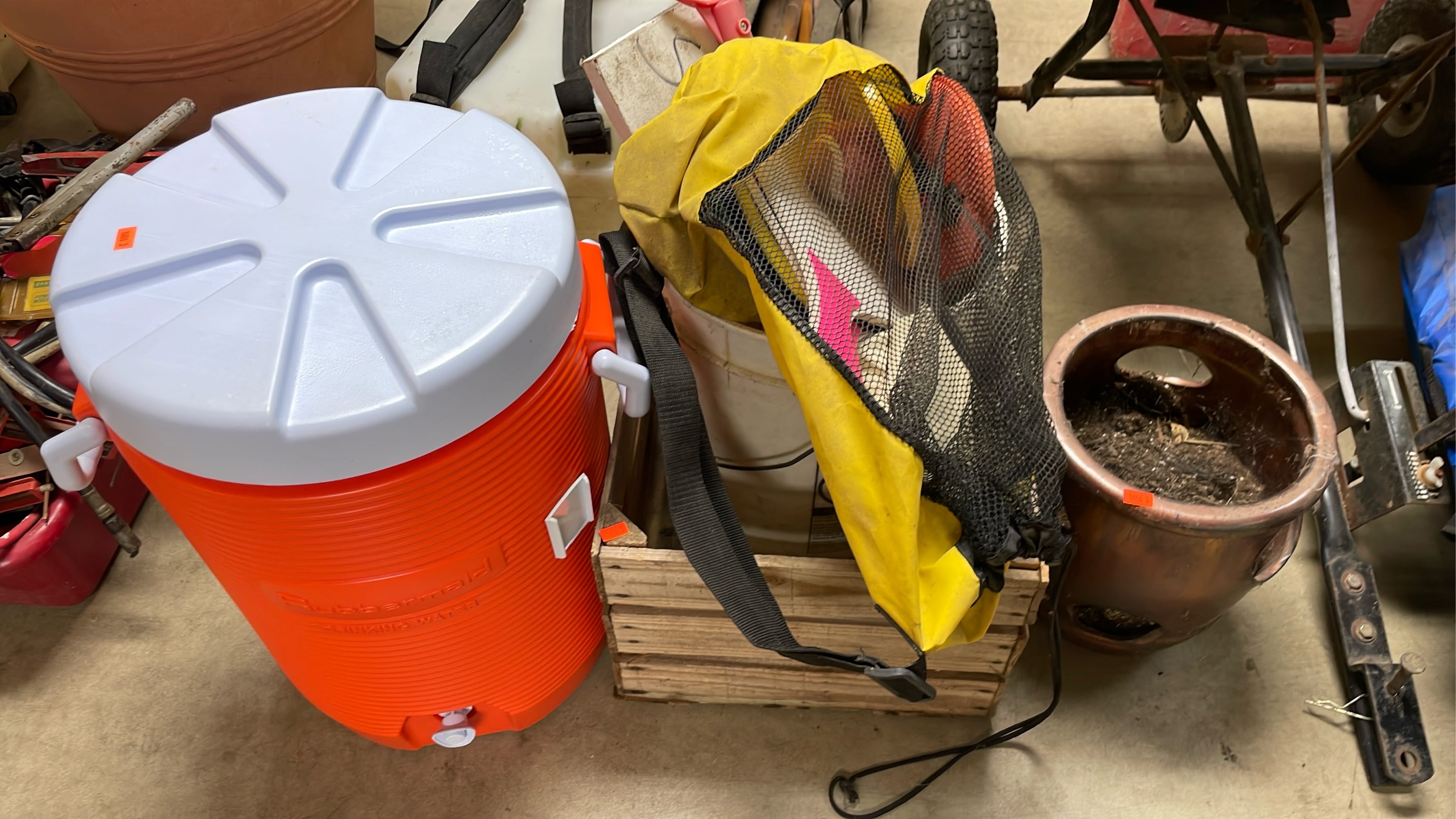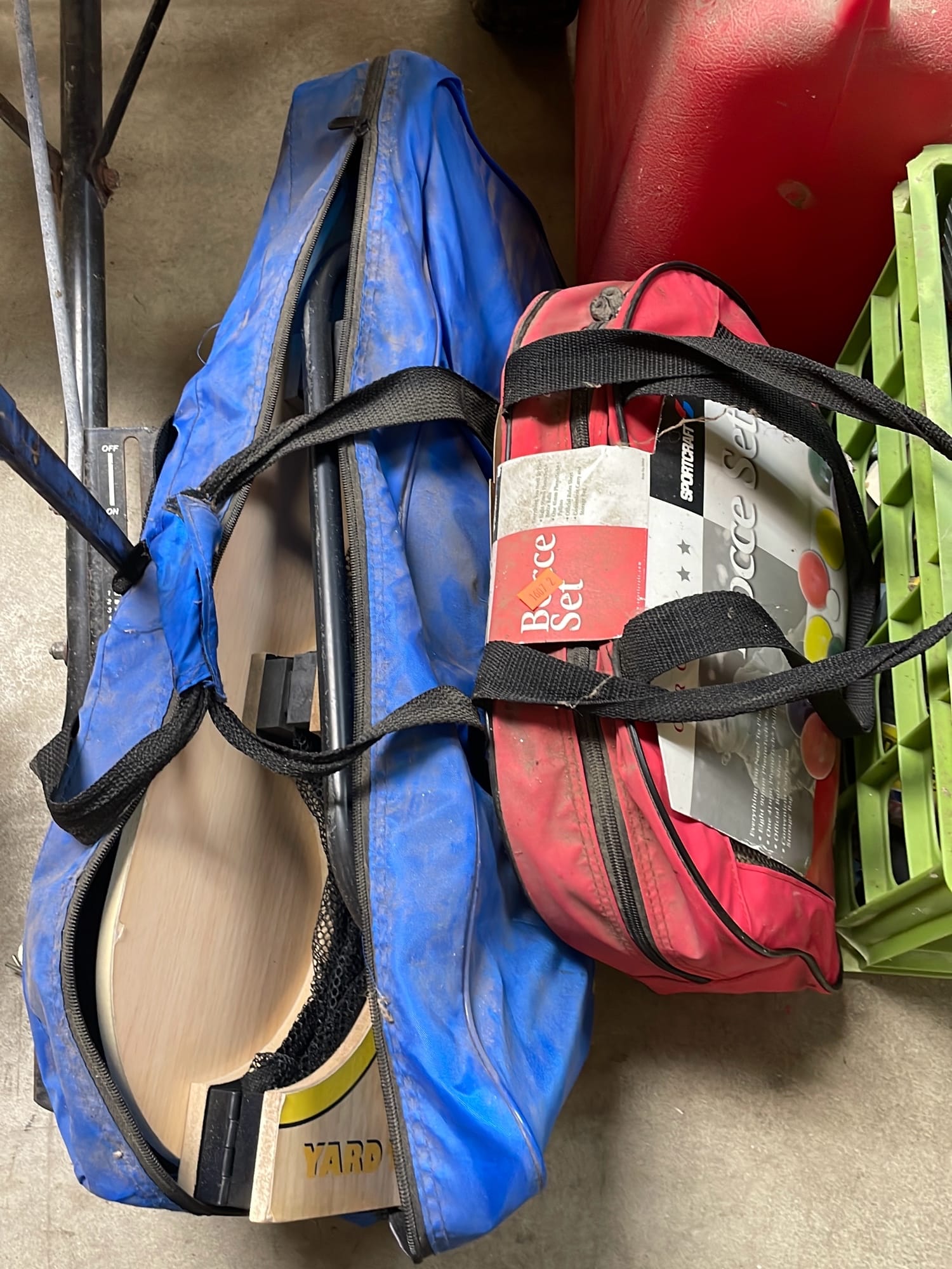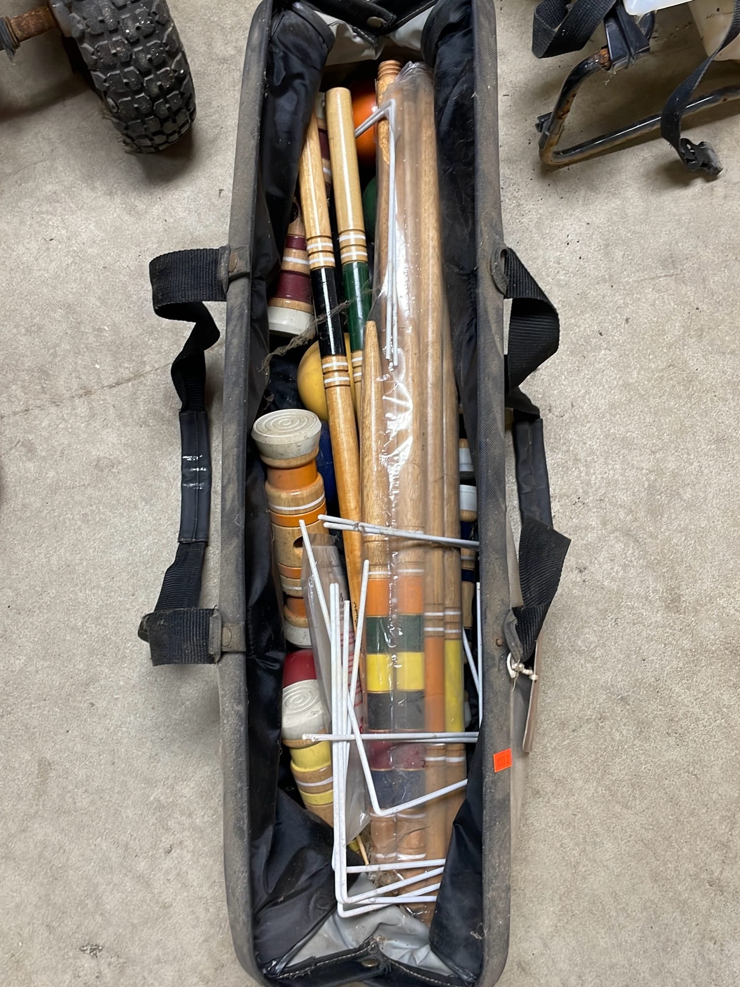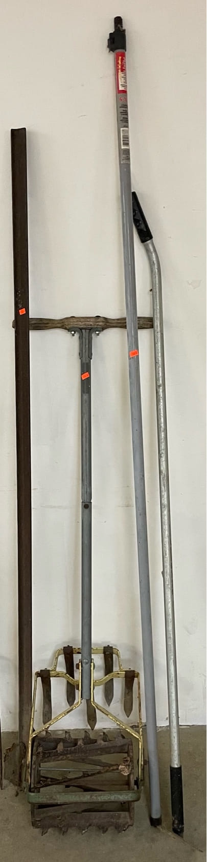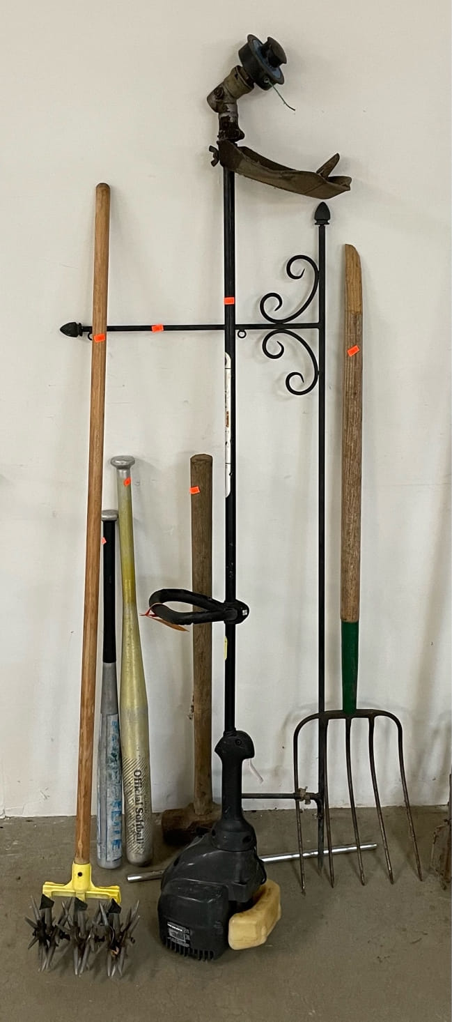 136 Baseball Bats (3), Flag Hanger, Weed Eater, Aerator and Pitch Fork