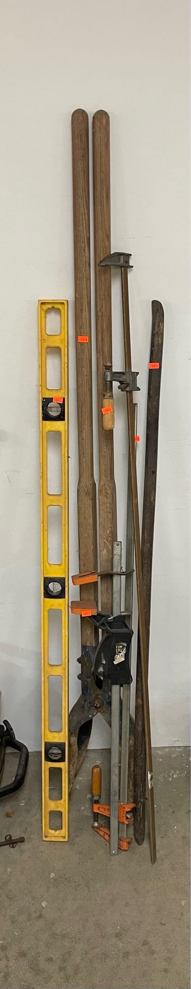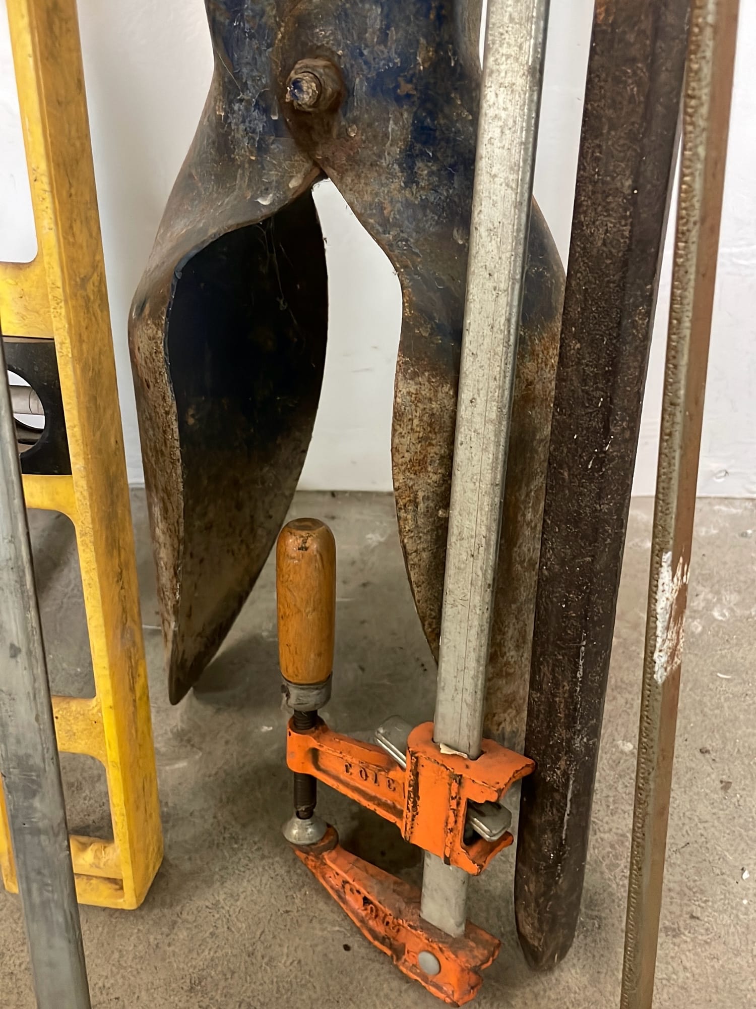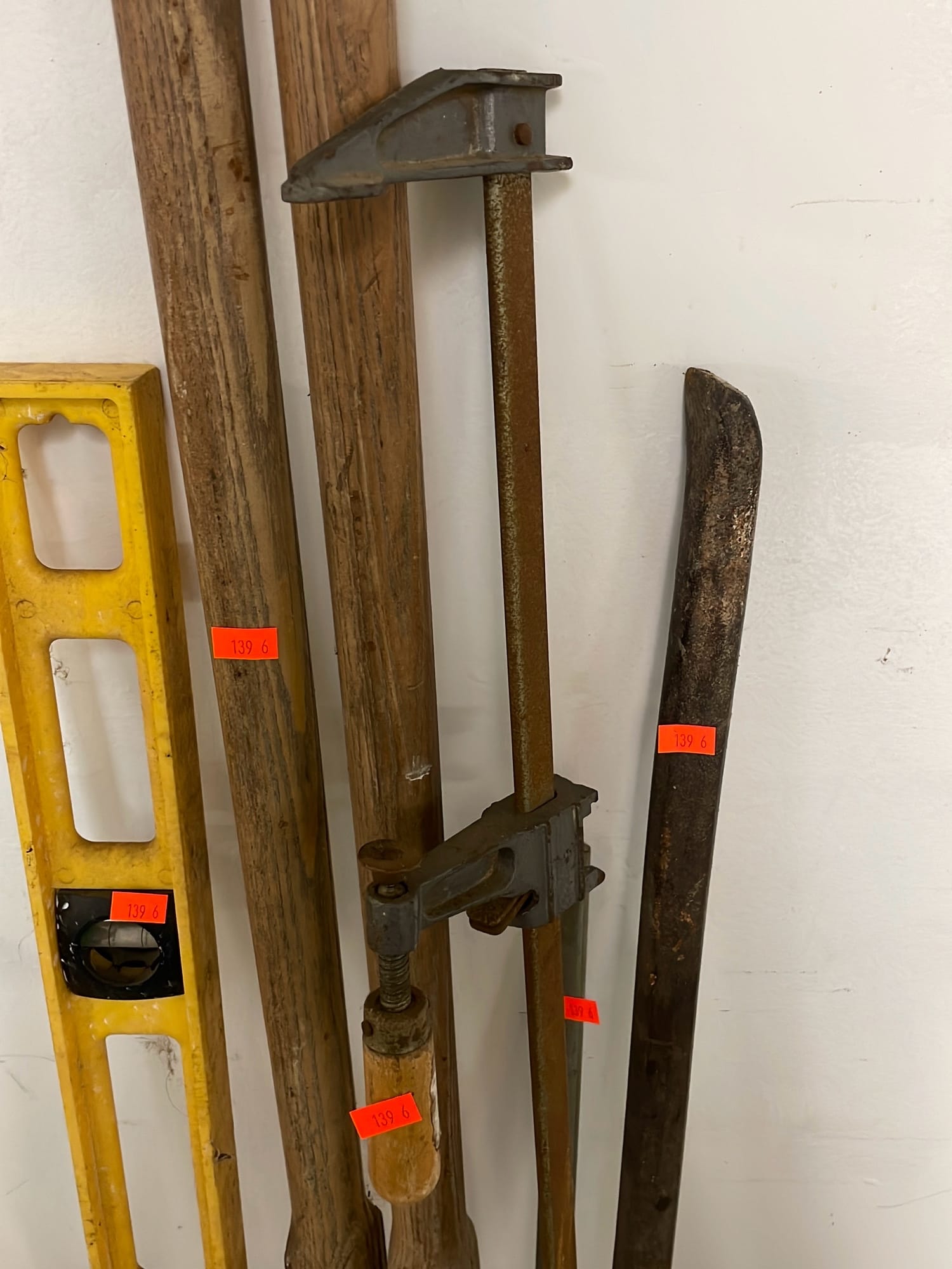 139 Level 4’, Post Hole Digger, Bar Clamp and Pry Bar 4’