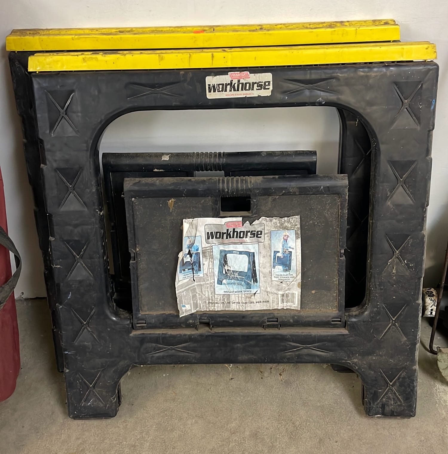141 Aluminum Step Ladder 27”, 2 Work Horse Saw Horses