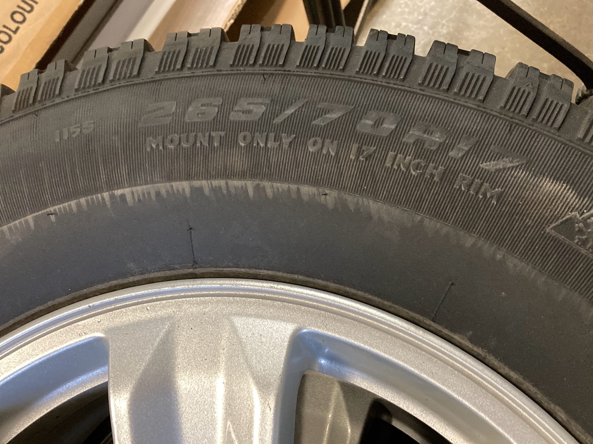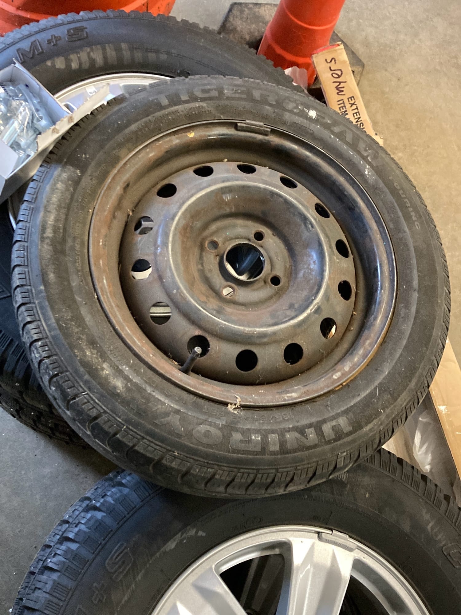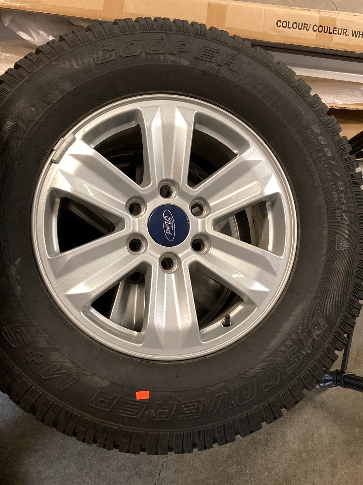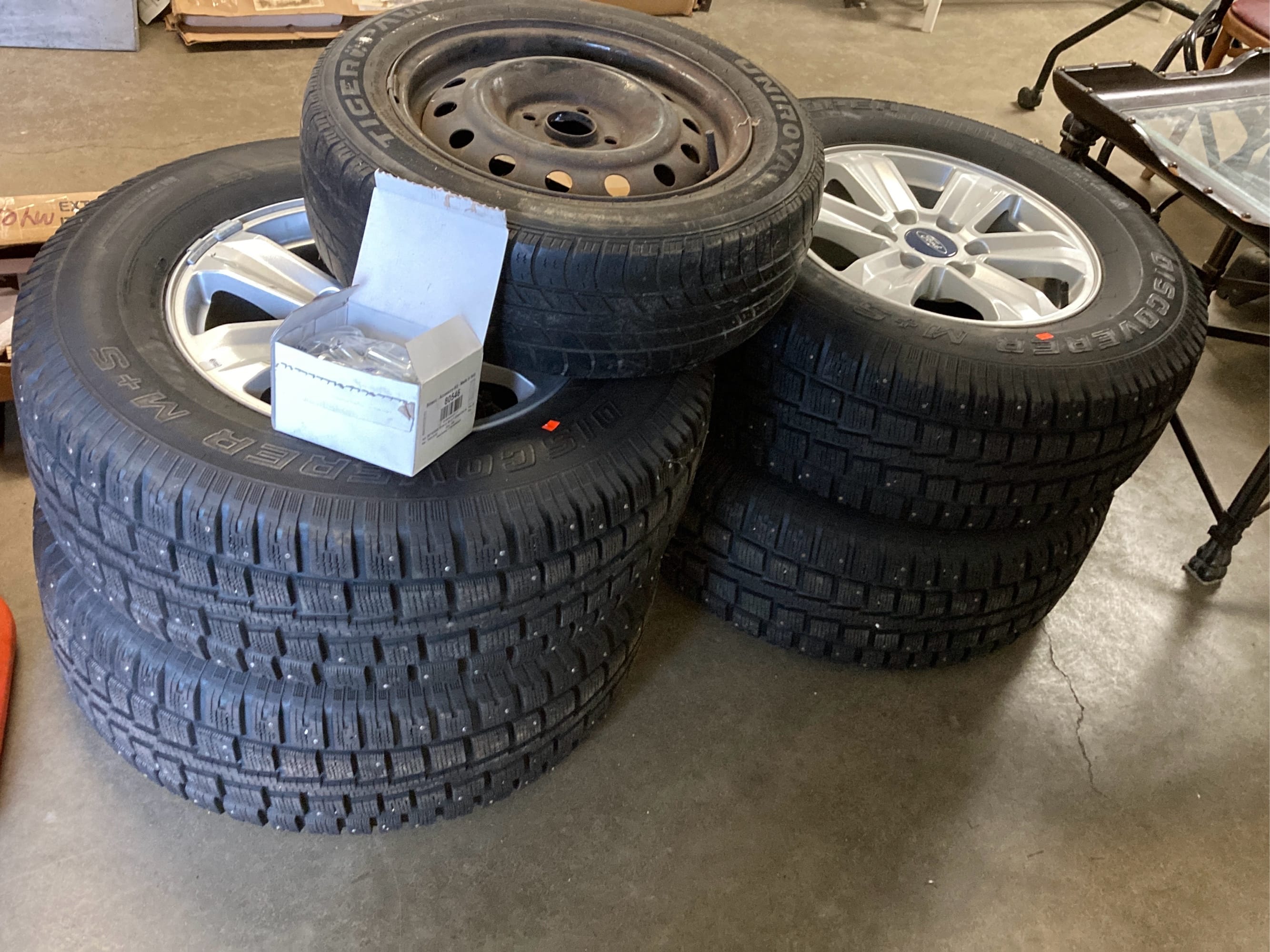 201 Ford Rims with Cooper 265/70R17 mount only 17” Rim with snow studs-4 tires & Tiger Paw Uniroyal 185/65R15 88T