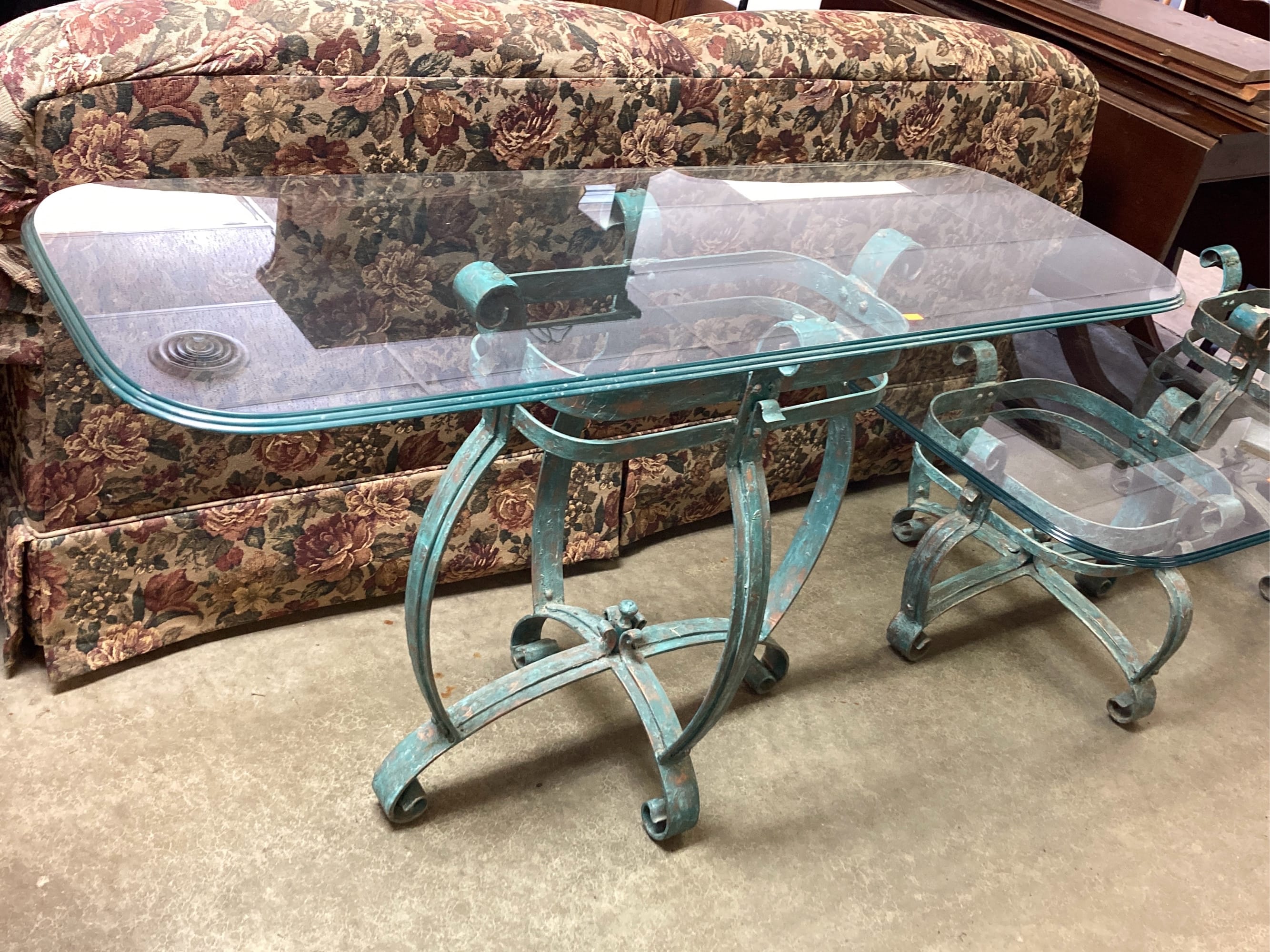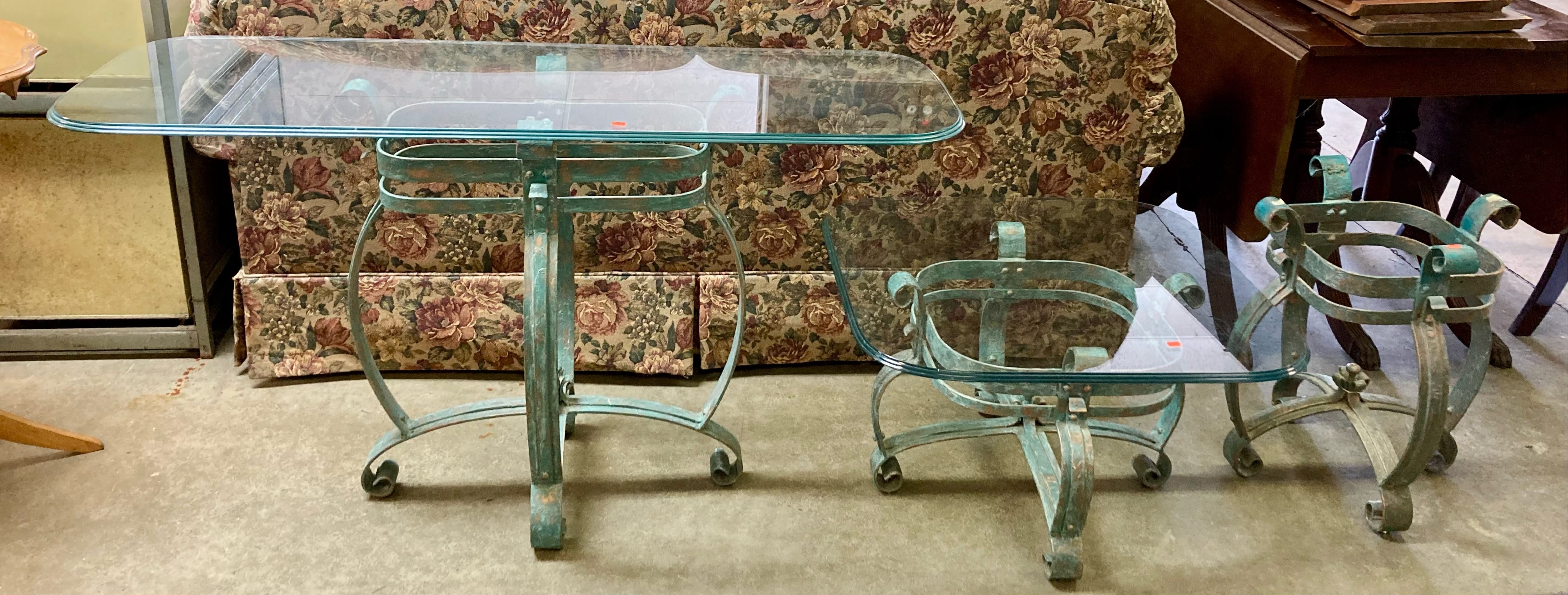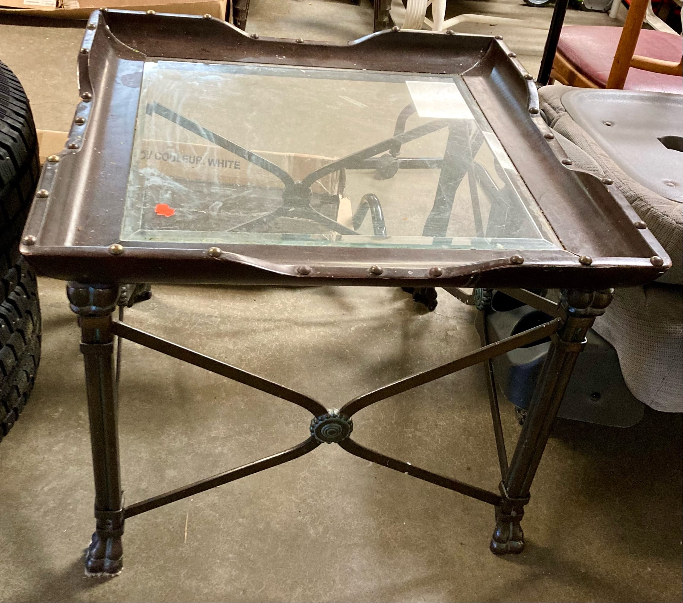 701 Glass coffee table 51”Lx18”Dx30”T, Glass End Table-27”x27”x16”T& Table Stand, base only 21”Tx18”18”