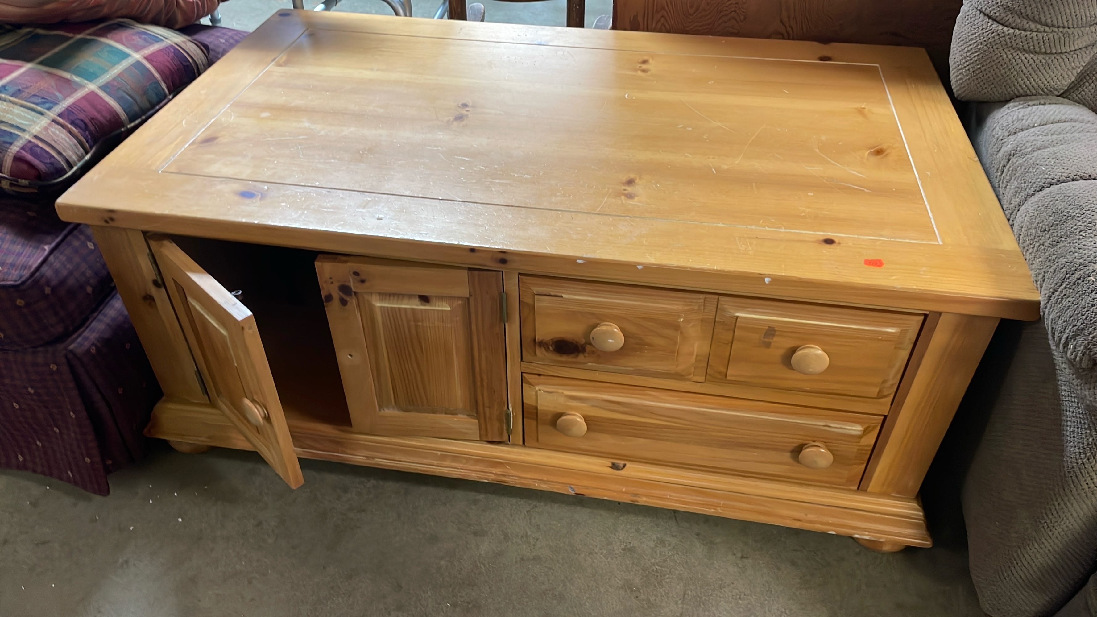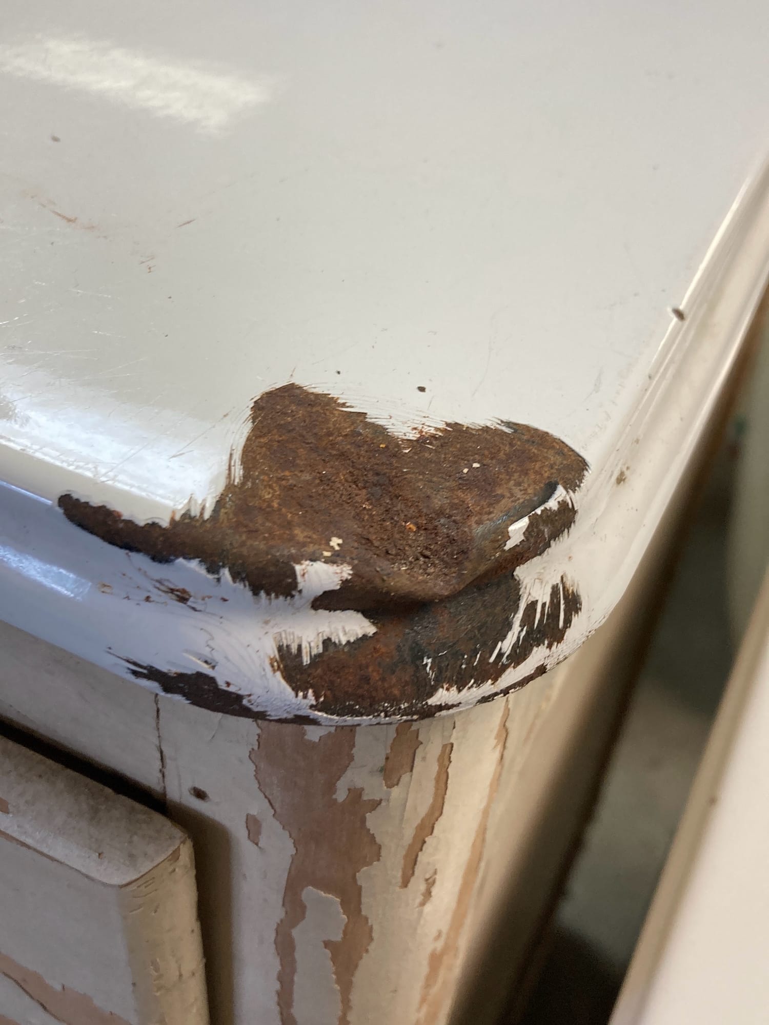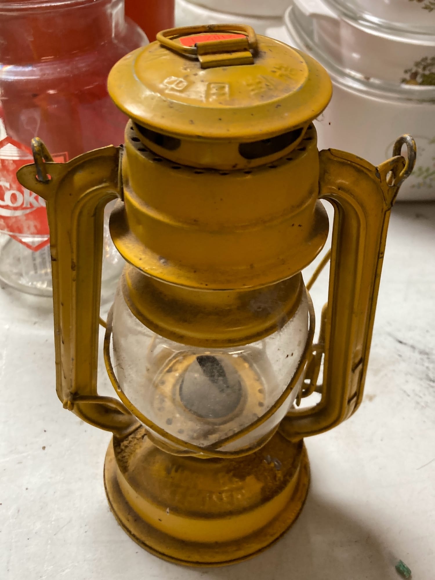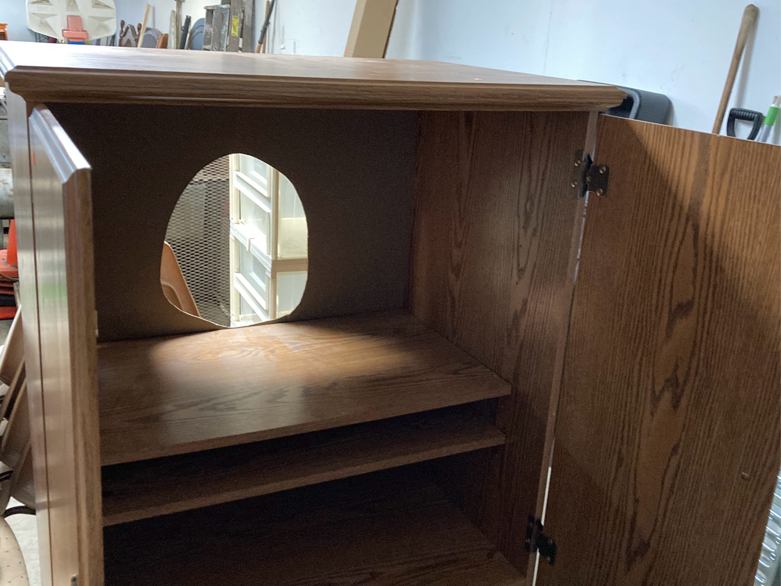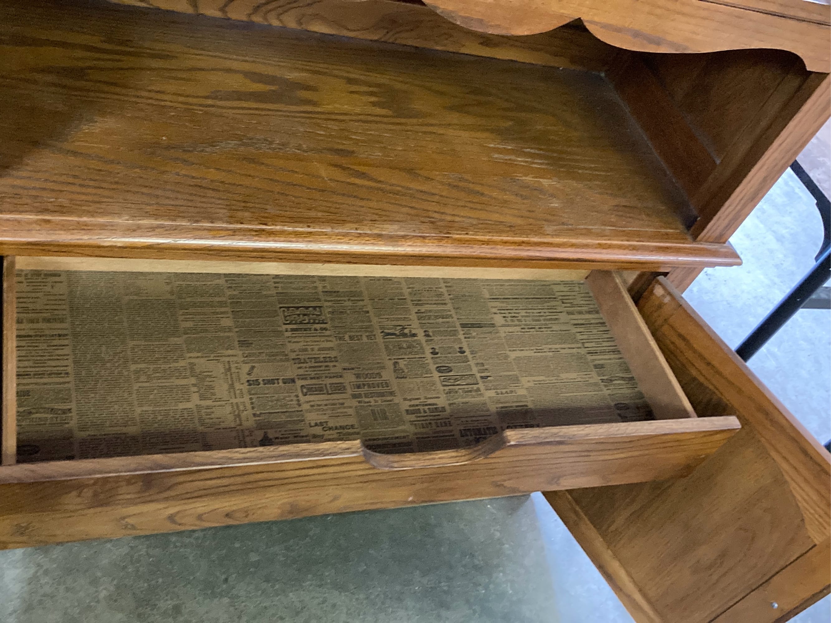 603 Nappanee Coppes Inc. Kitchen Cabinet with metal top-missing drawer-36”Wx22”Dx3’H & Lamp 24”T
