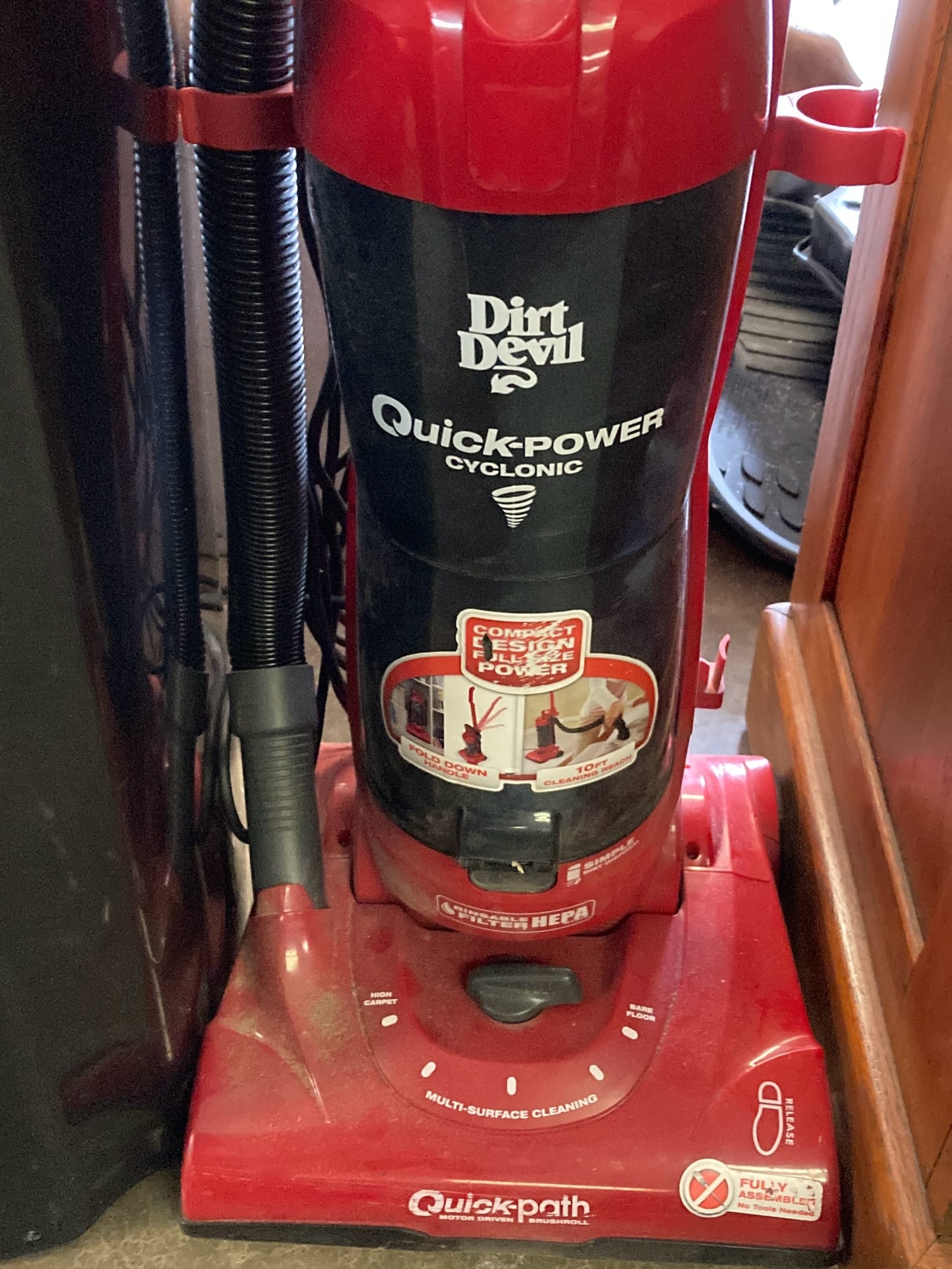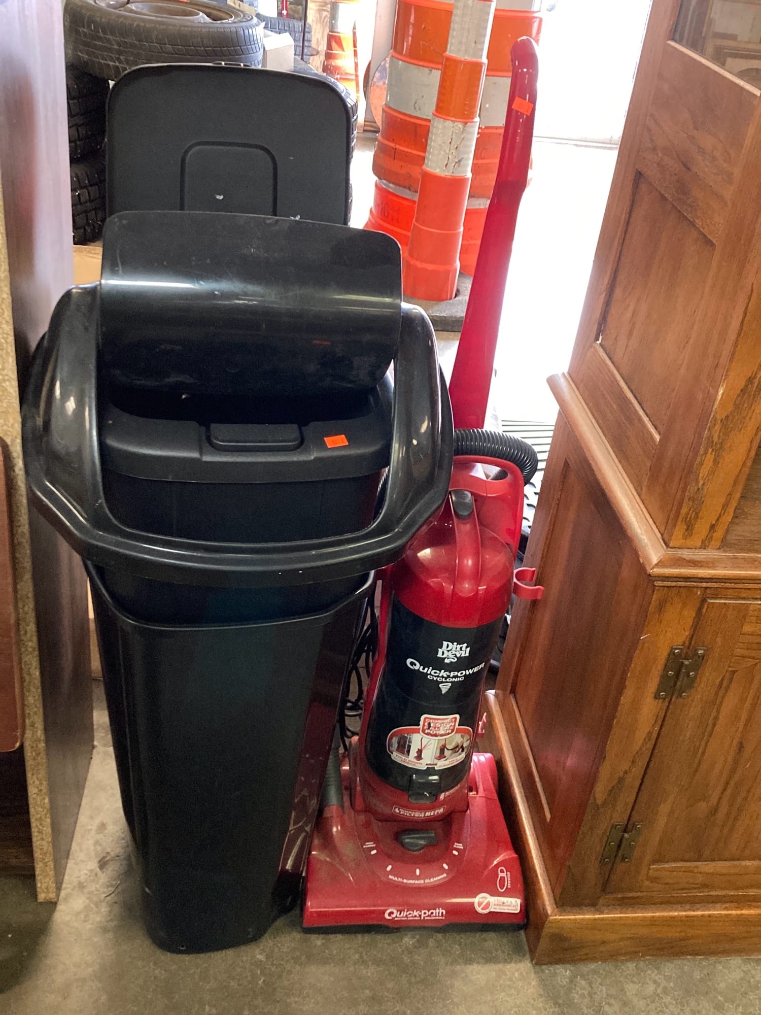 501 Dirt a devil Upright Vacuum and 2 trash cans