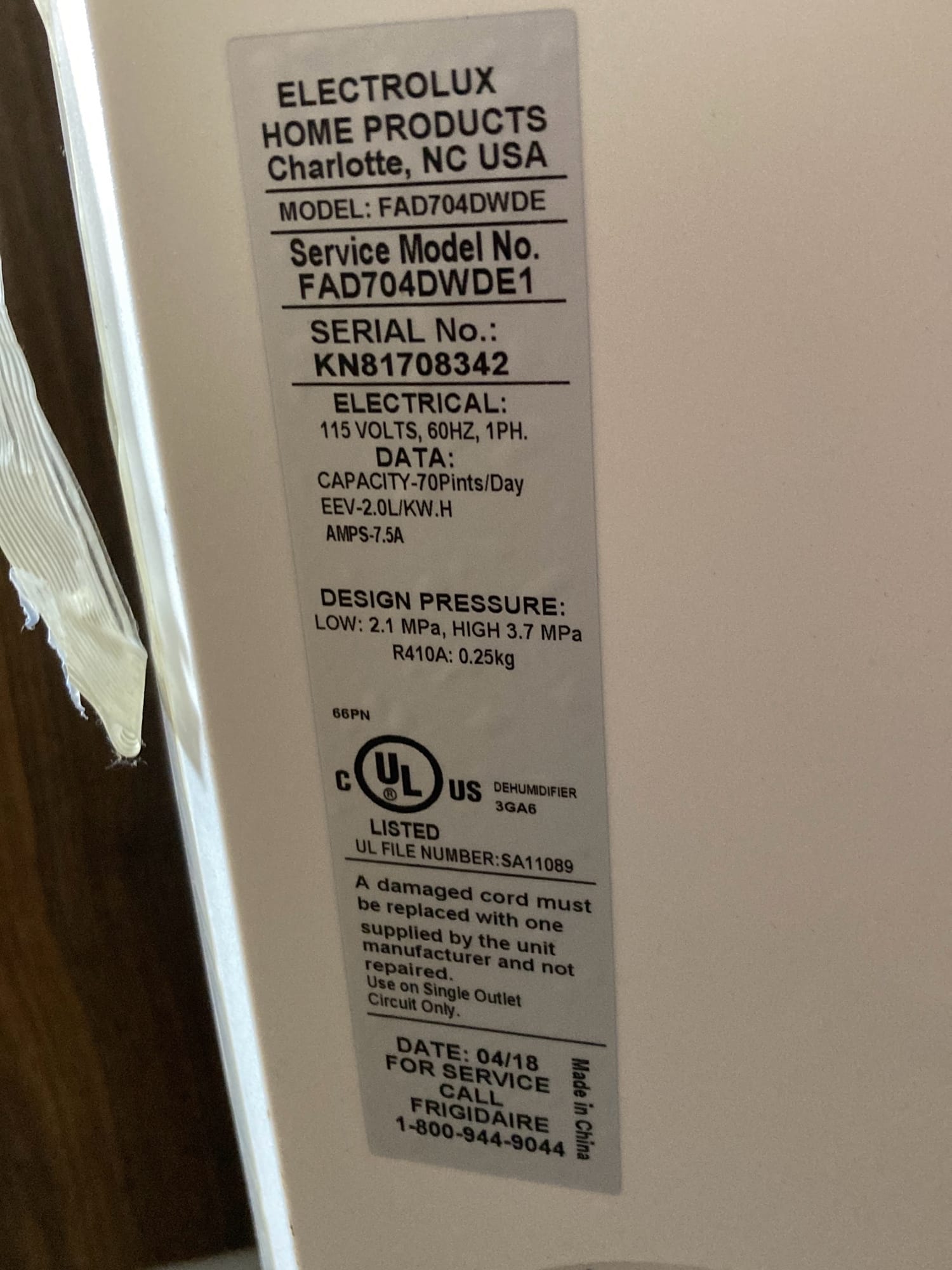 503 Frigidaire Dehumidifier & 80W-90 Gear Oil amount unknown