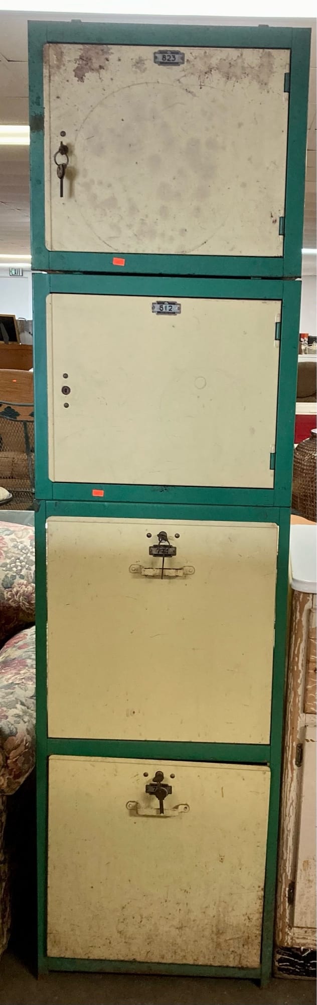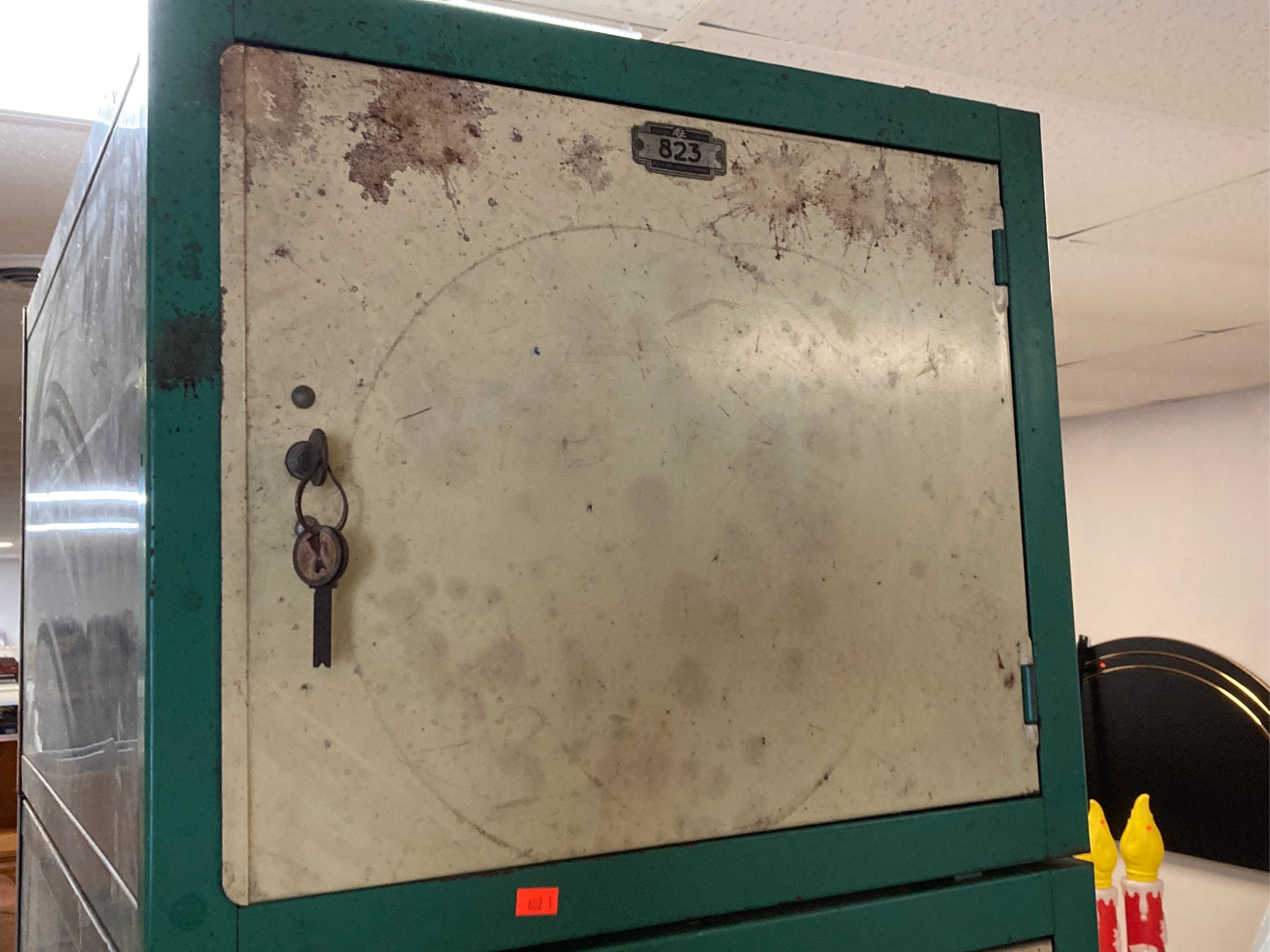 602 File Cabinet/Locker-key is stuck in top locker door & second door is locked-76”Hx30”Dx20”W