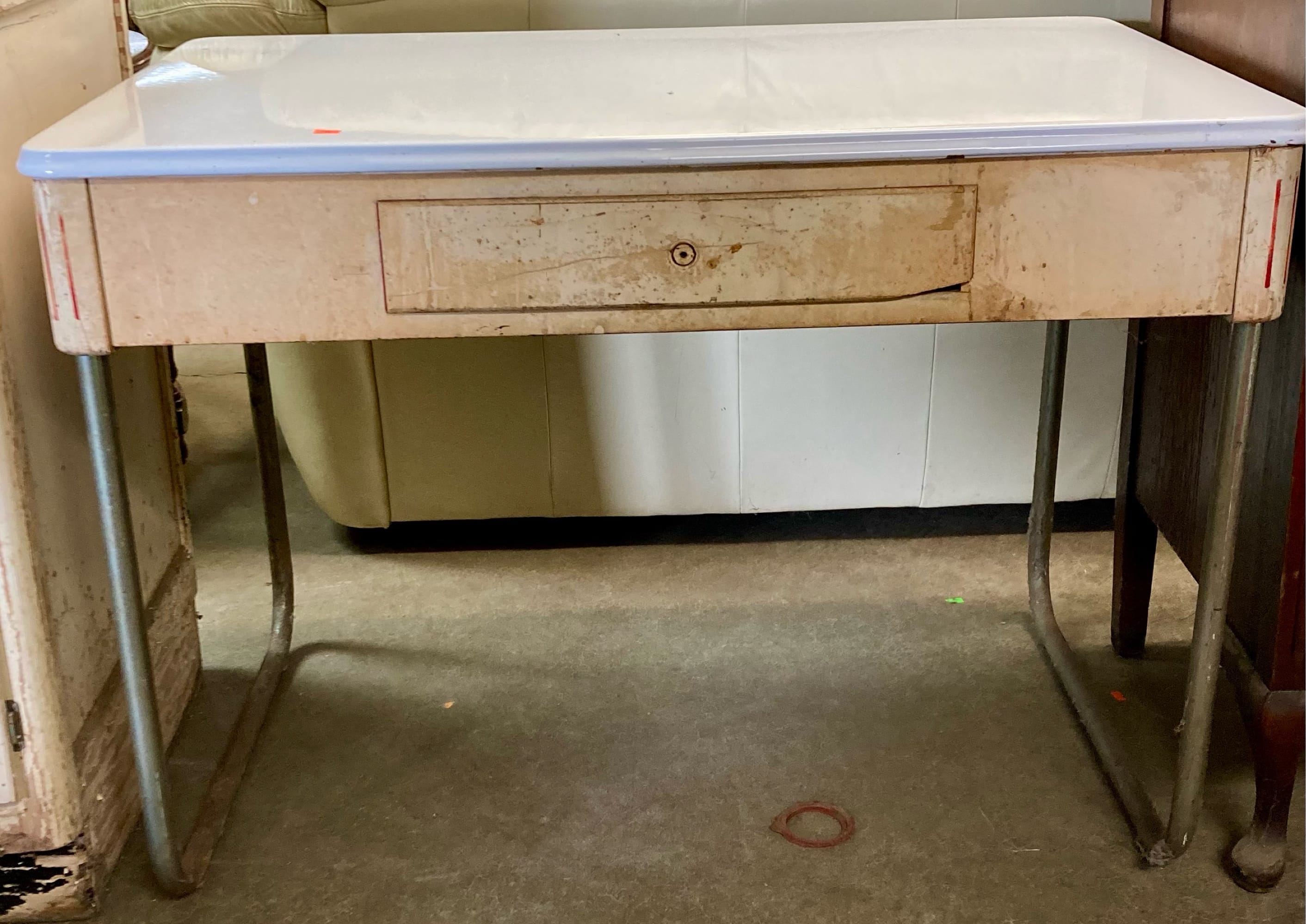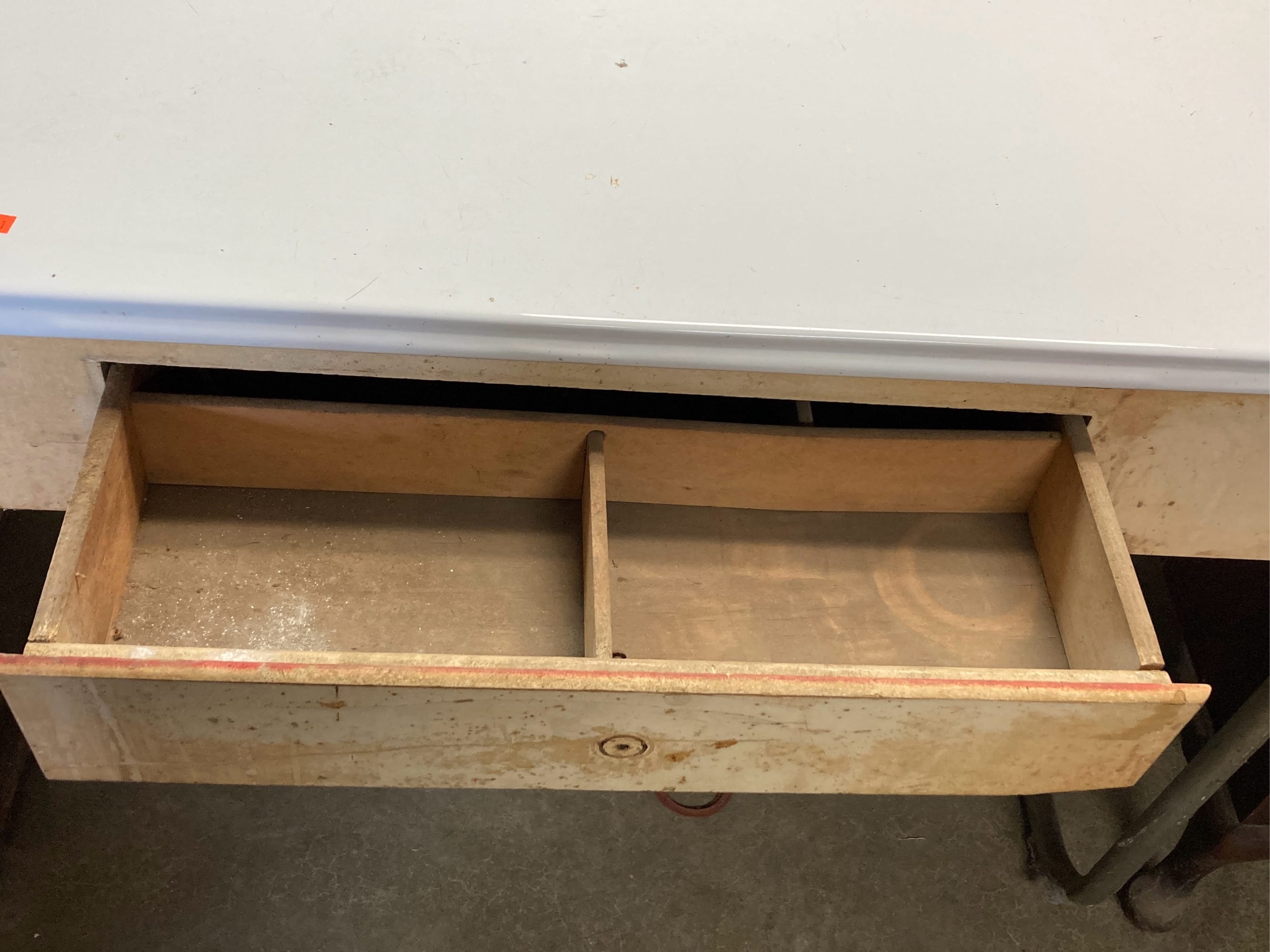 605 Metal Top Table with Drawer-40”Wx25”Dx29.5”T