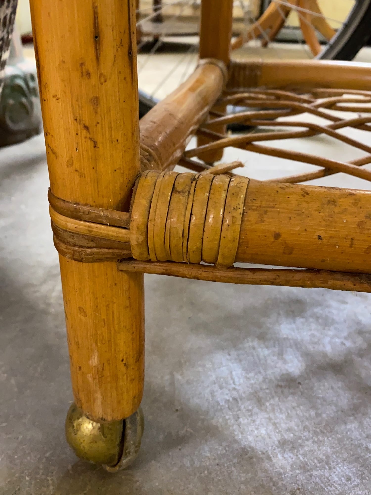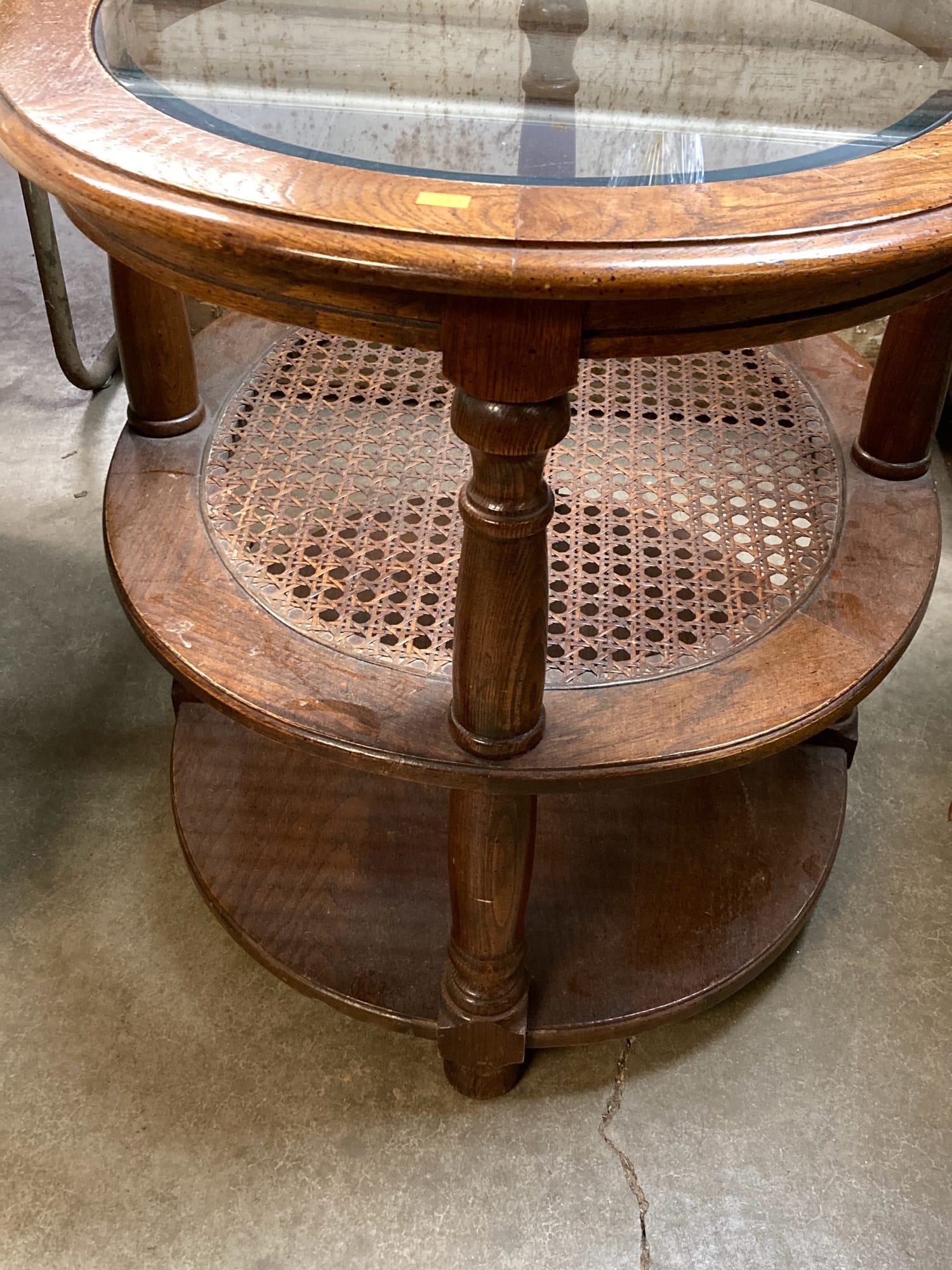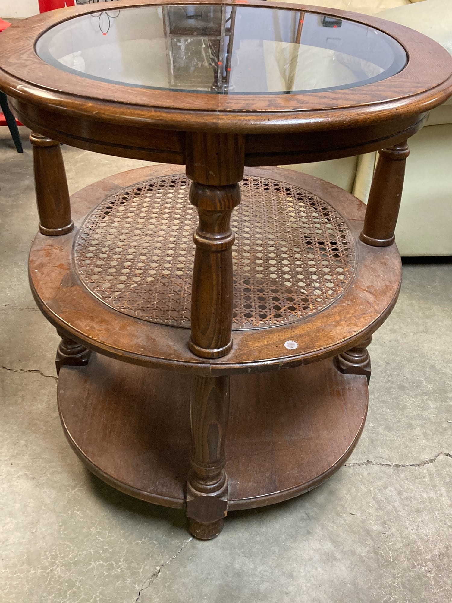 703 Wood End Table with Glass Top and Cane Shelf 27”x24”Wx26”T