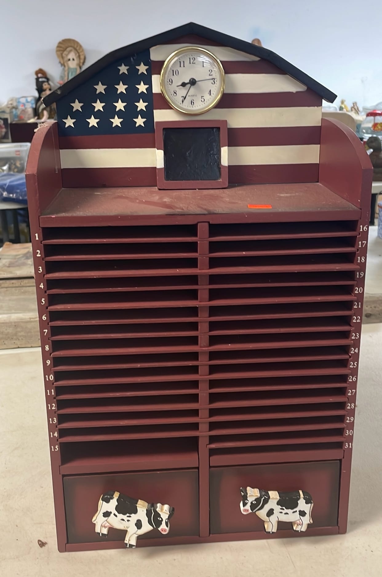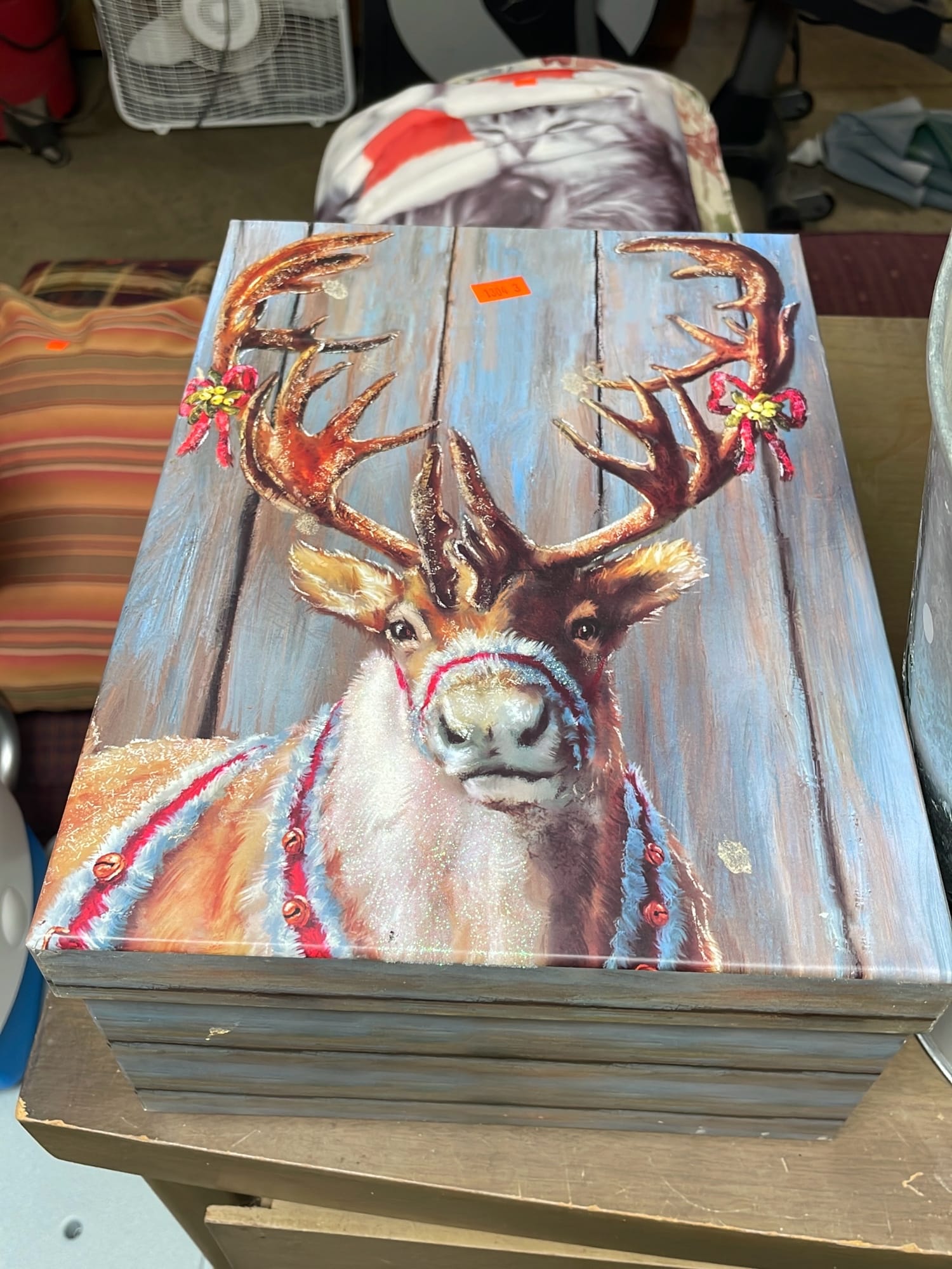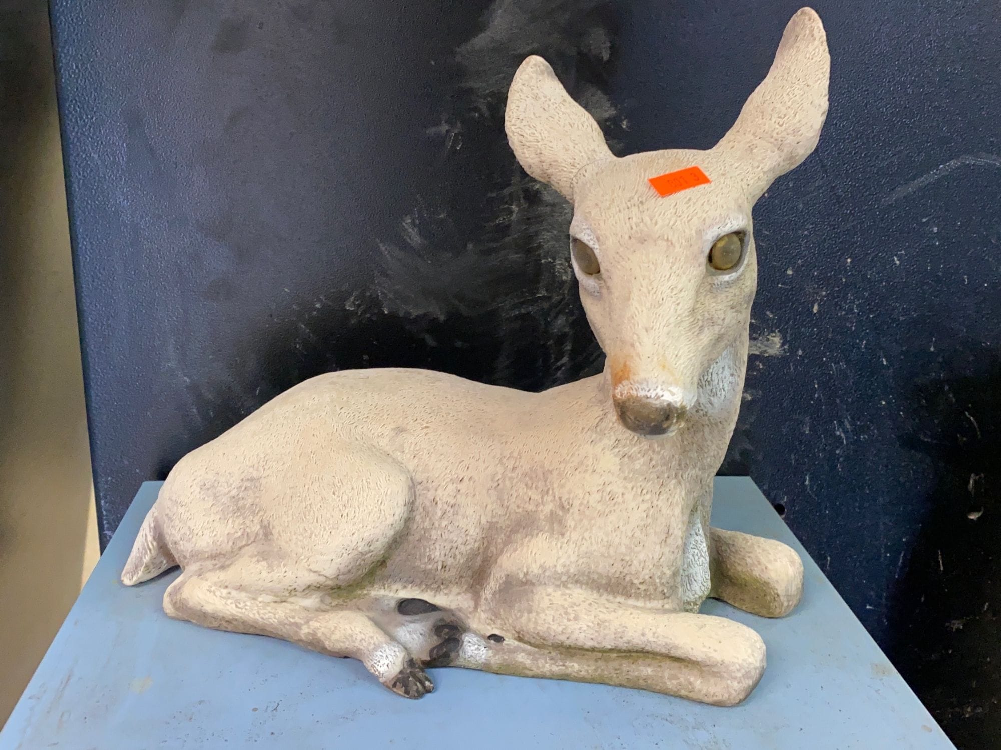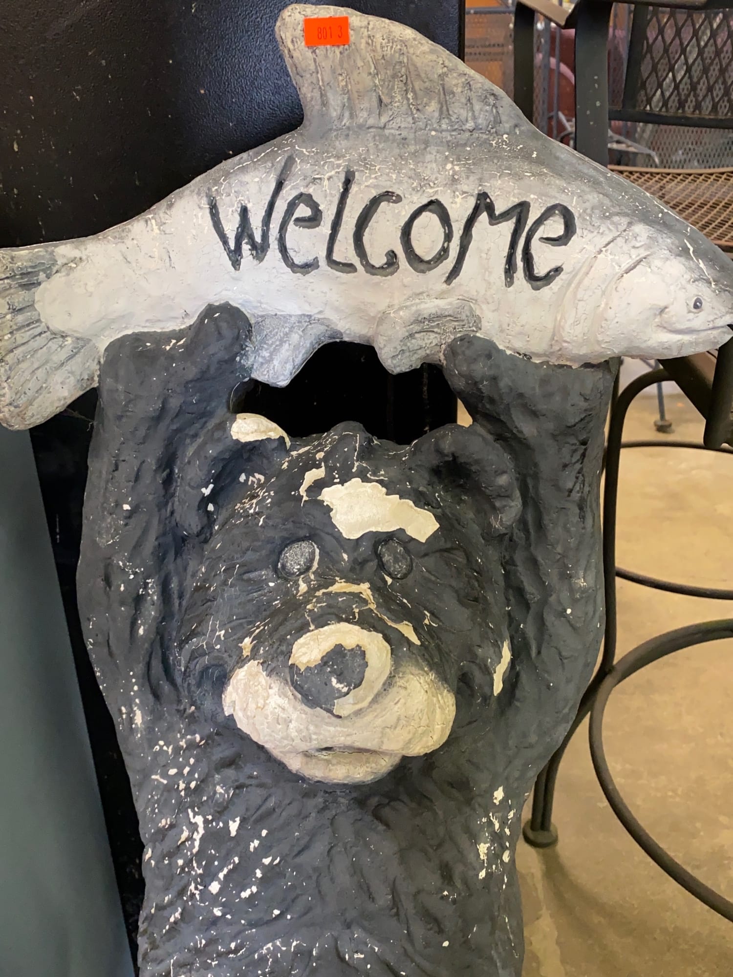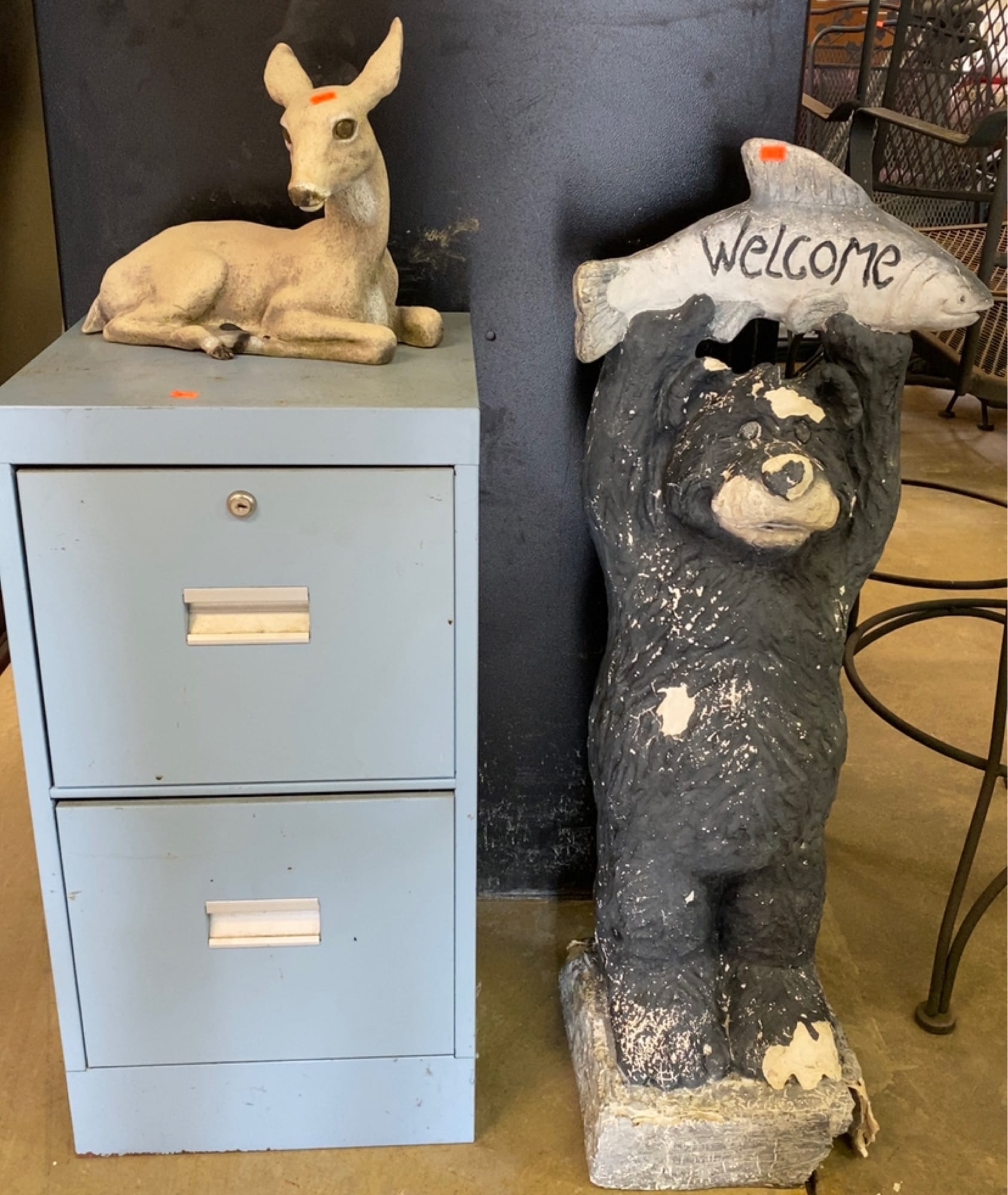 801 Filing Cabinet (14” x 15” x 29”), Deer Statue (11”) & Bear Welcome Statue (39”)