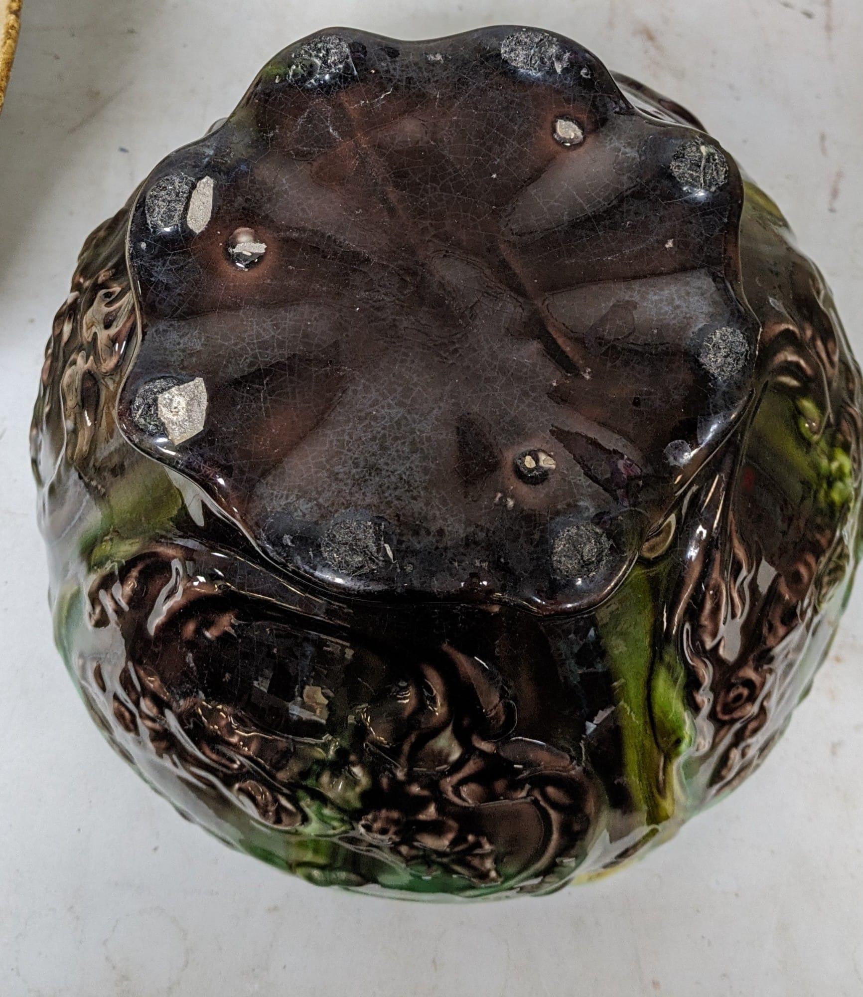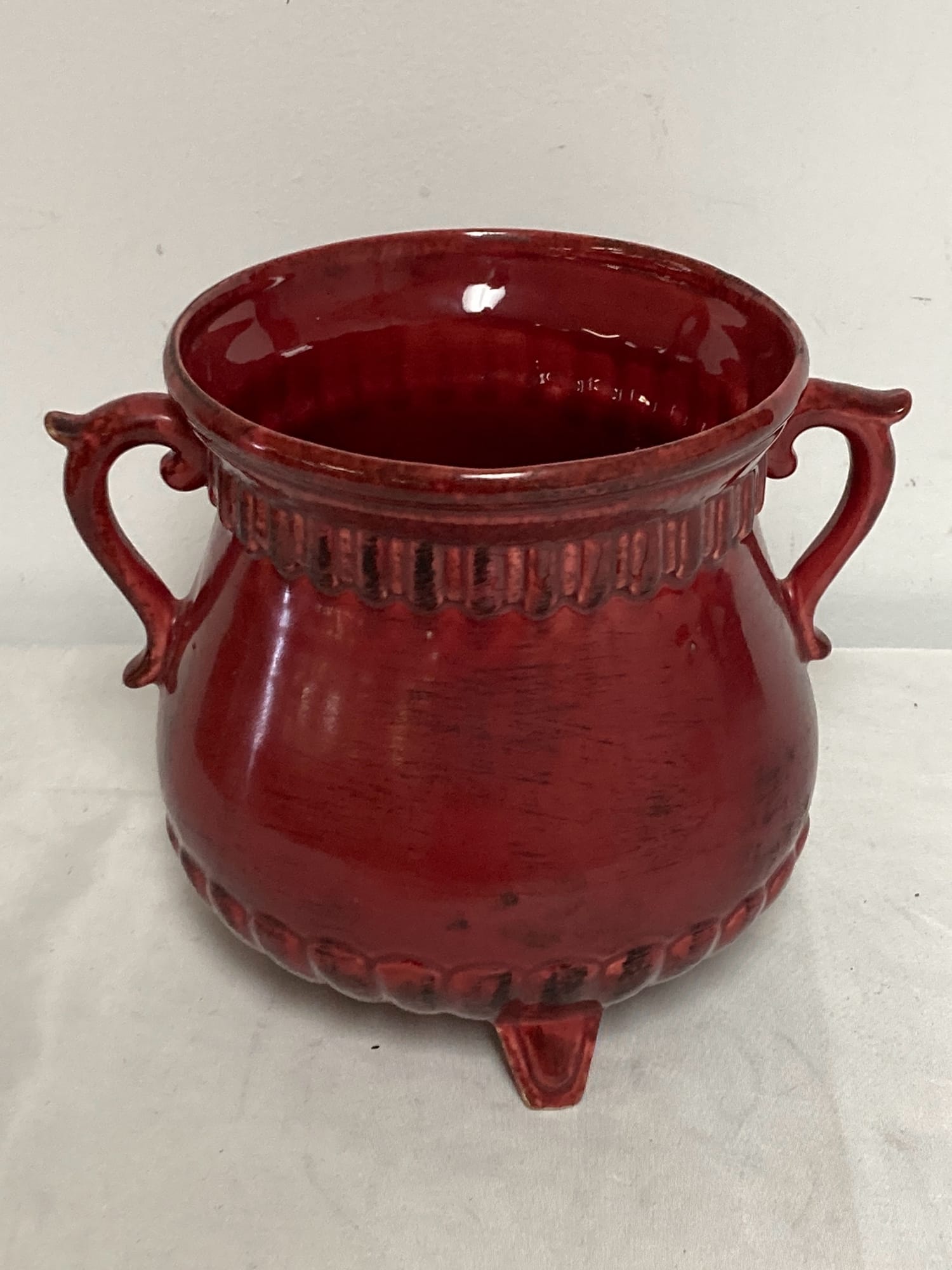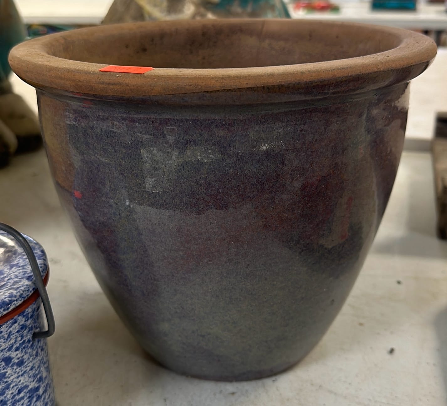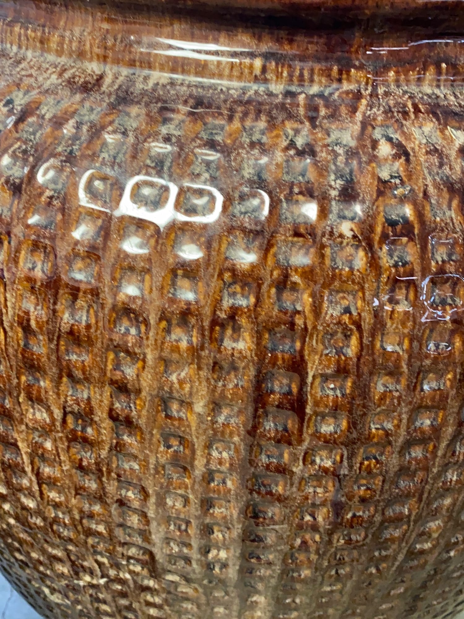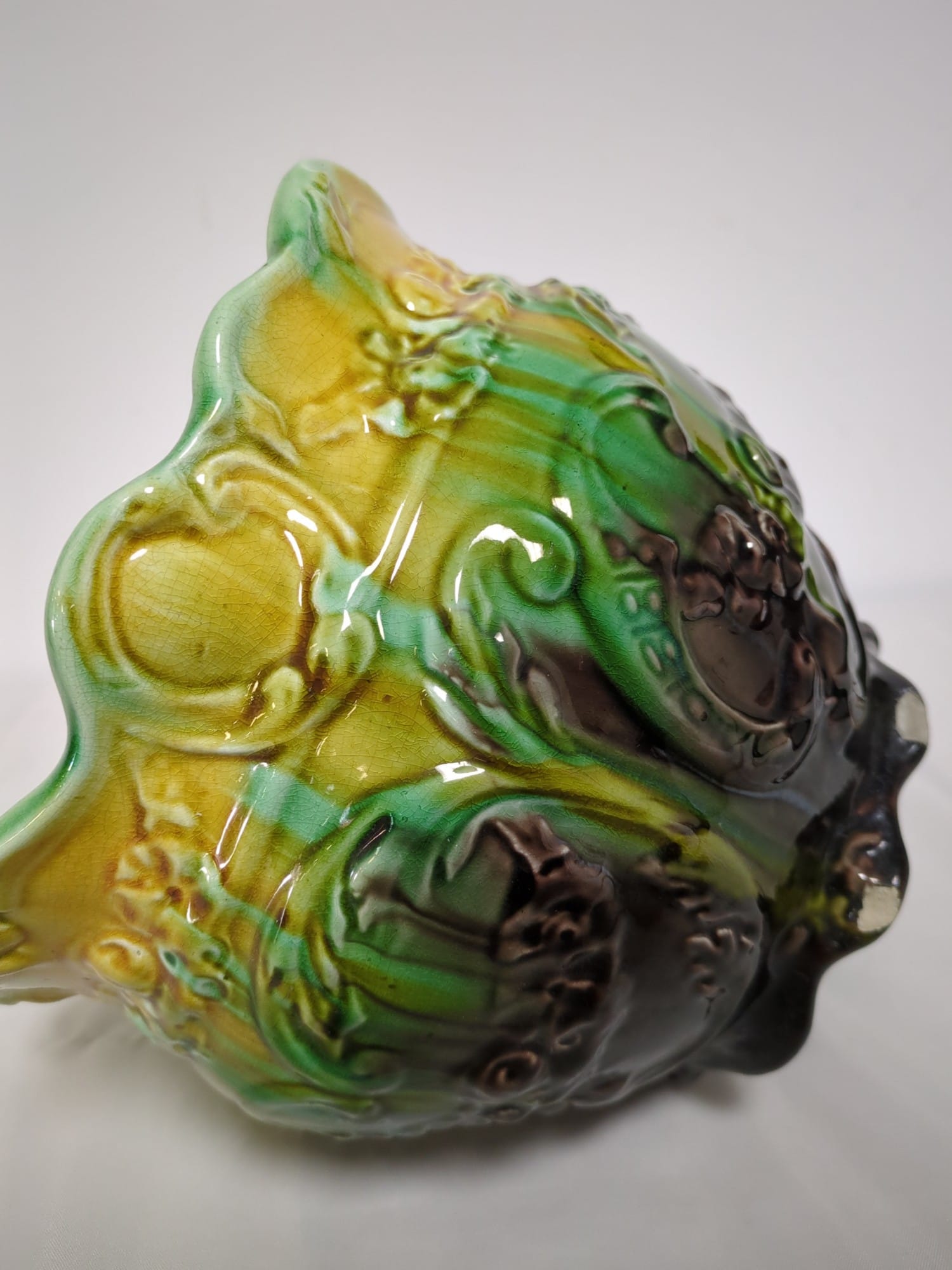 2329 Art Pottery Jardiniere, Drip Glaze Majolica Planter - has chip & crazing - 7" tallx9" Width