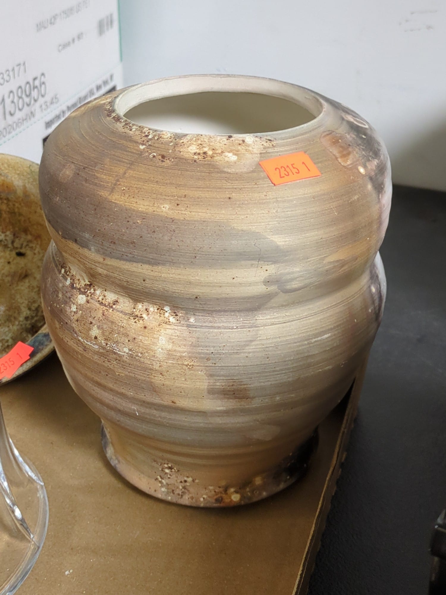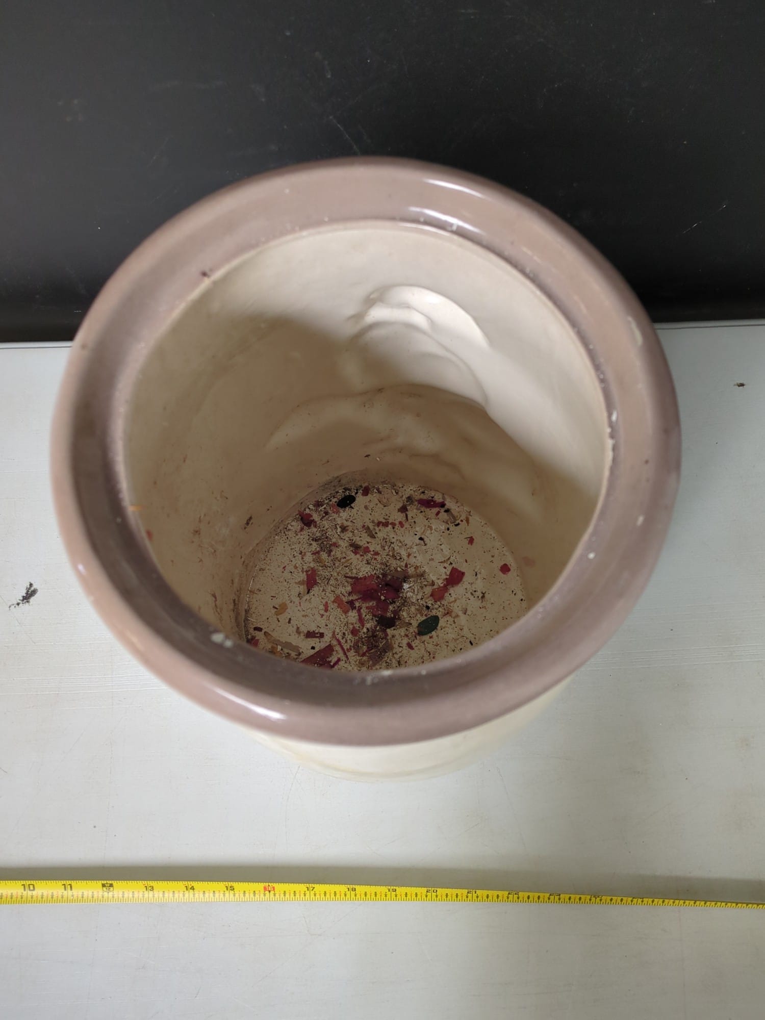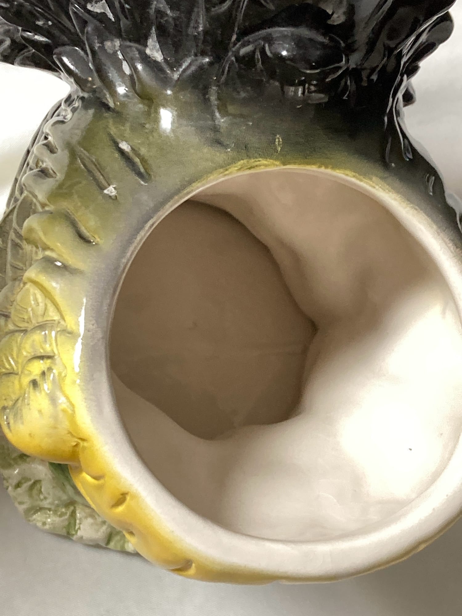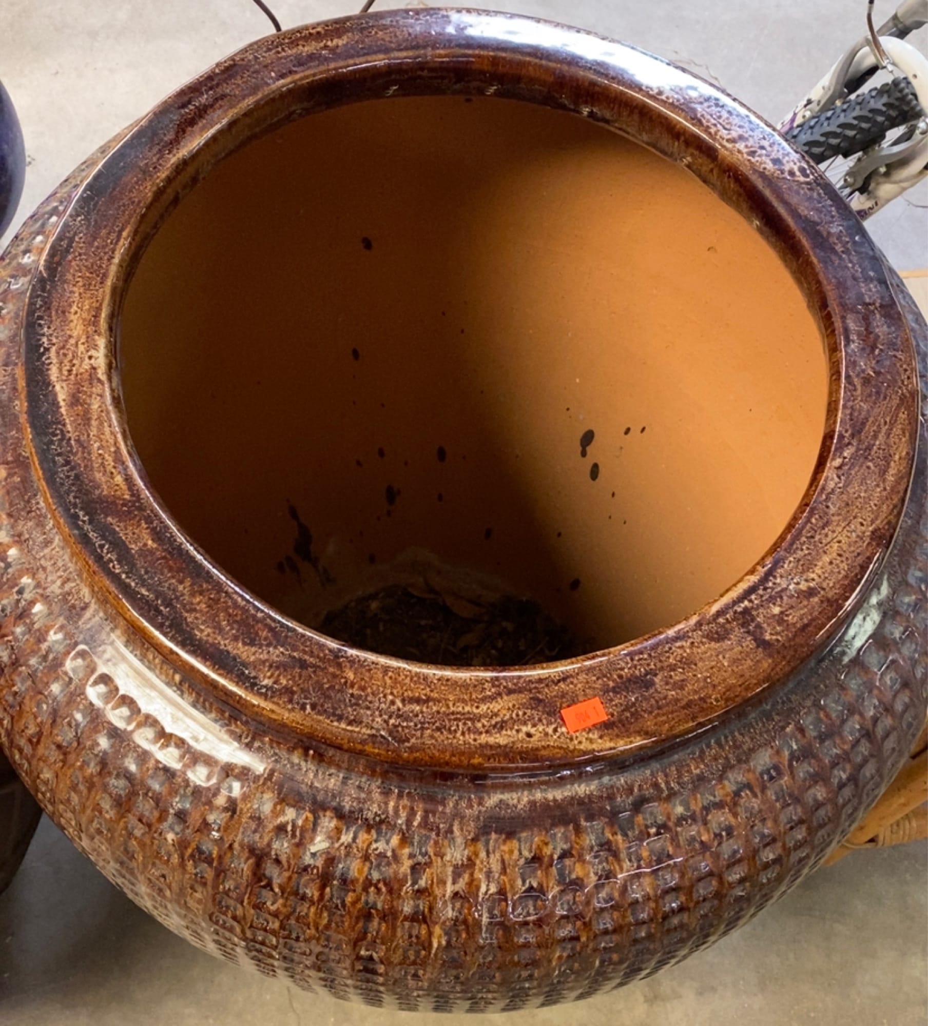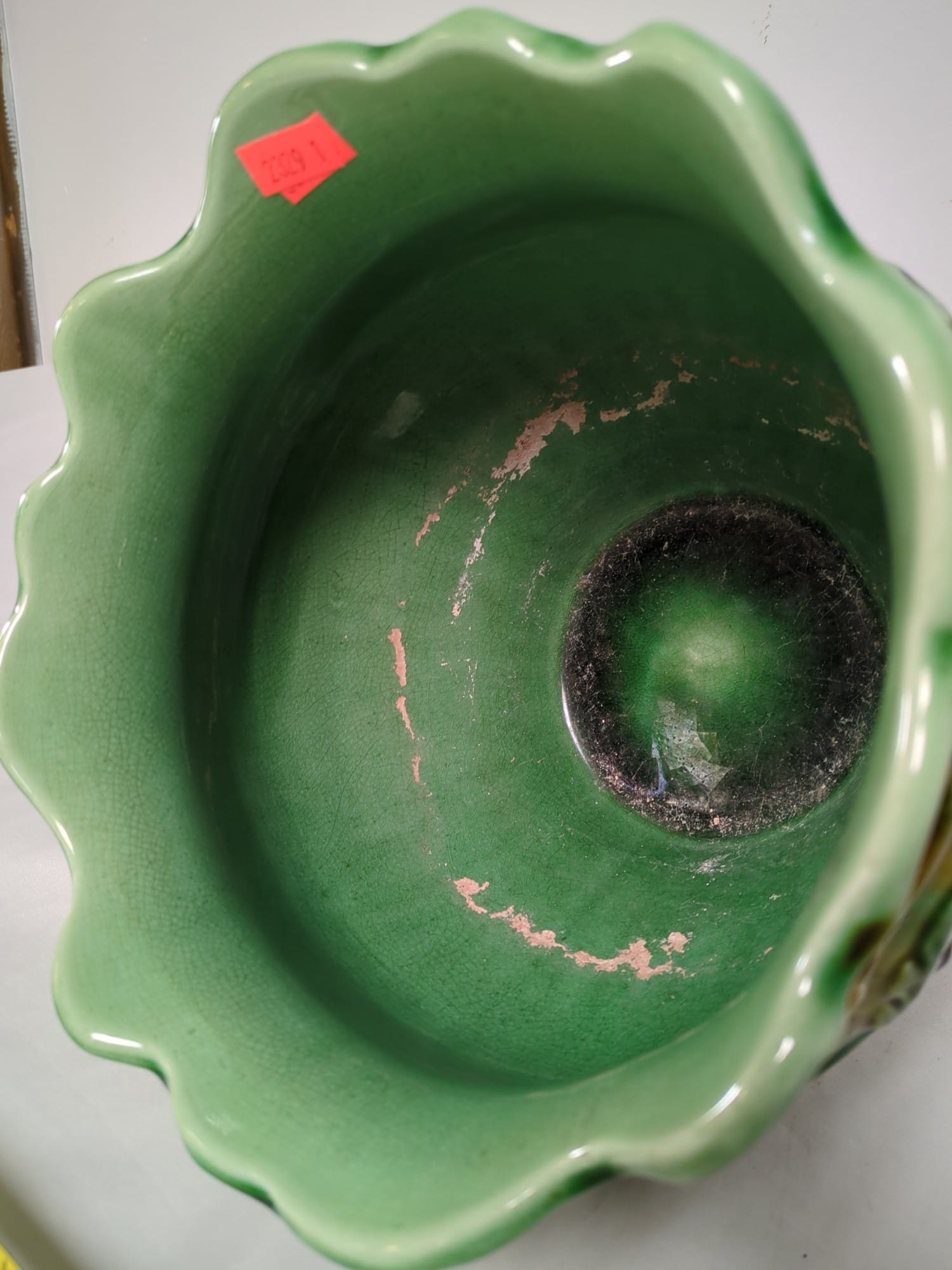 2329 Art Pottery Jardiniere, Drip Glaze Majolica Planter - has chip & crazing - 7" tallx9" Width