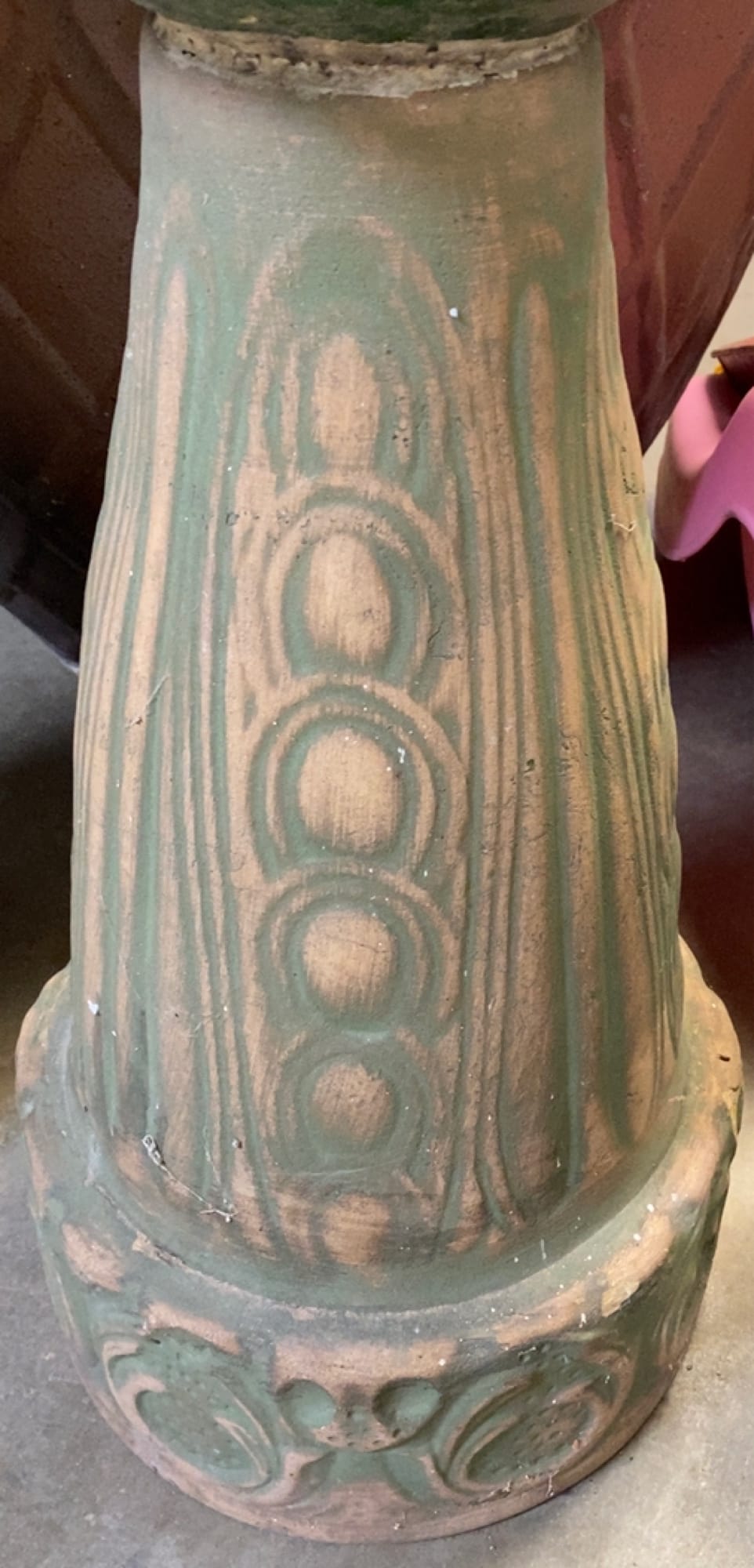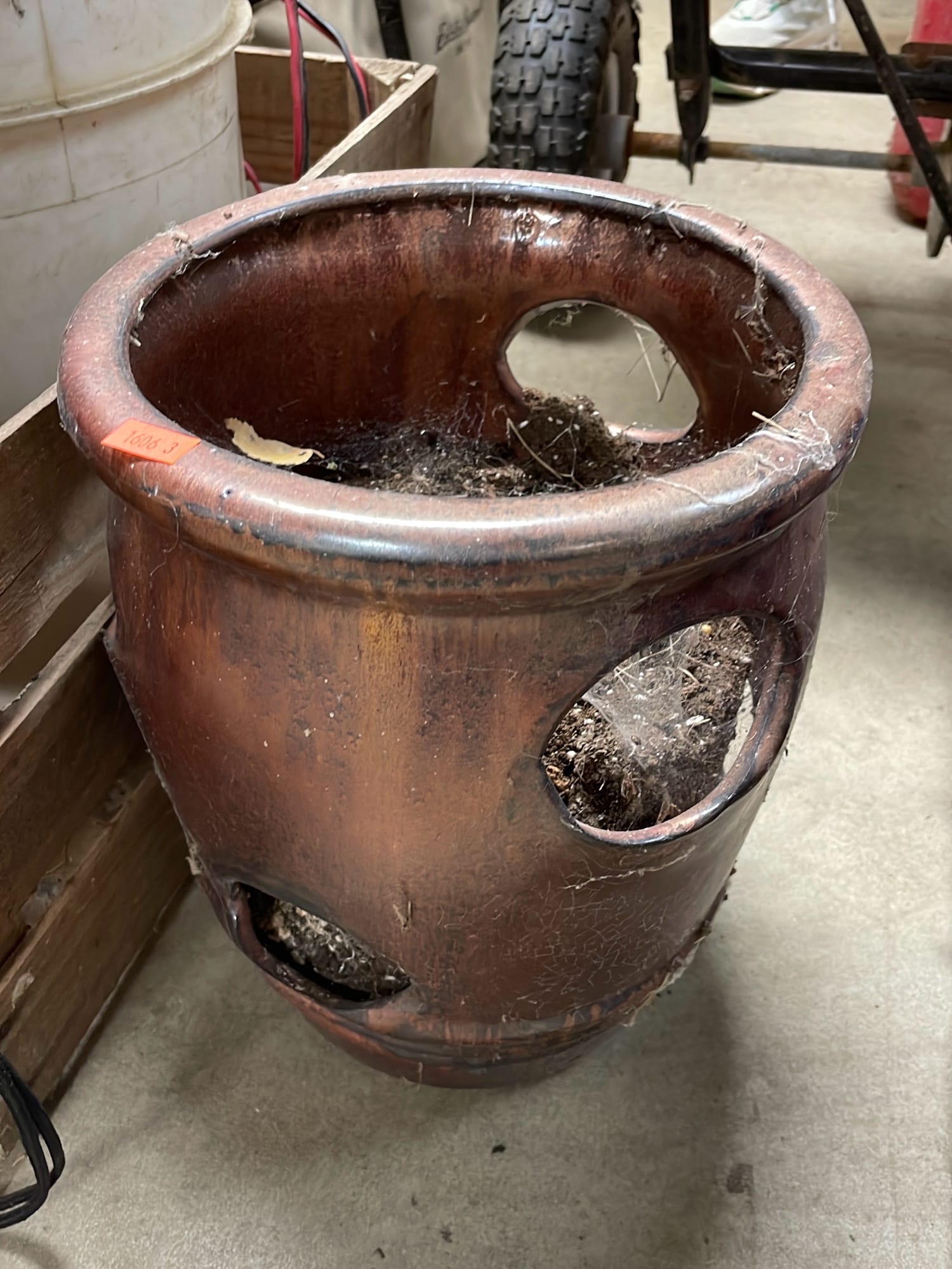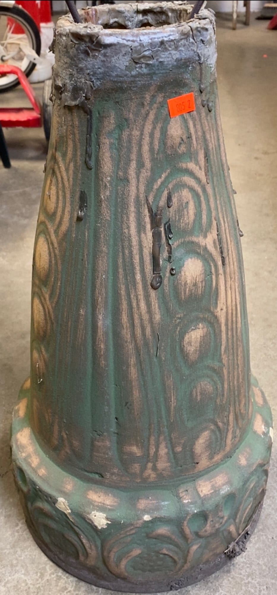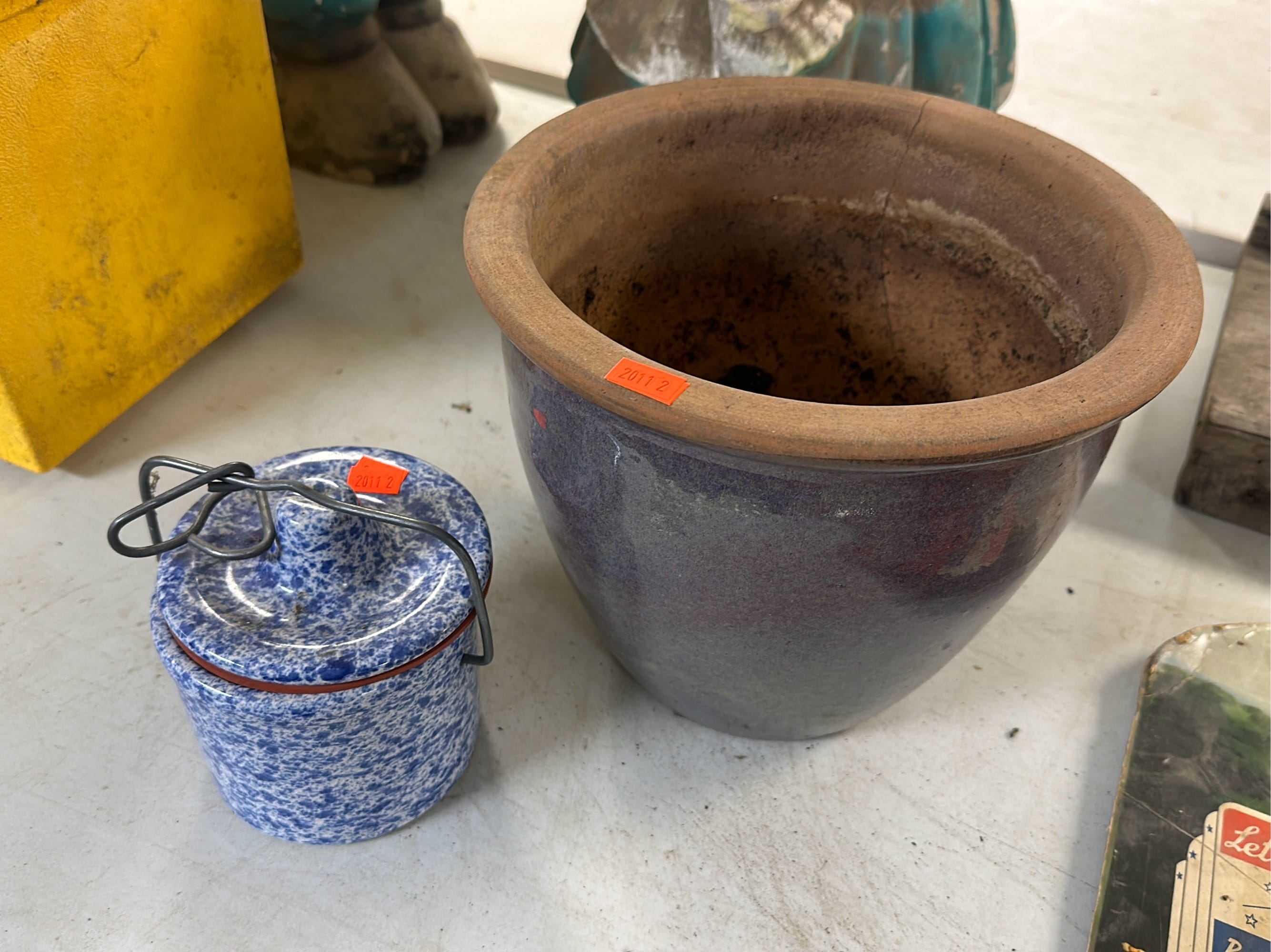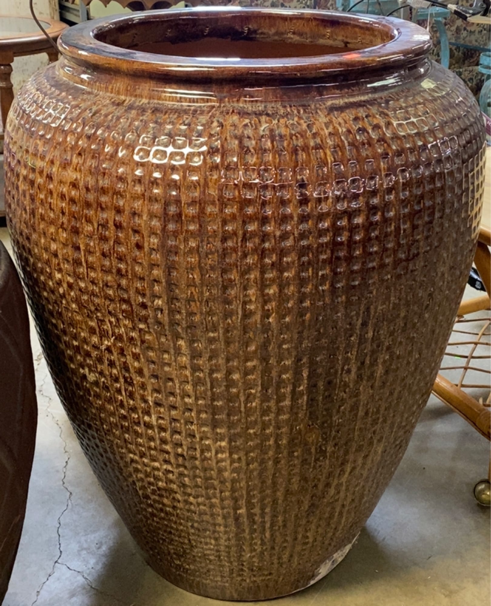2329 Art Pottery Jardiniere, Drip Glaze Majolica Planter - has chip & crazing - 7" tallx9" Width