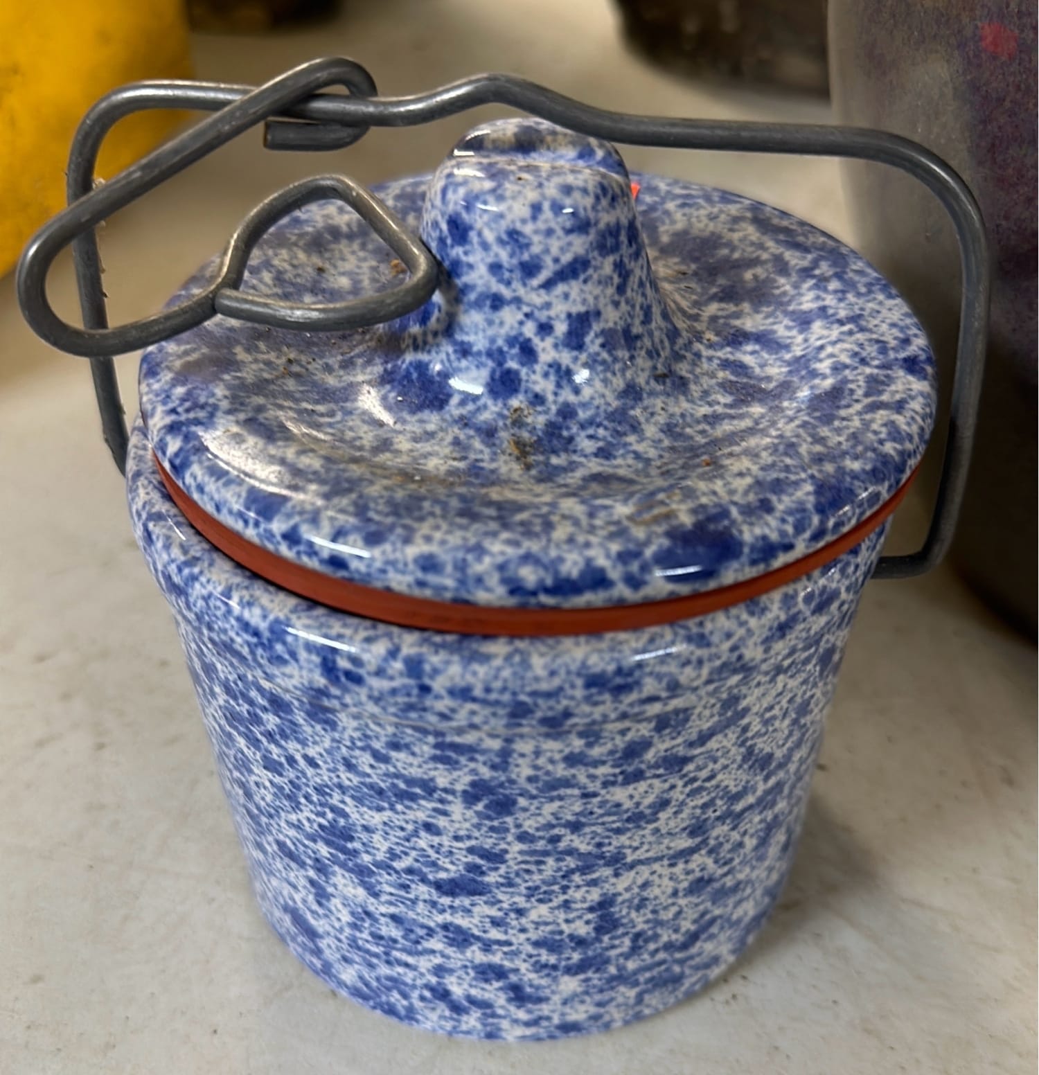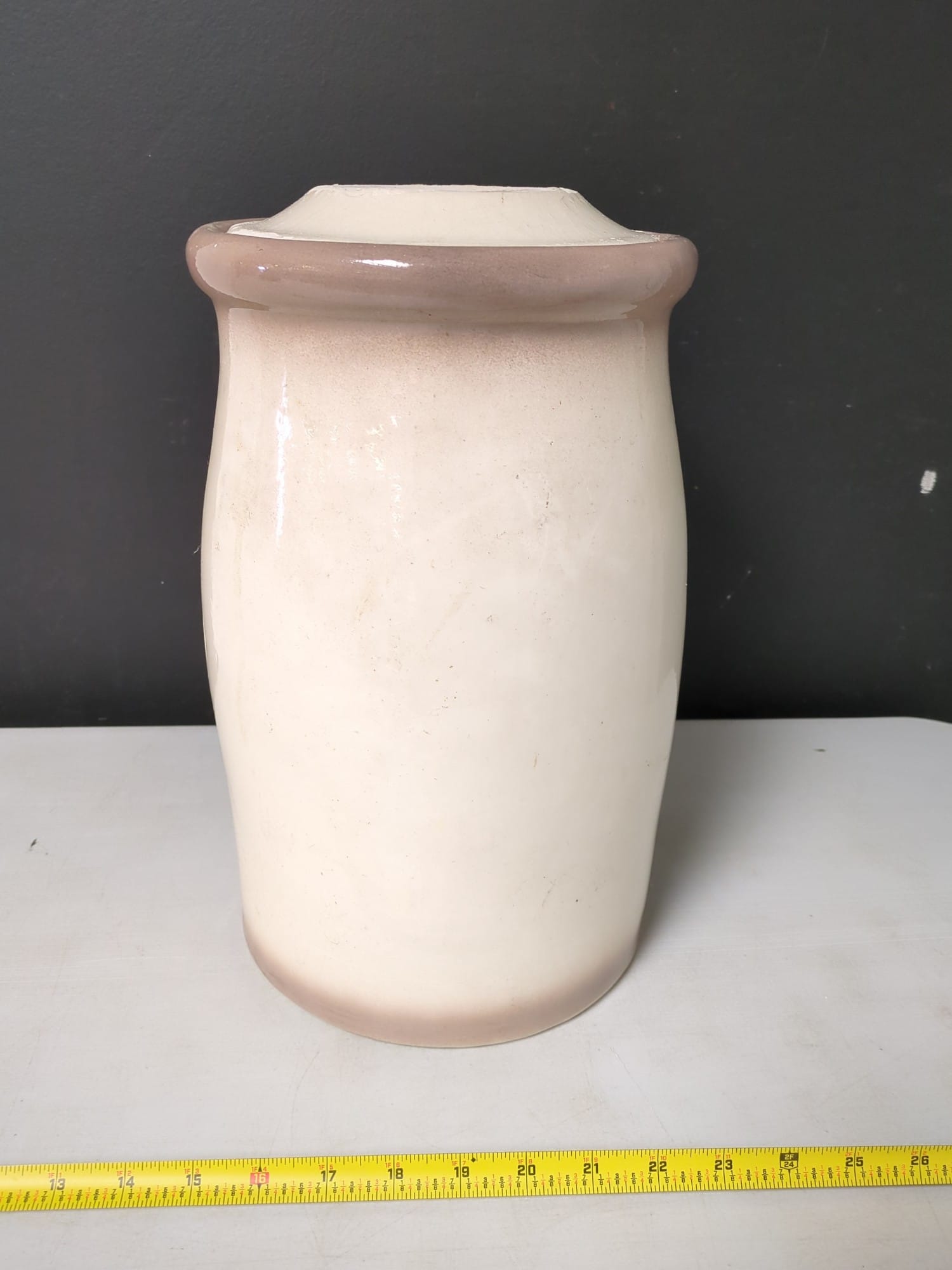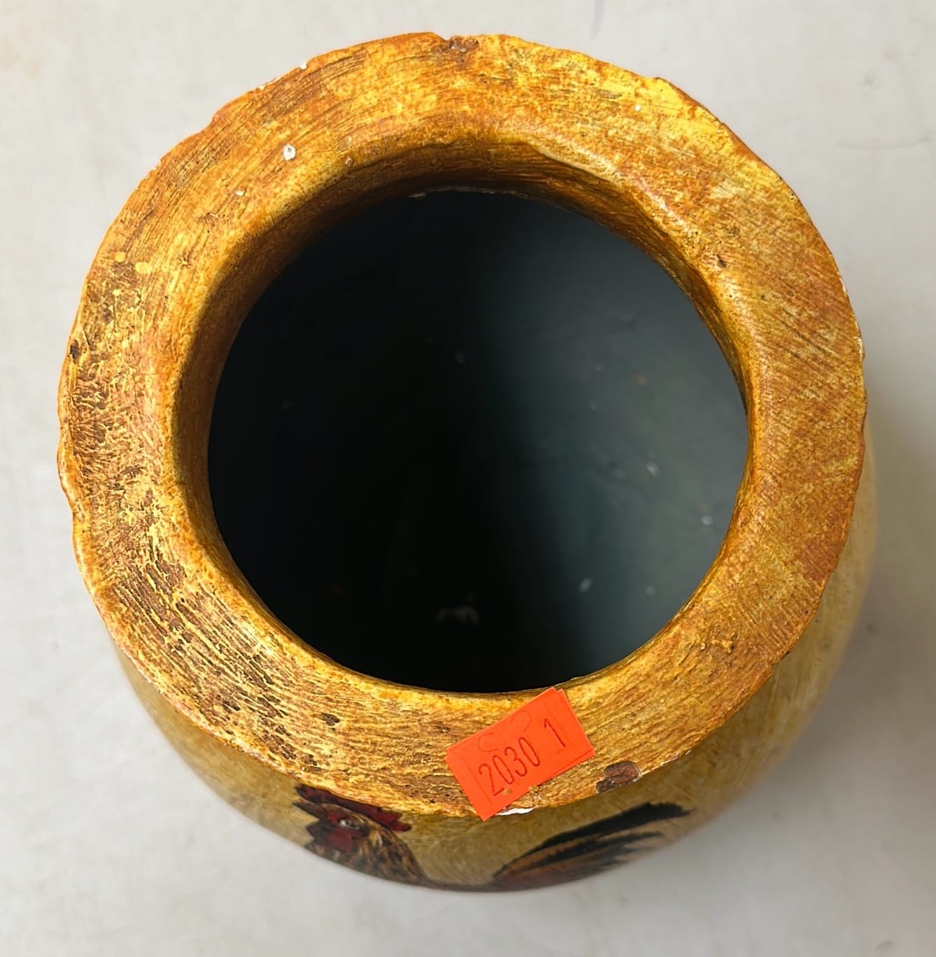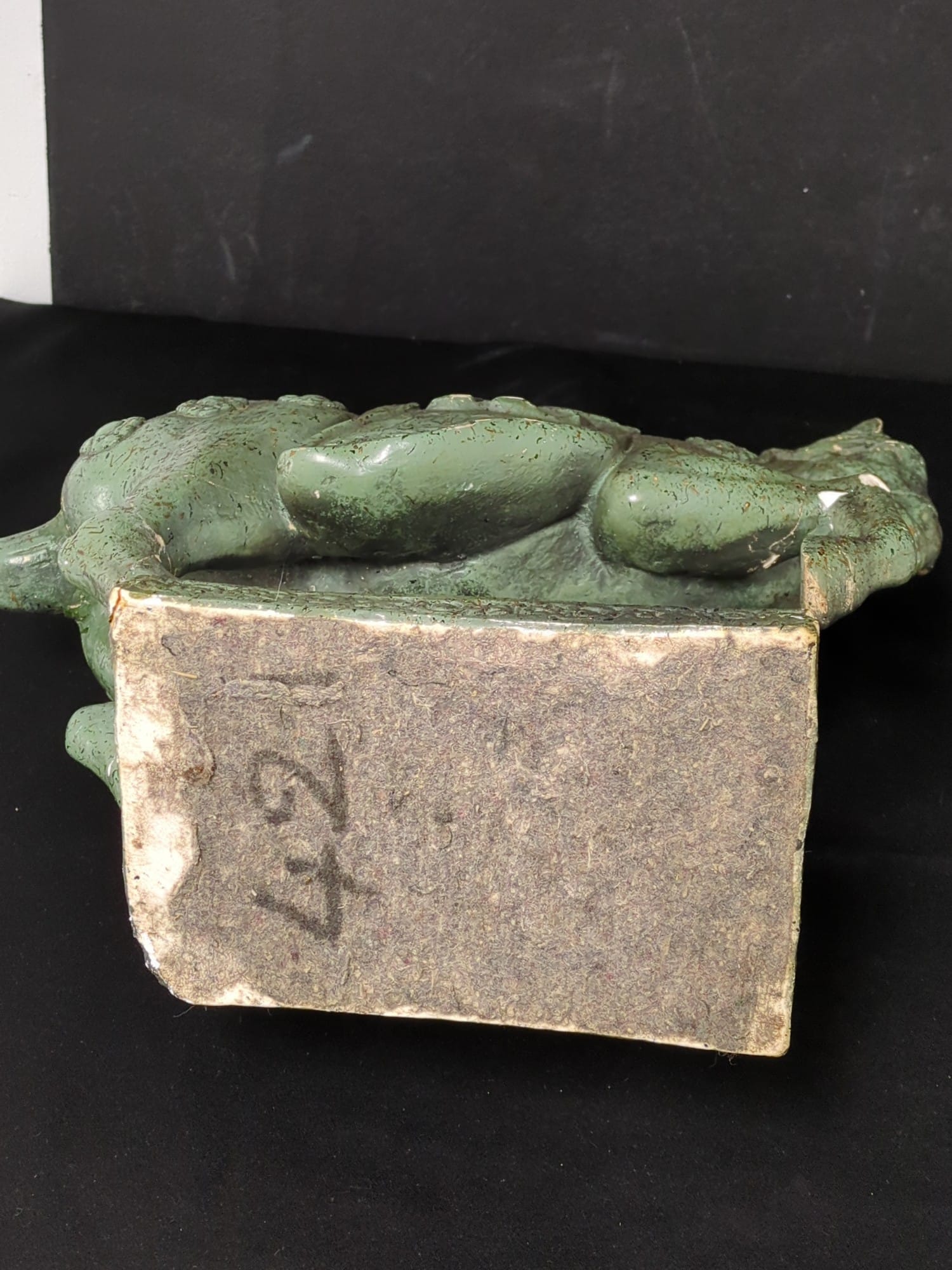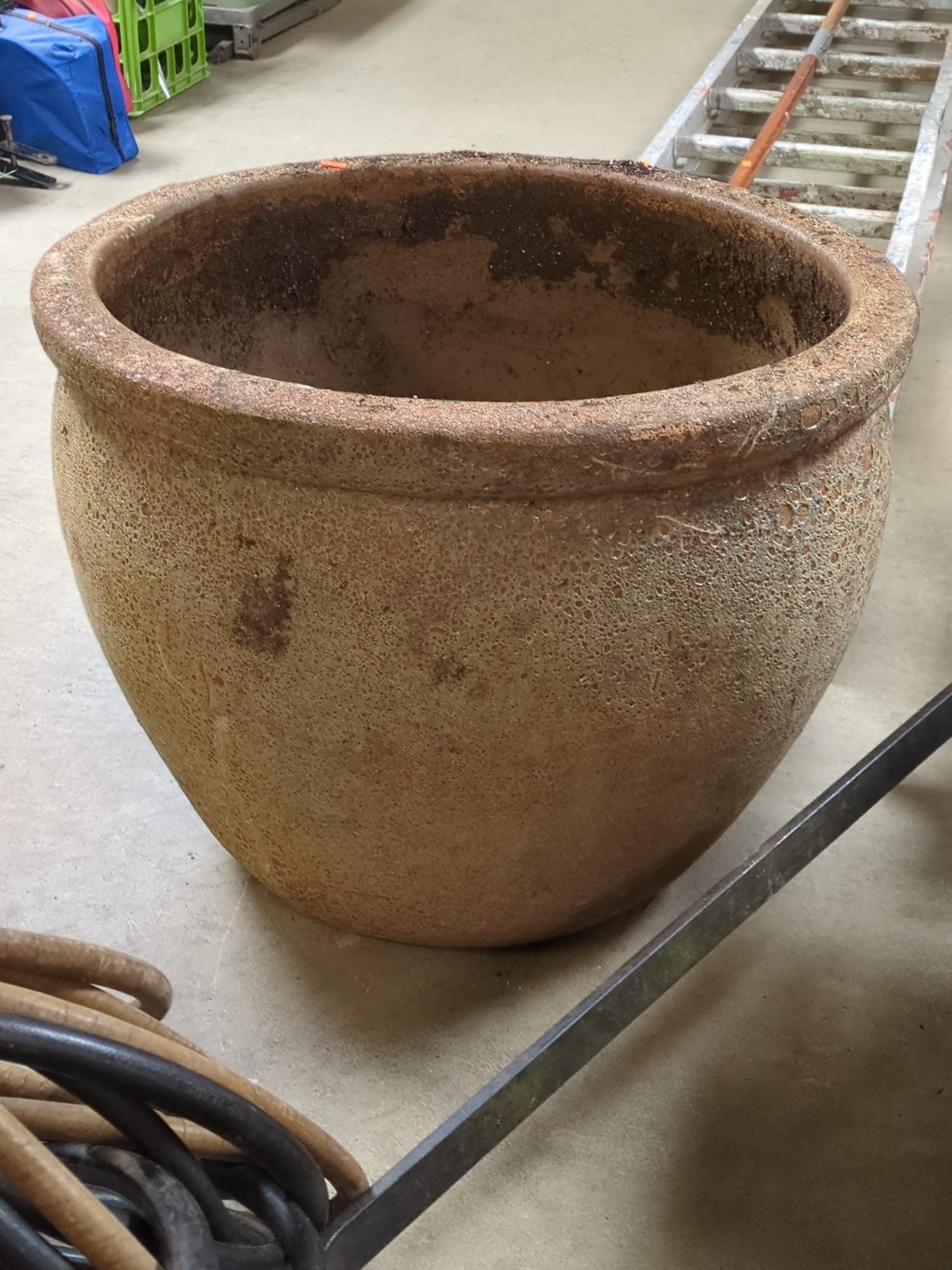 2329 Art Pottery Jardiniere, Drip Glaze Majolica Planter - has chip & crazing - 7" tallx9" Width