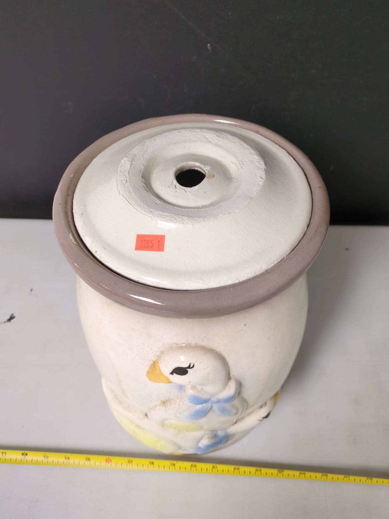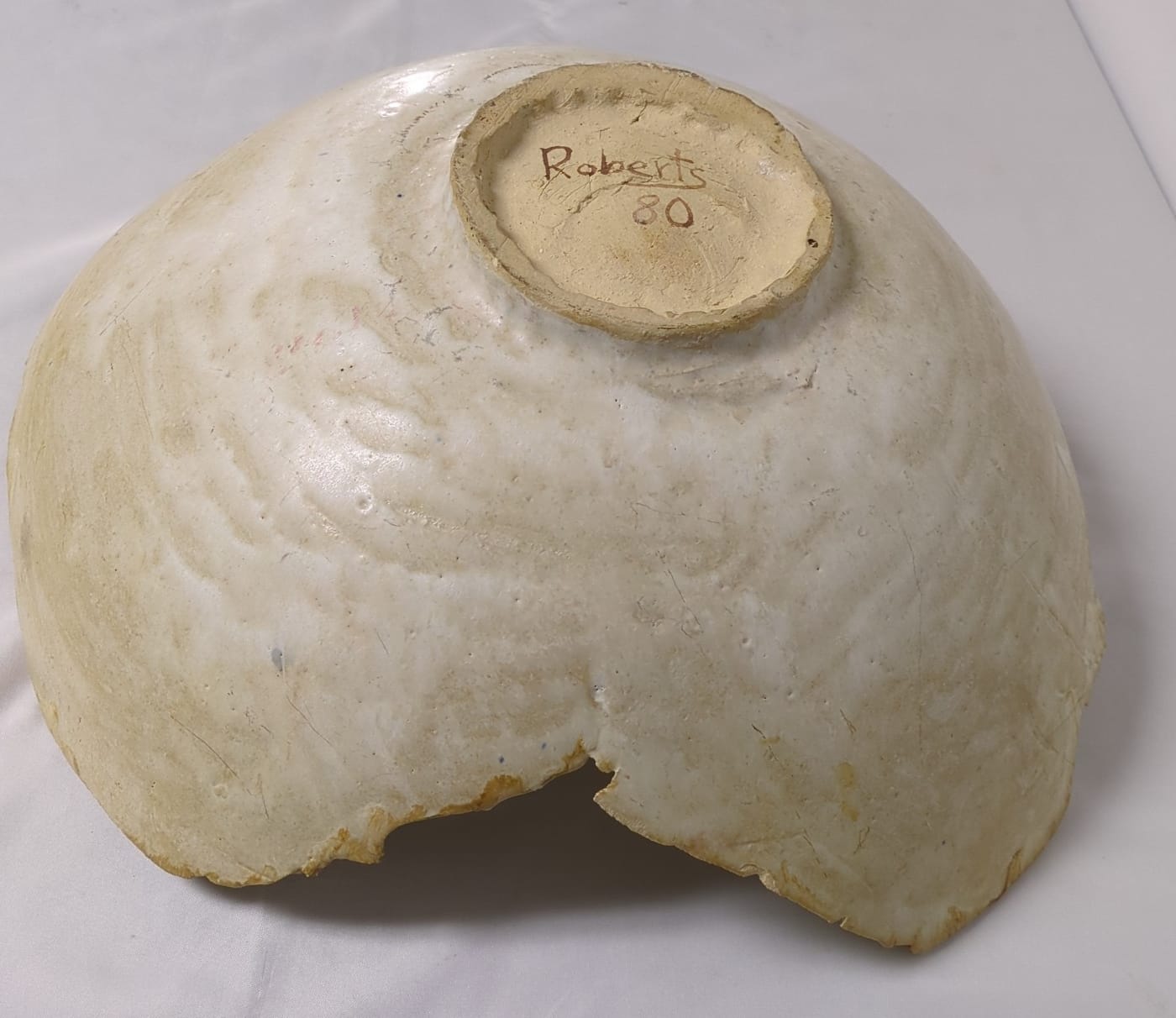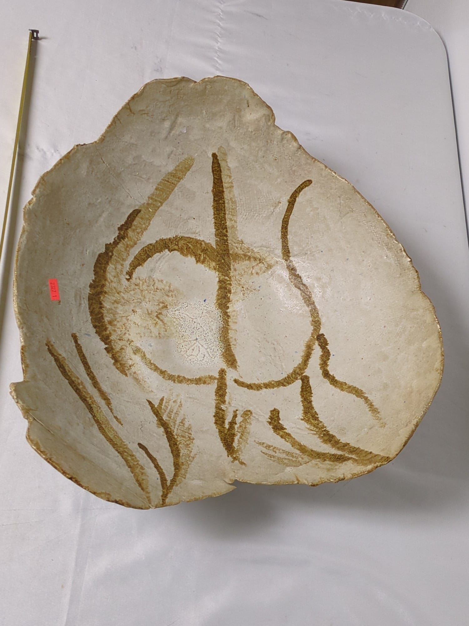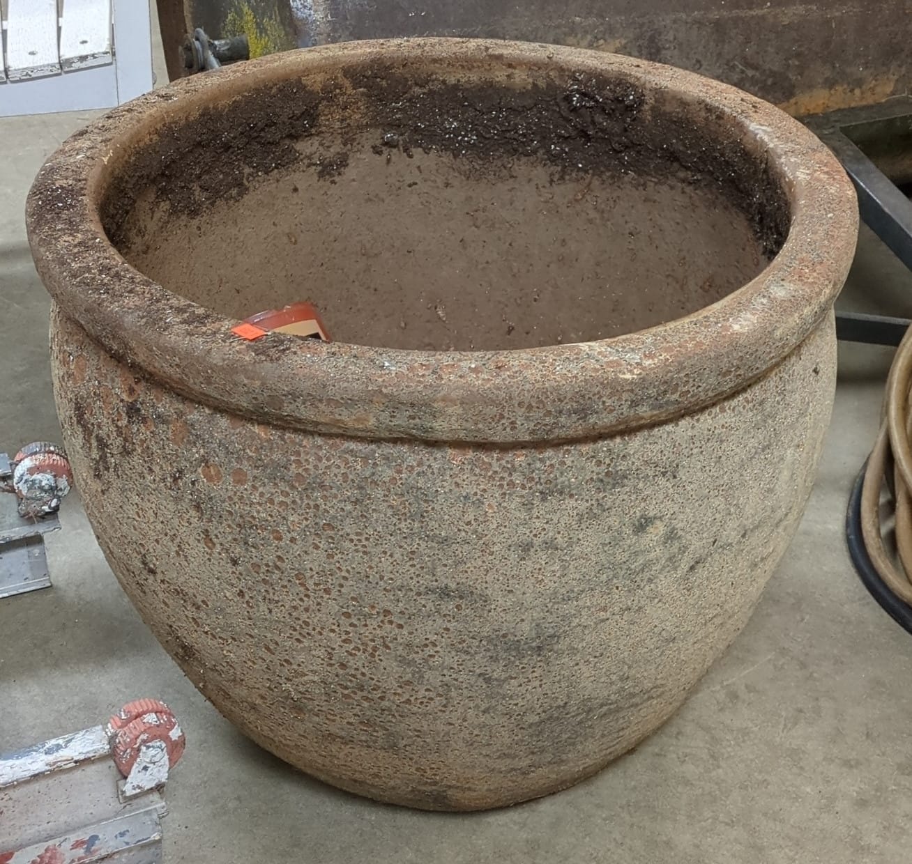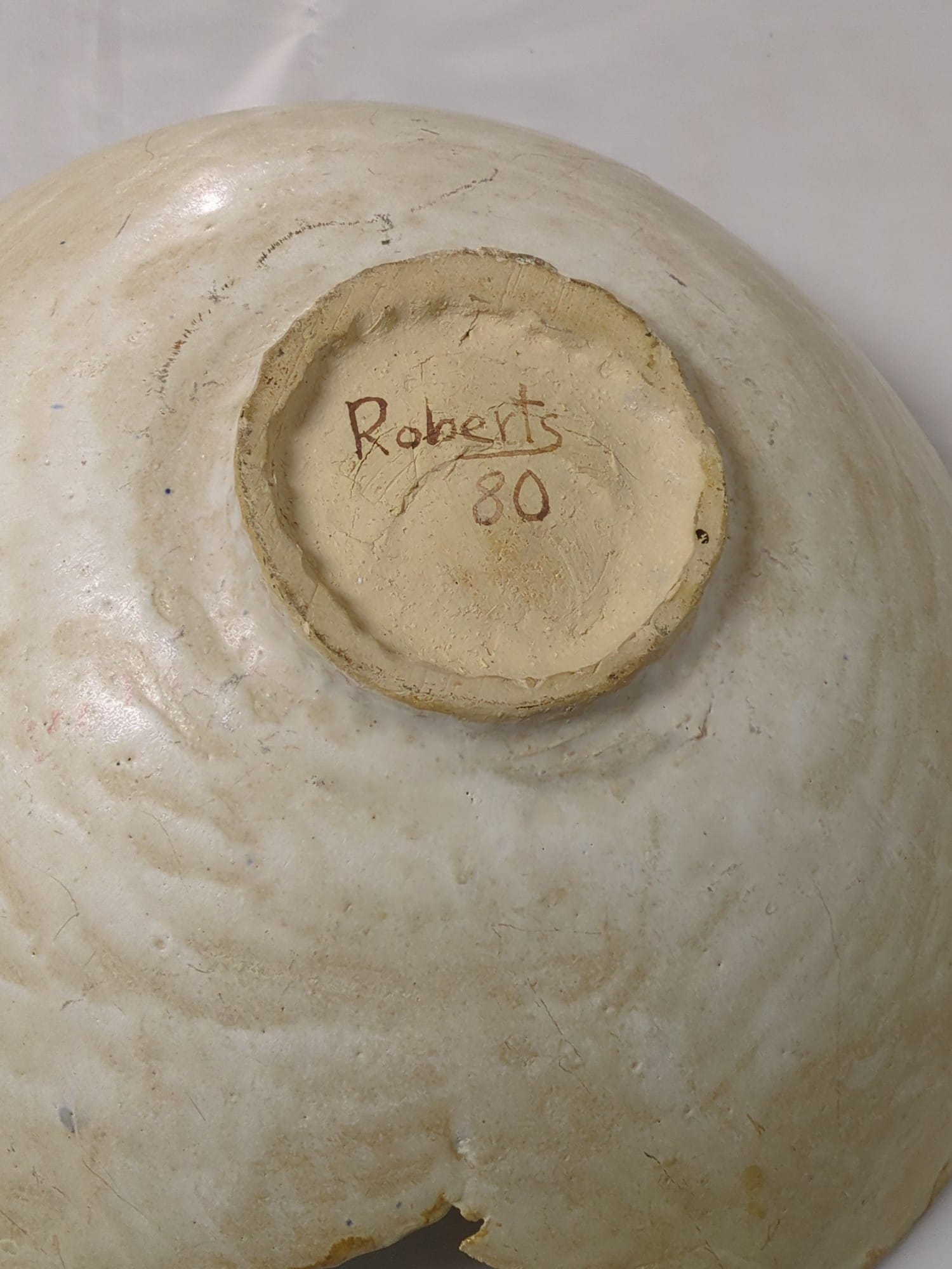 2329 Art Pottery Jardiniere, Drip Glaze Majolica Planter - has chip & crazing - 7" tallx9" Width